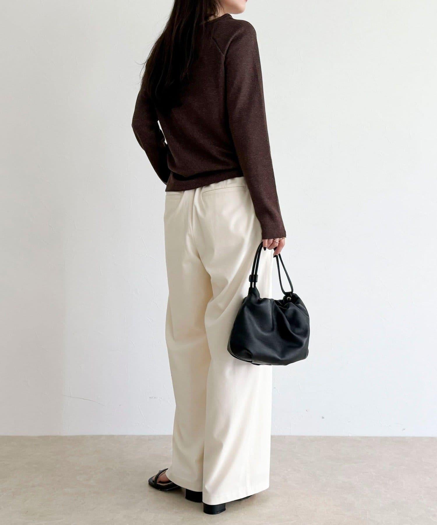 由於面料的特性,本產品的線頭在被夾住時容易彈出。穿著本品時,請注意不要與皮帶、包、周圍牆壁或其他粗糙表面摩擦或卡住。