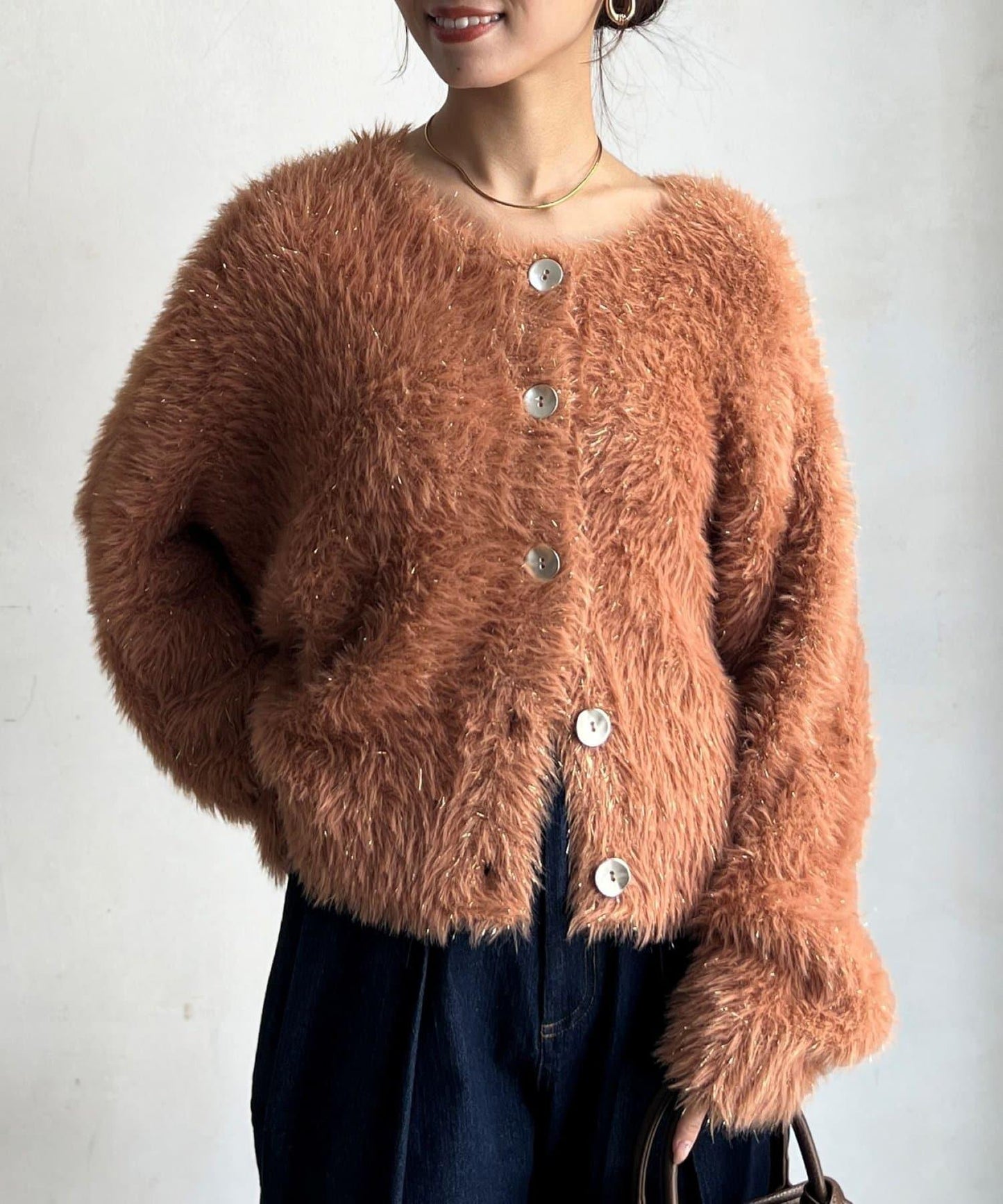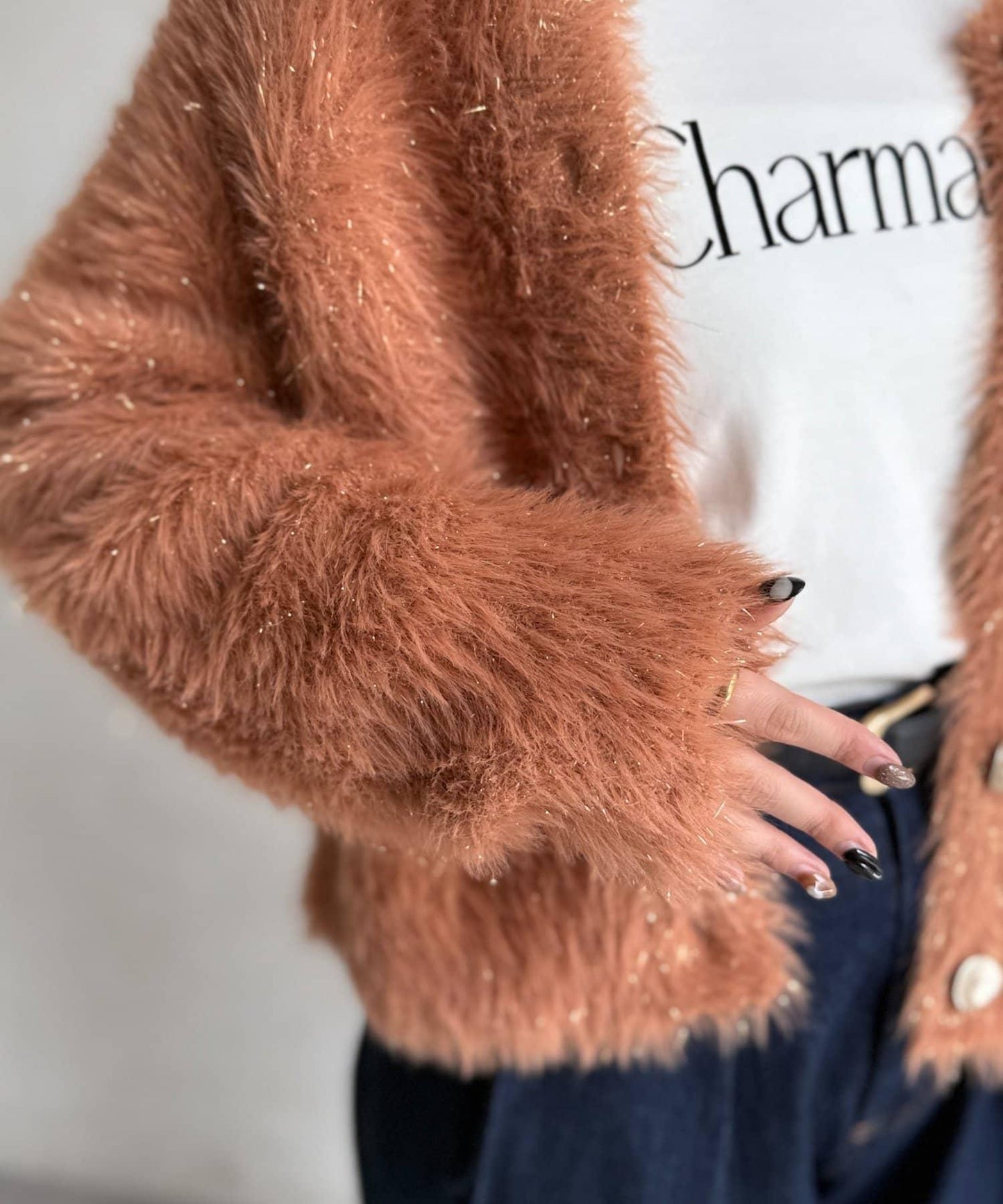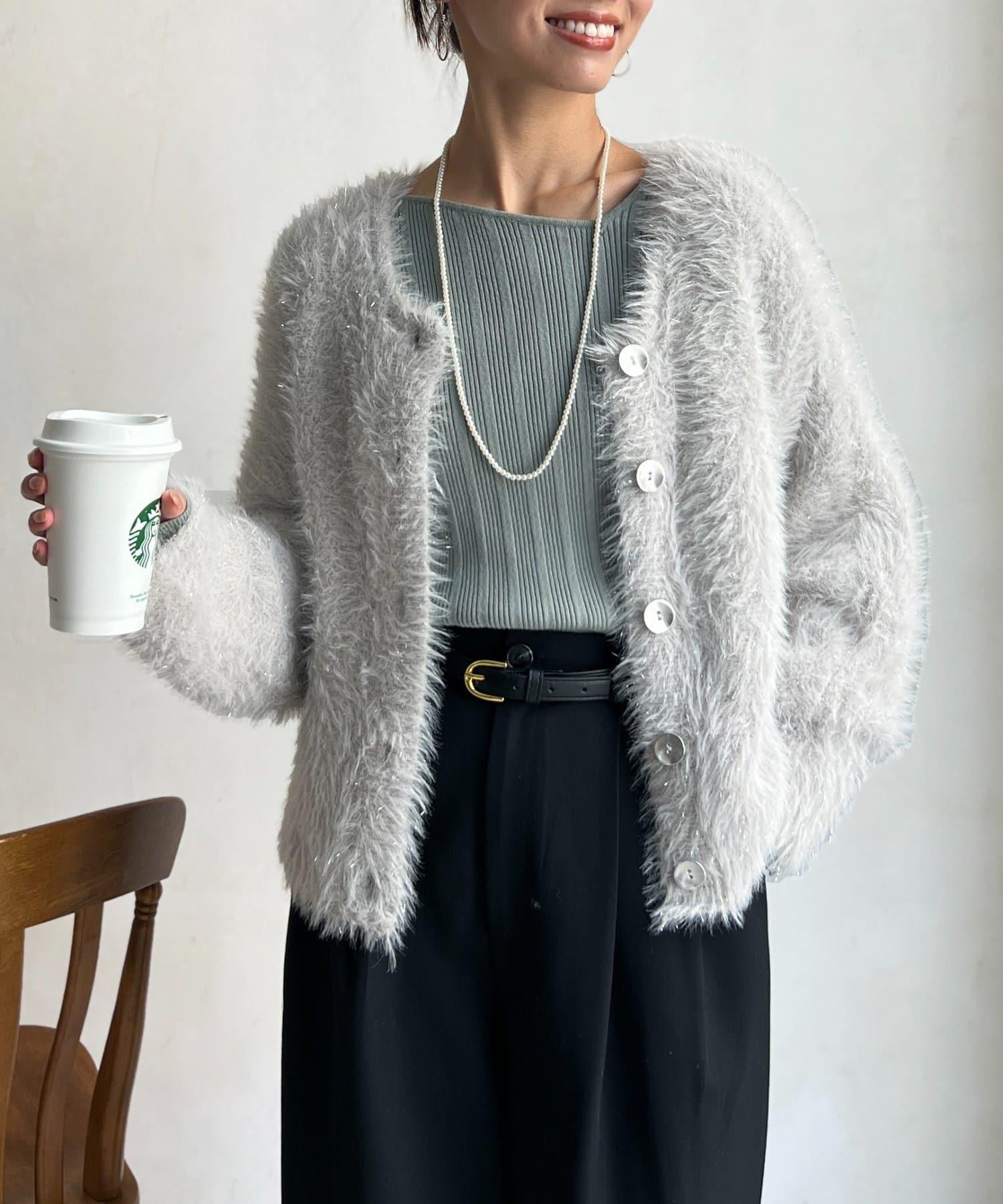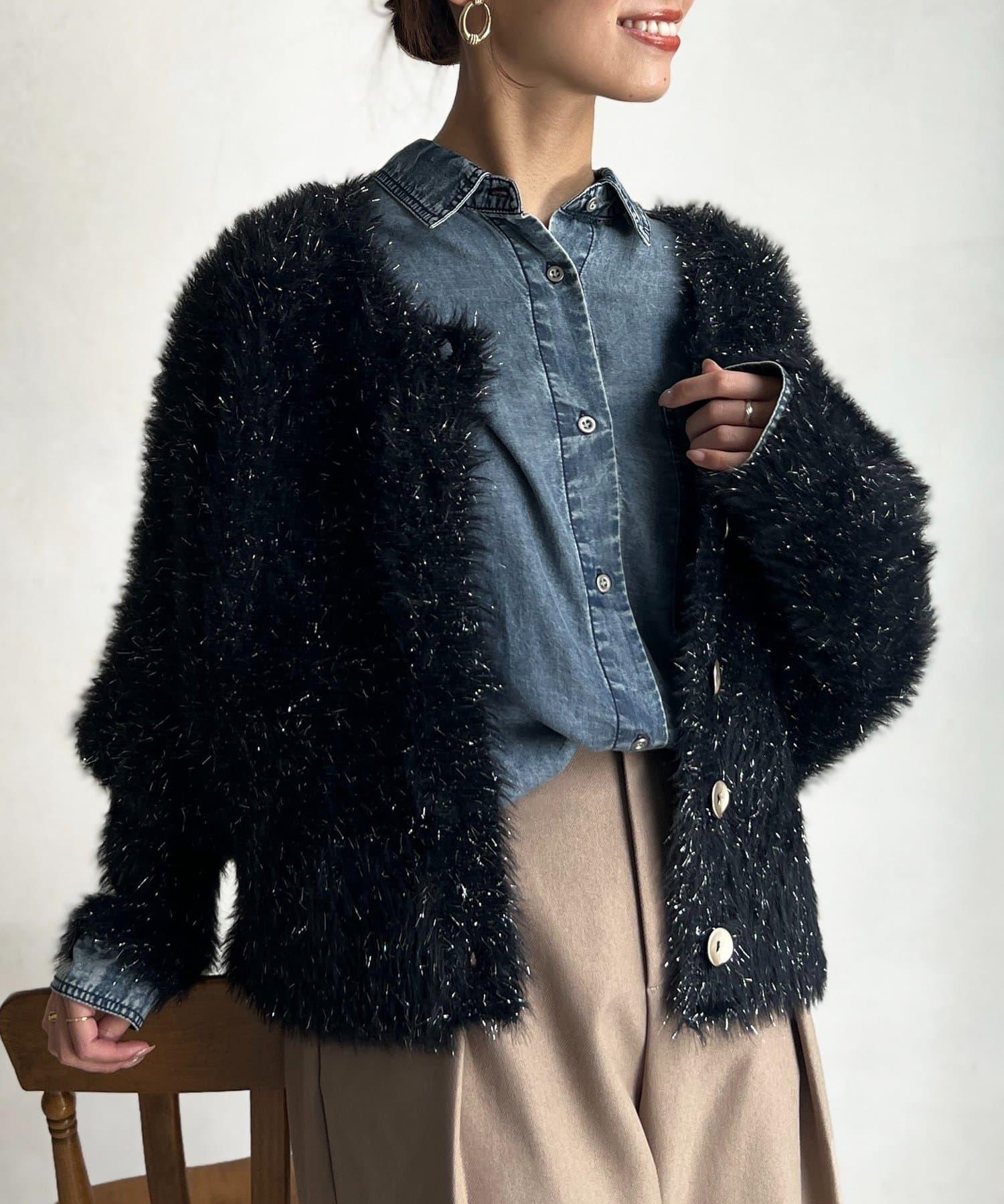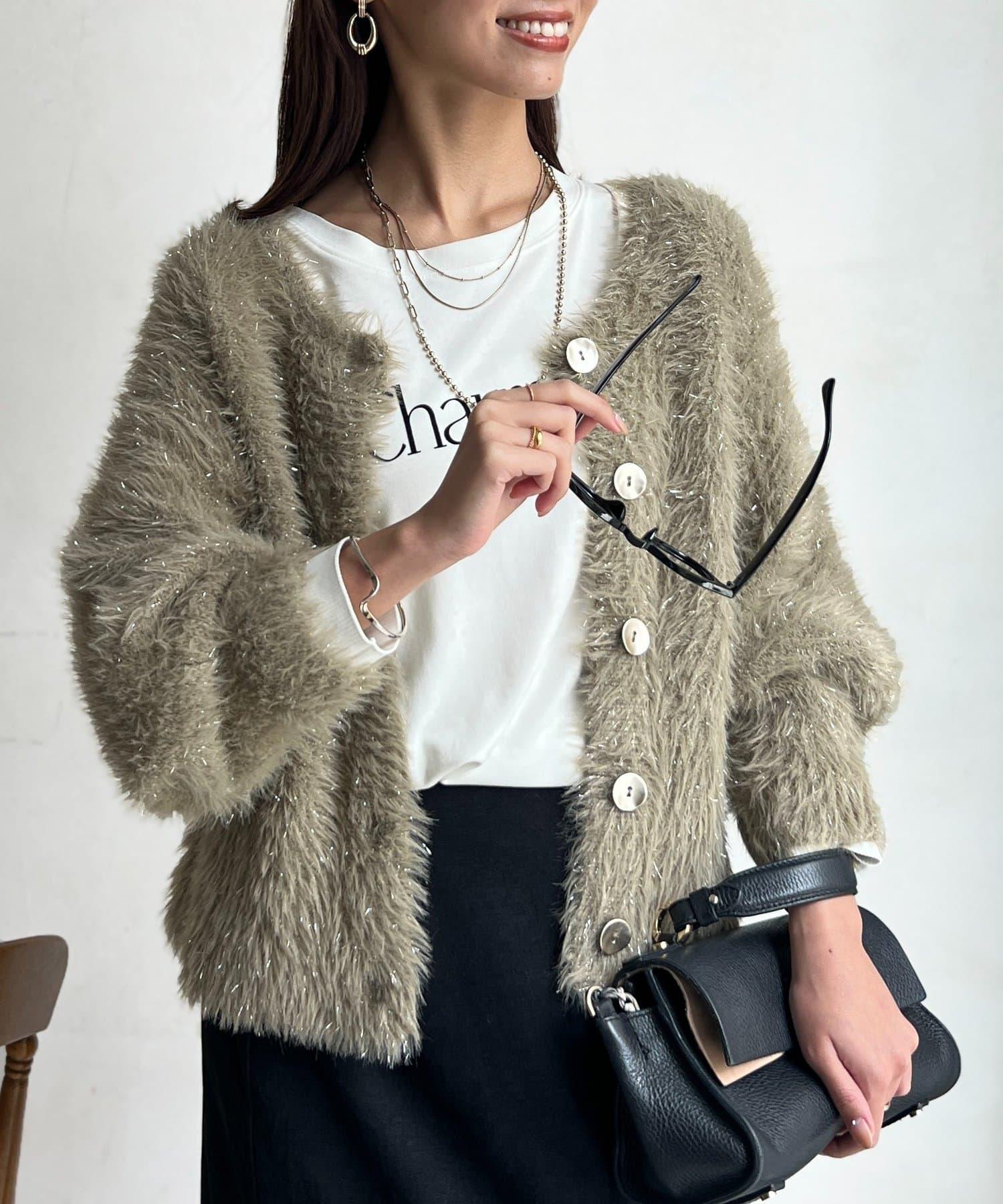 這款蓬鬆的羽毛開衫是本季的焦點。