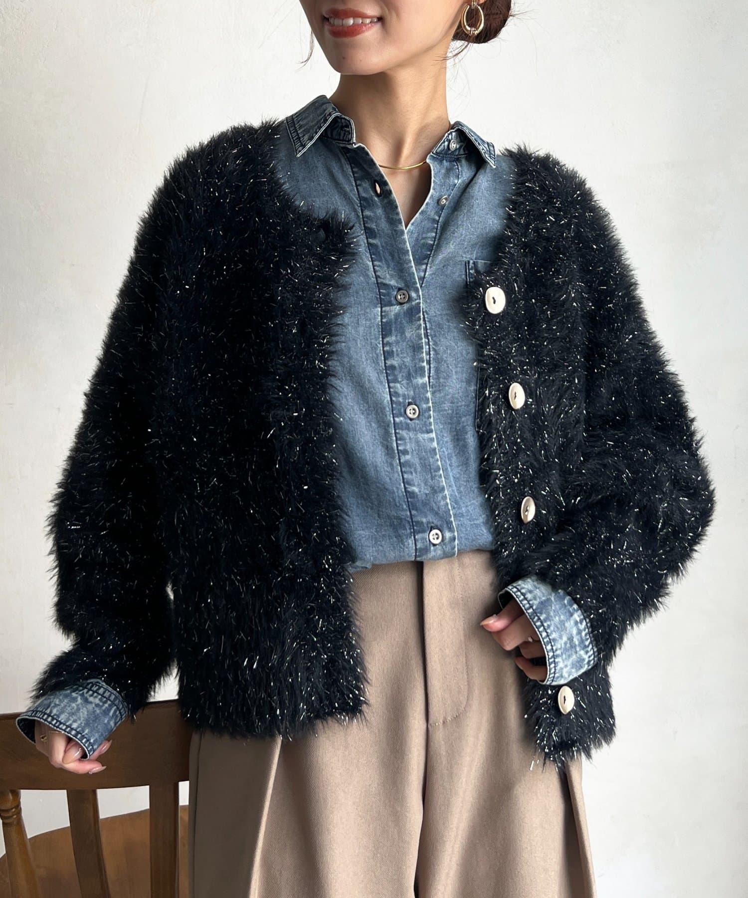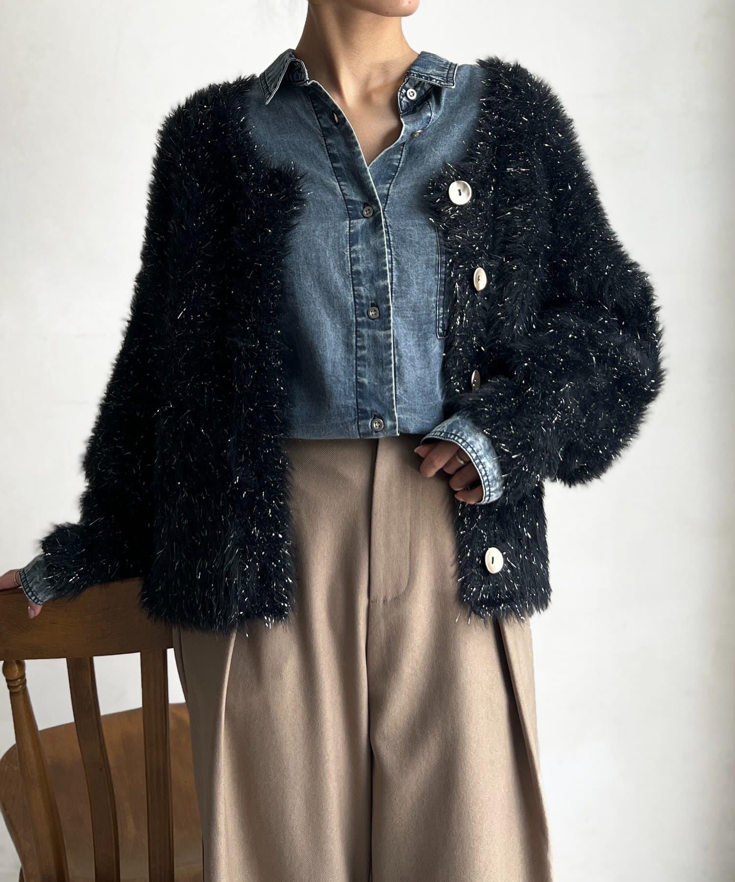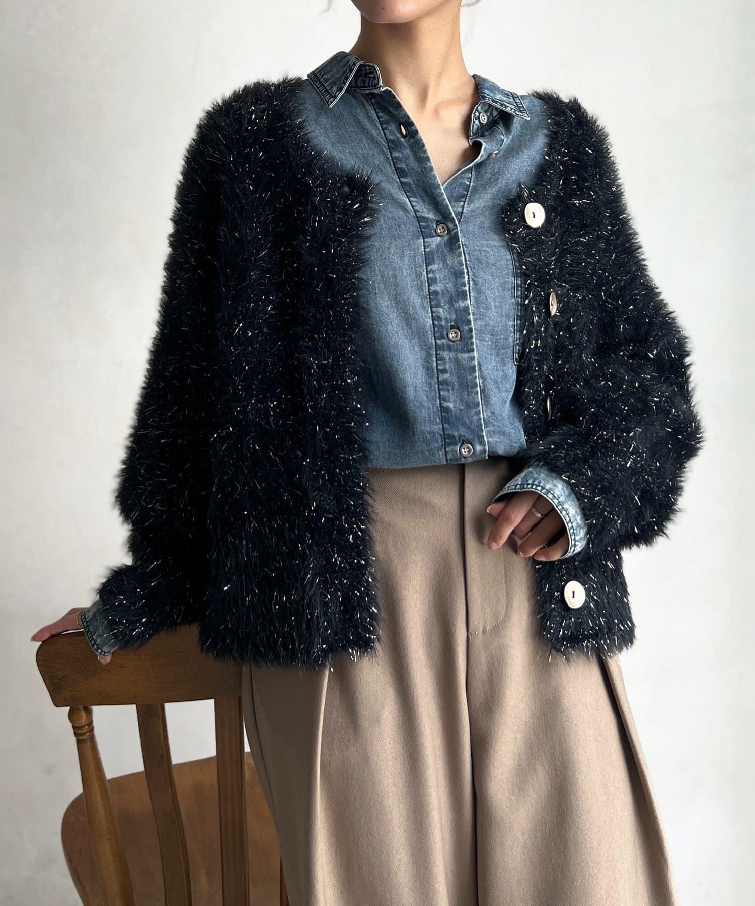 預約商品亮片羽毛兩用開衫