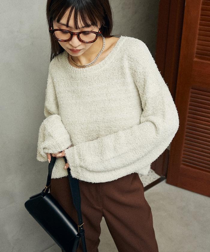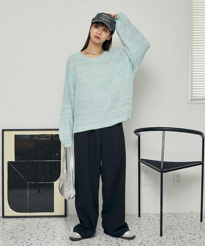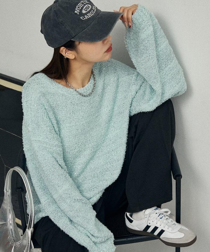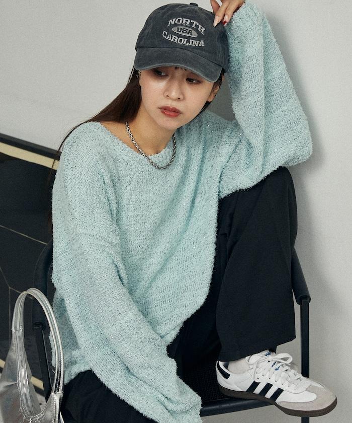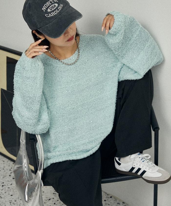 亮片羽毛寬鬆針織衫