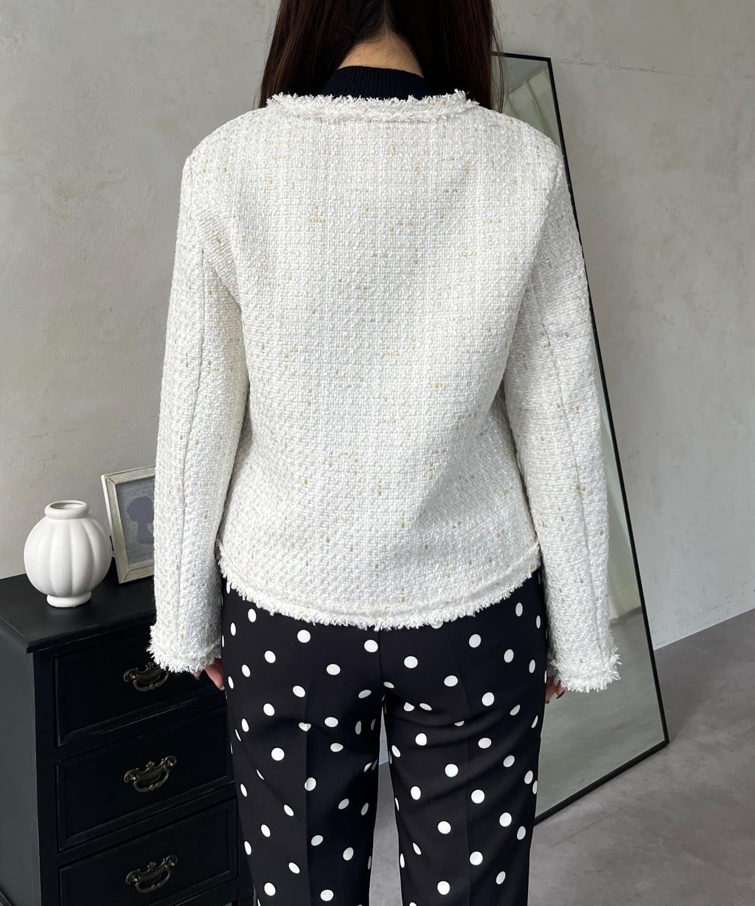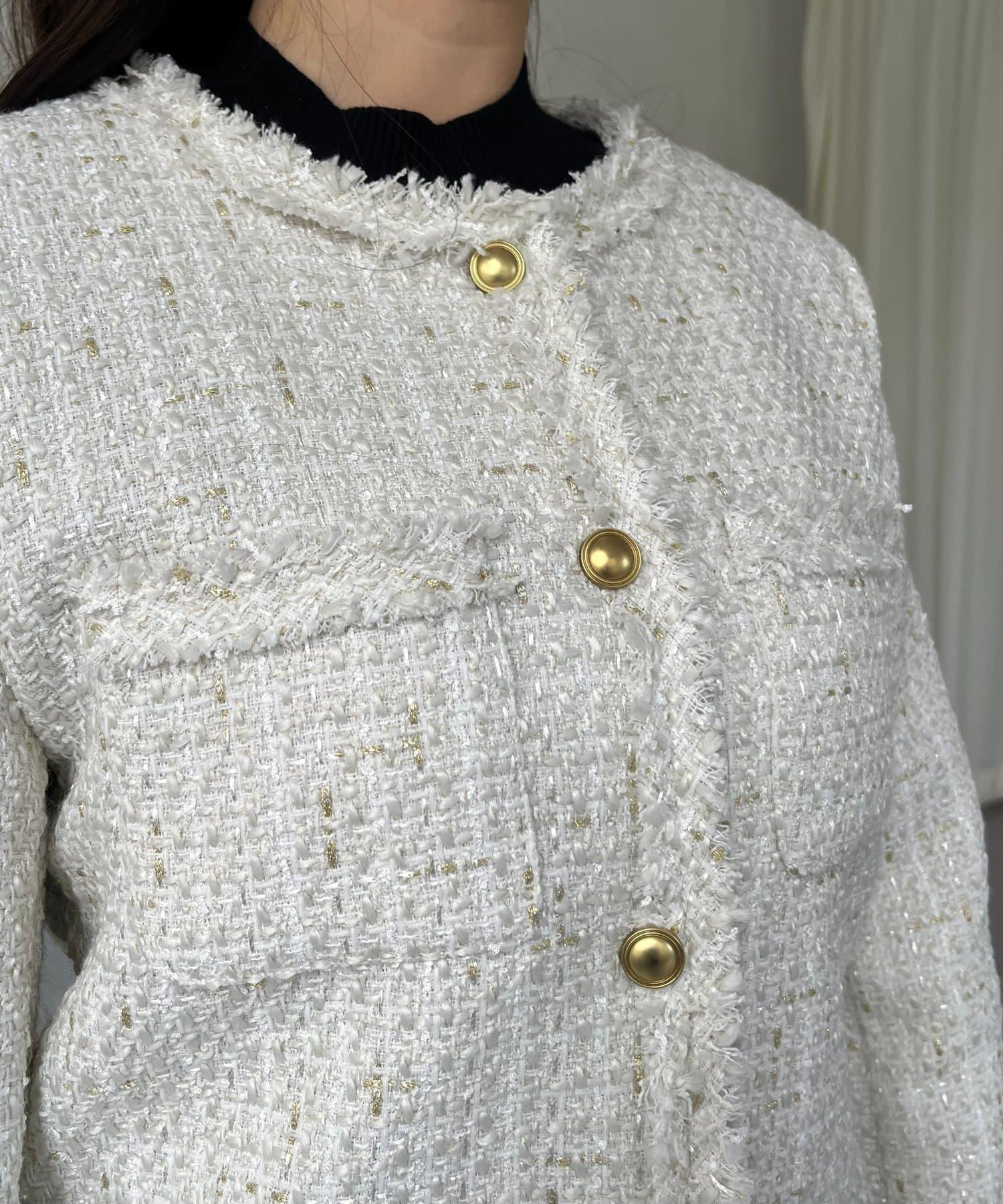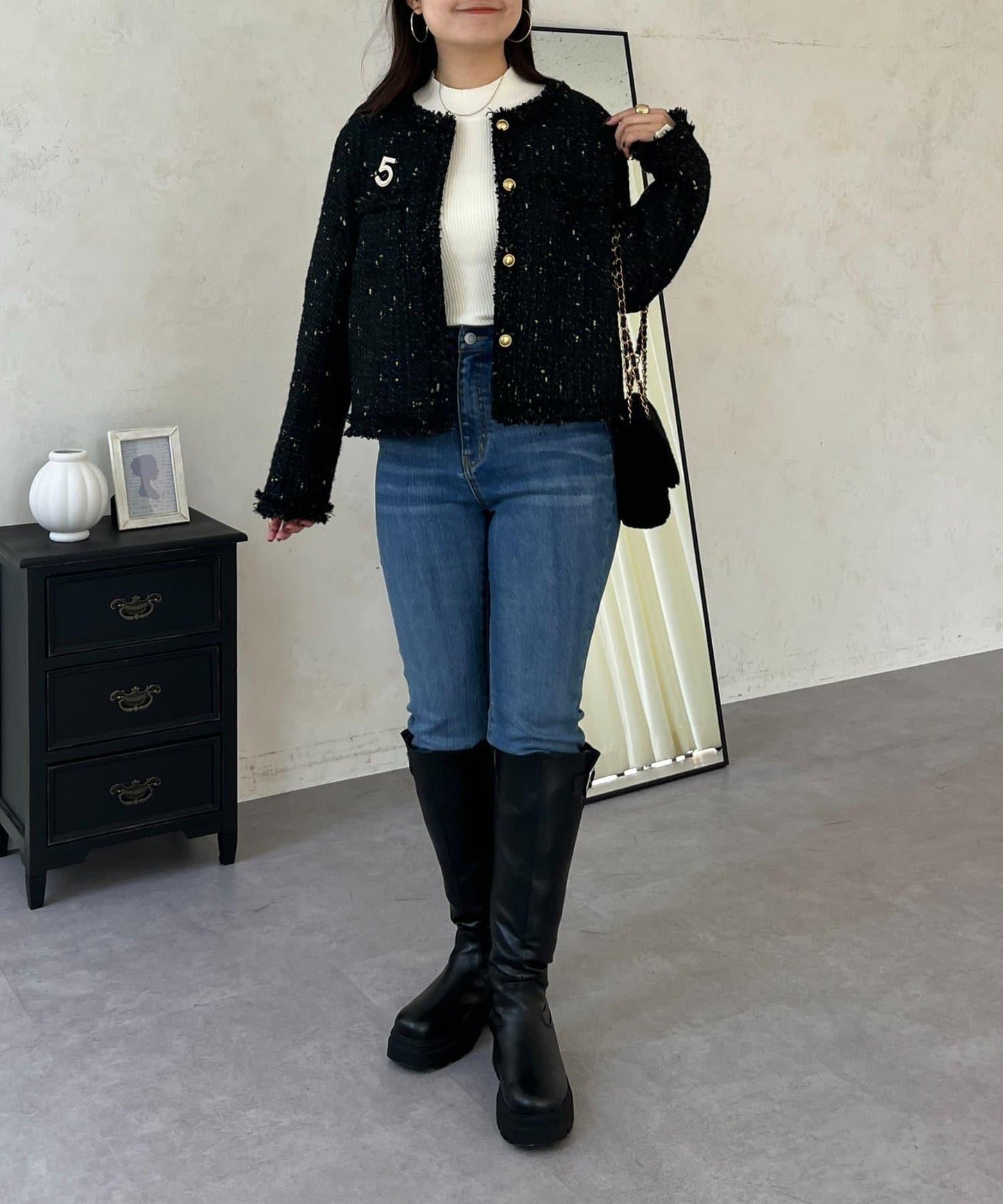 具有古典氣息的粗花呢外套提升了本季的格調。