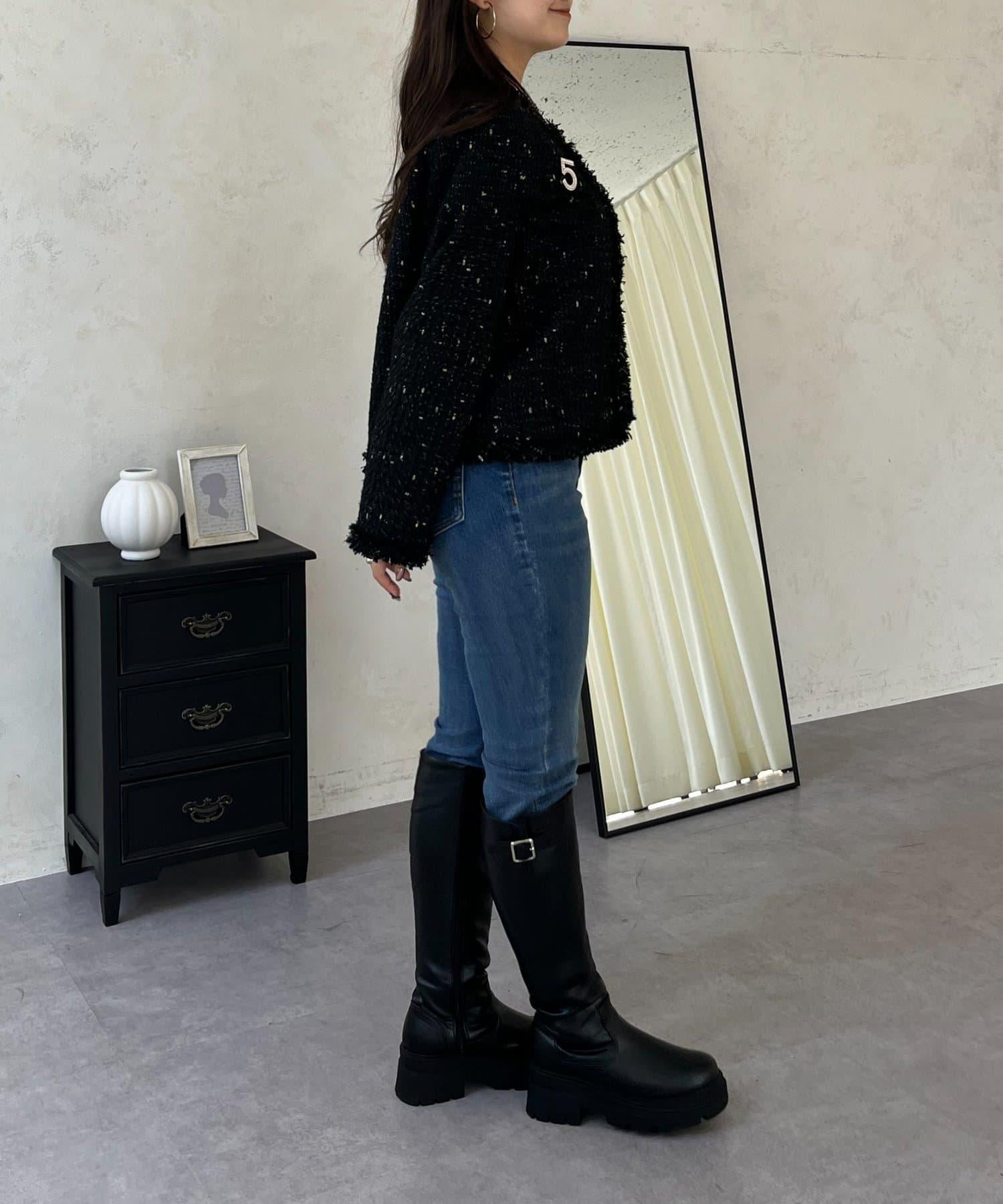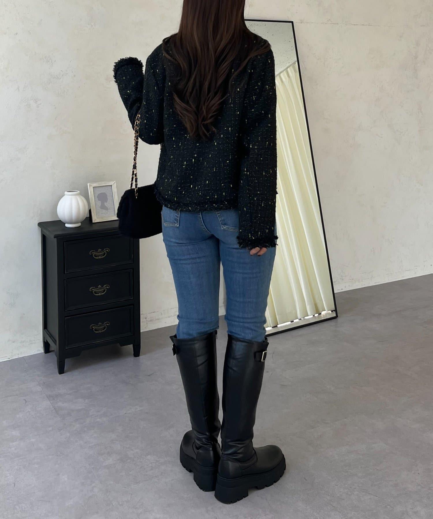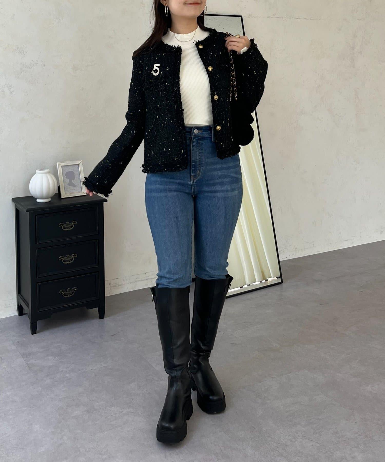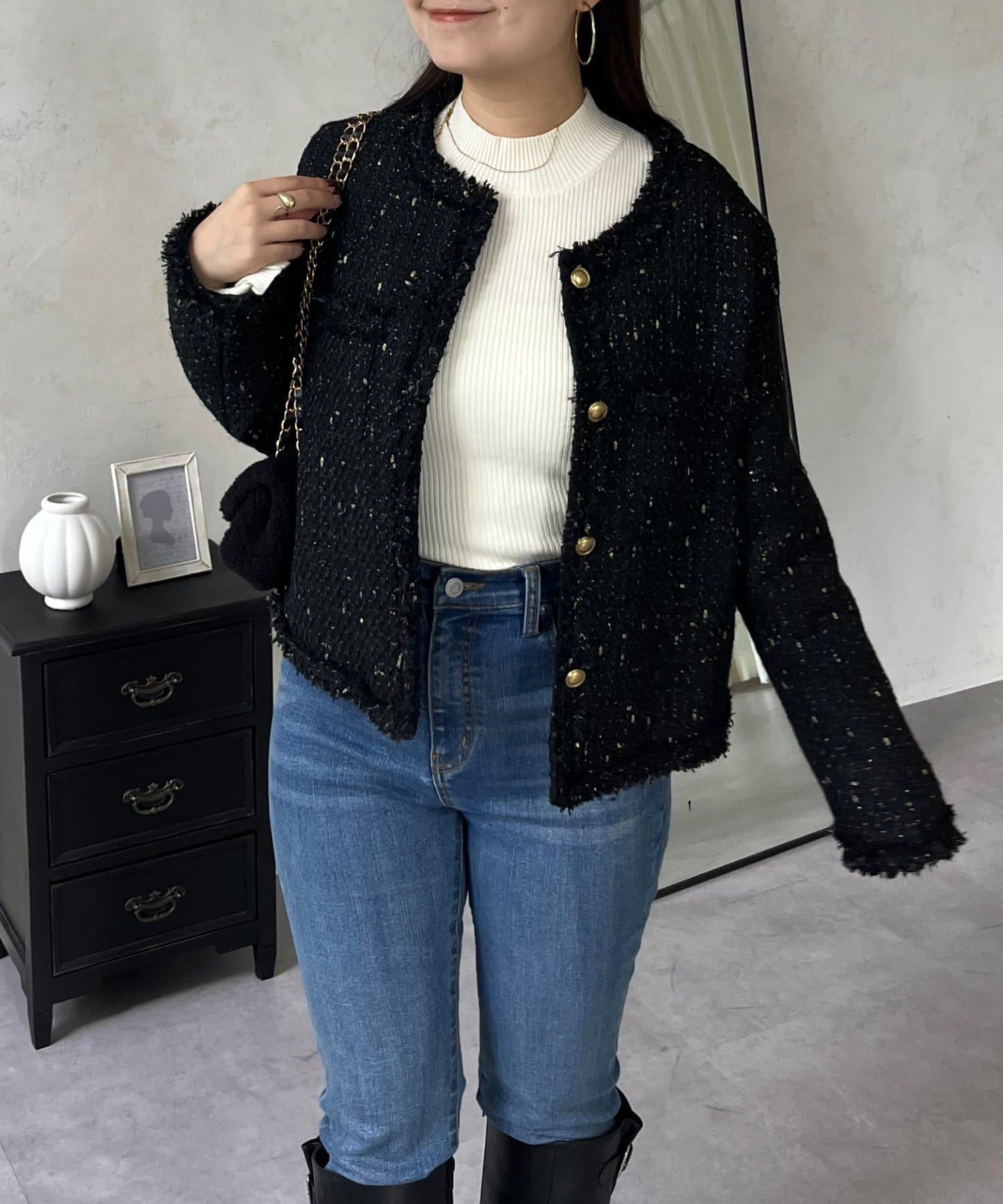 具有古典氣息的粗花呢外套提升了本季的格調。