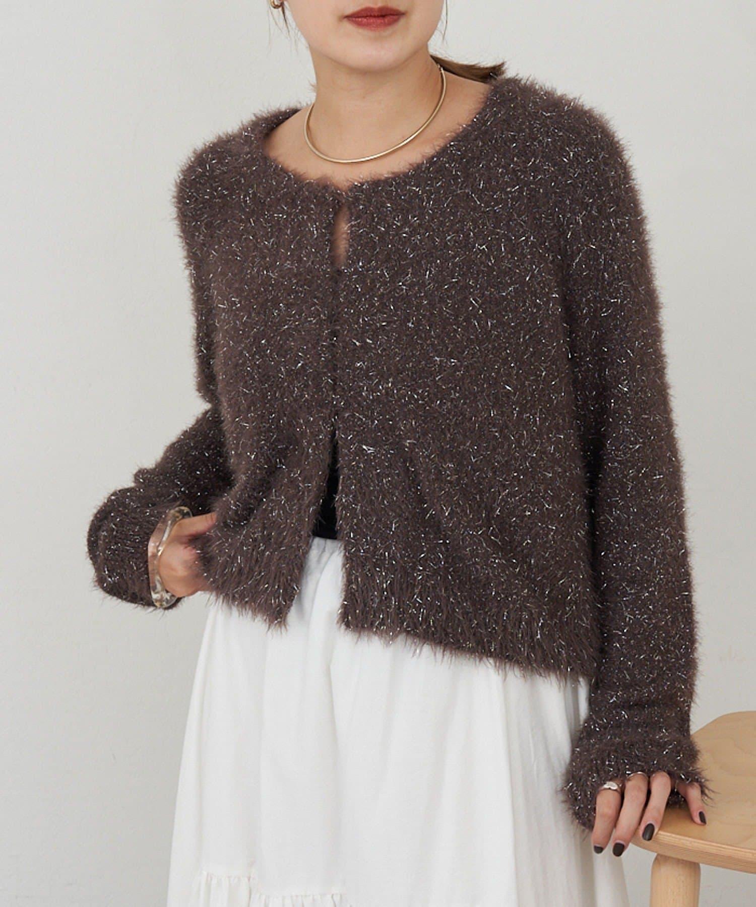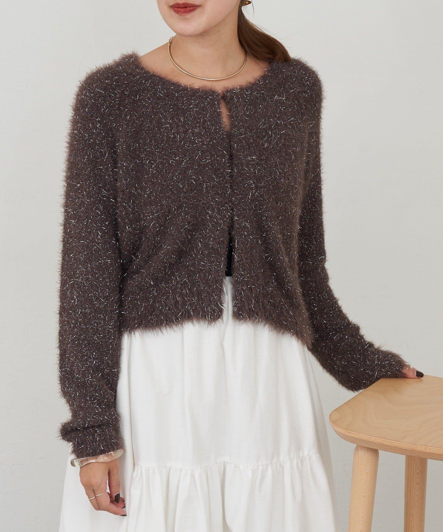 亮片長毛針織開衫