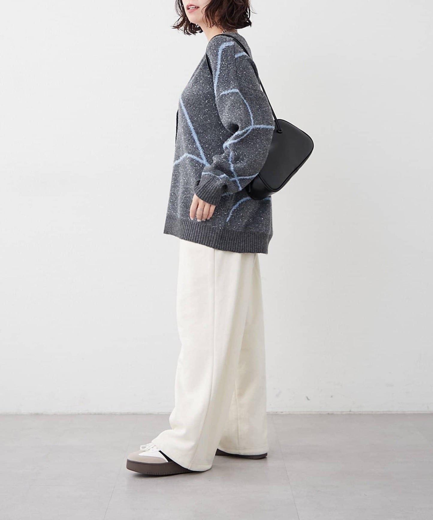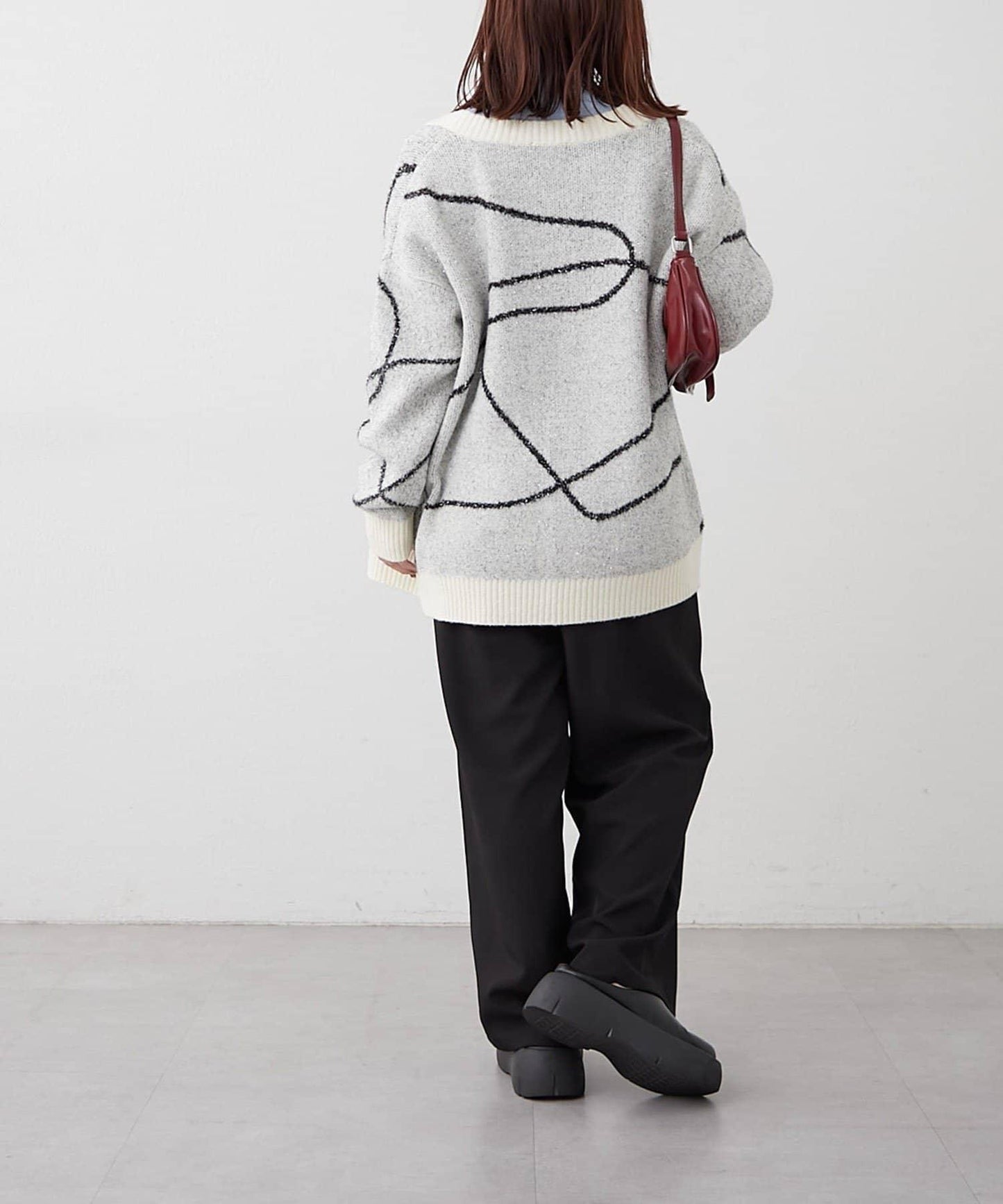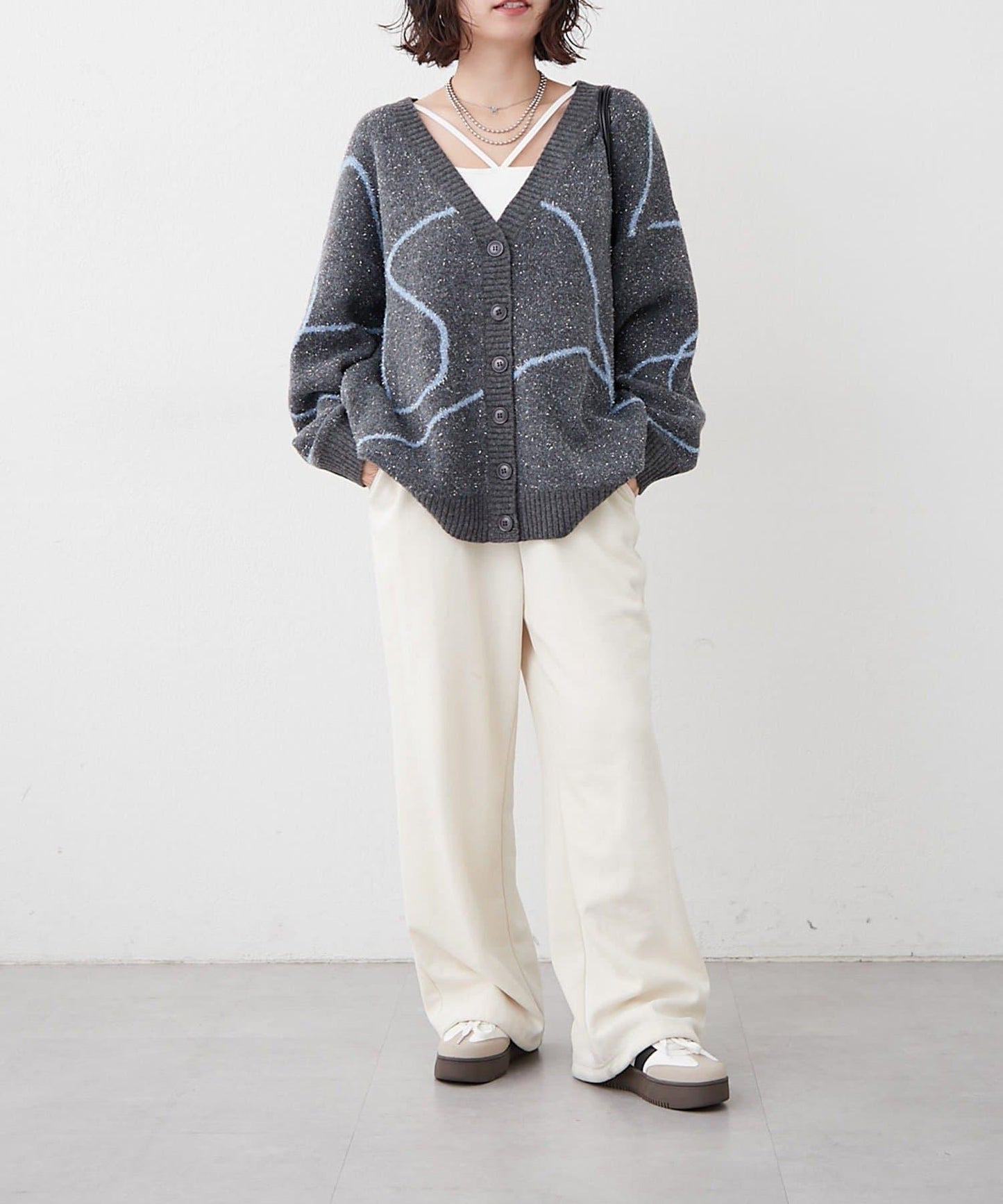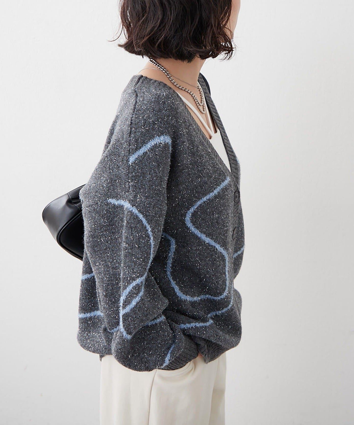 薄紗材質隨意閃耀♪線條圖案的時尚 V 領開衫。