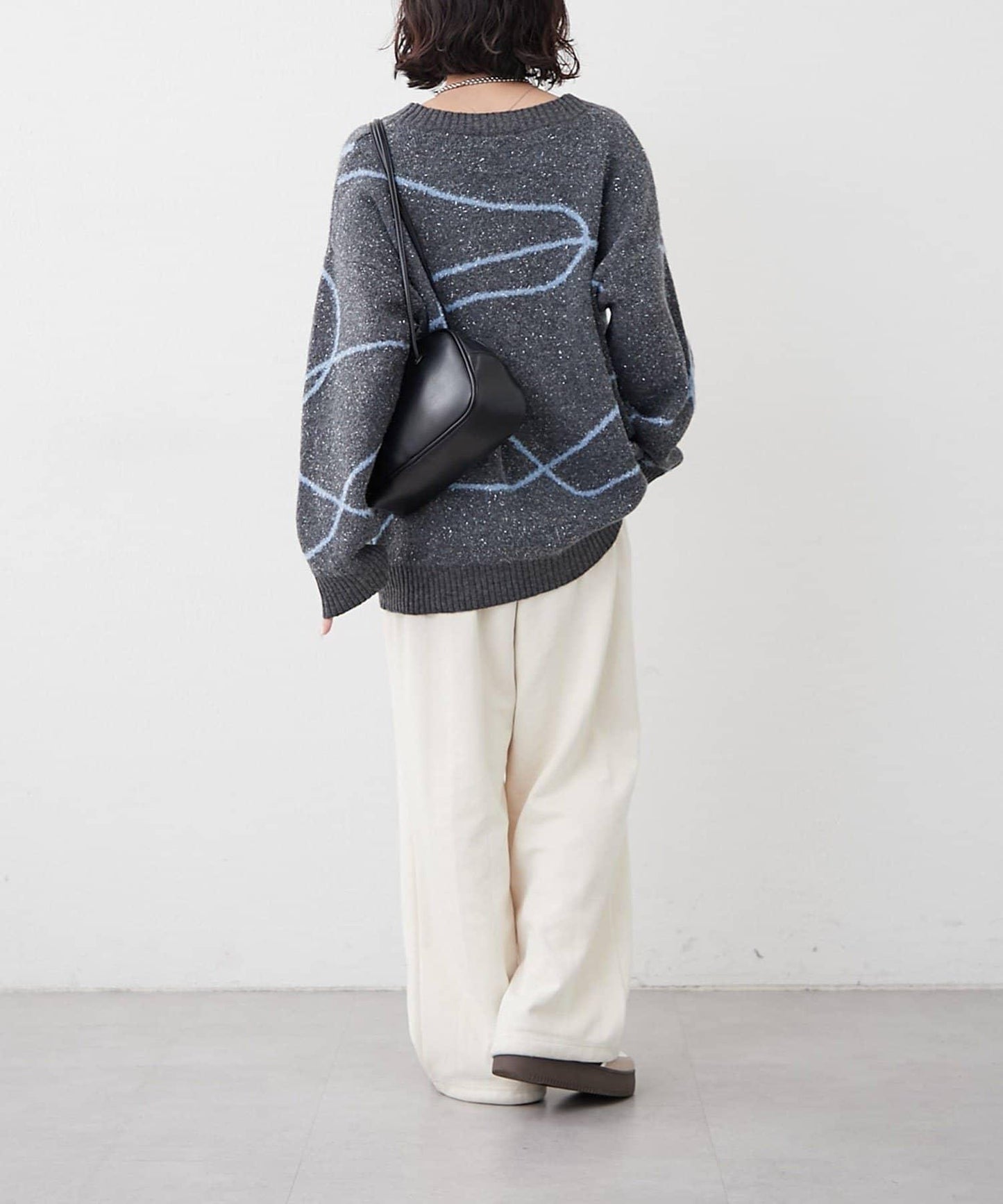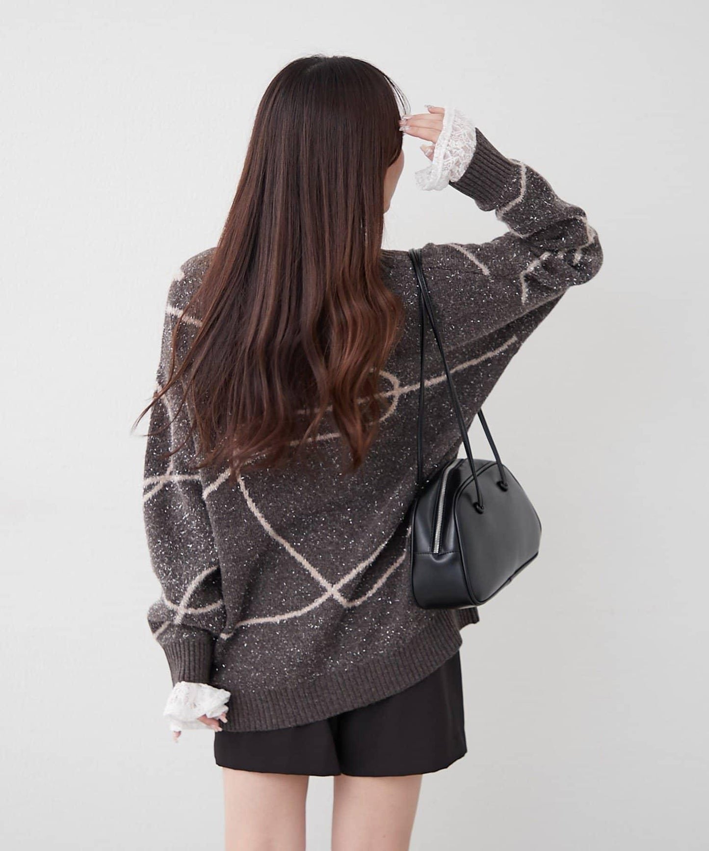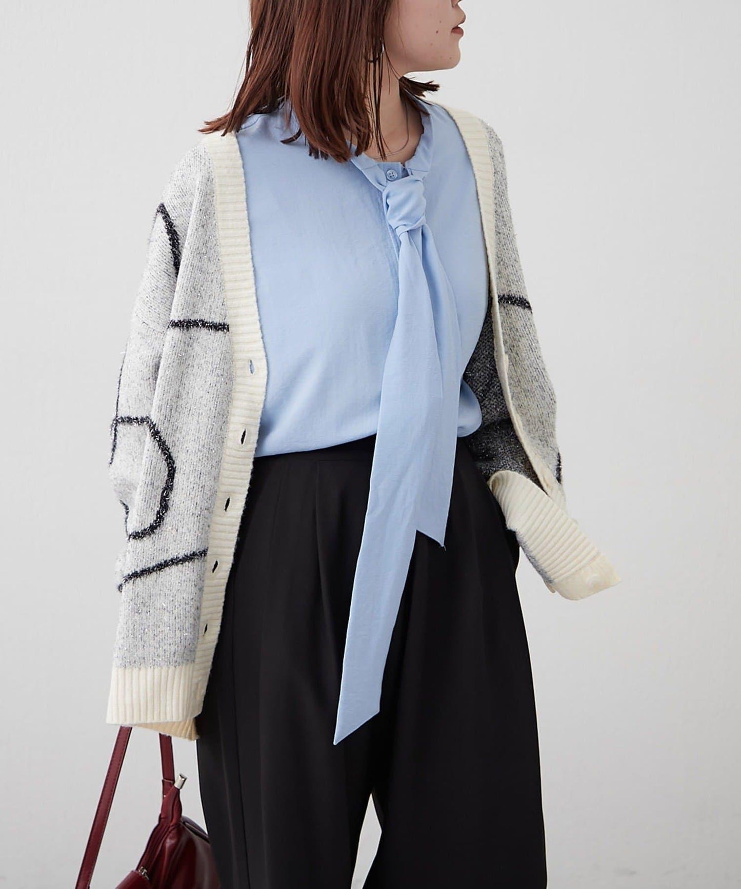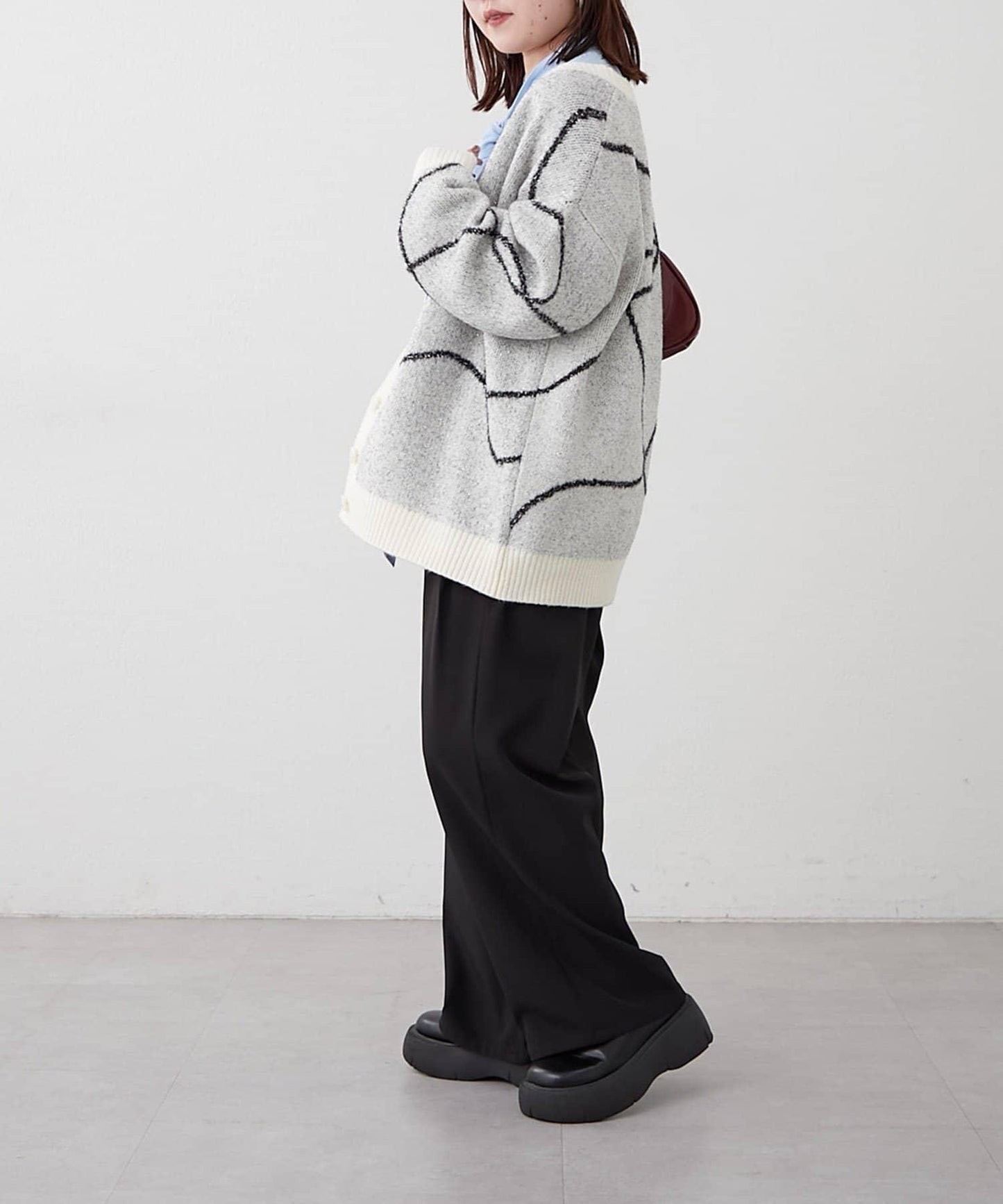 薄紗材質隨意閃耀♪線條圖案的時尚 V 領開衫。