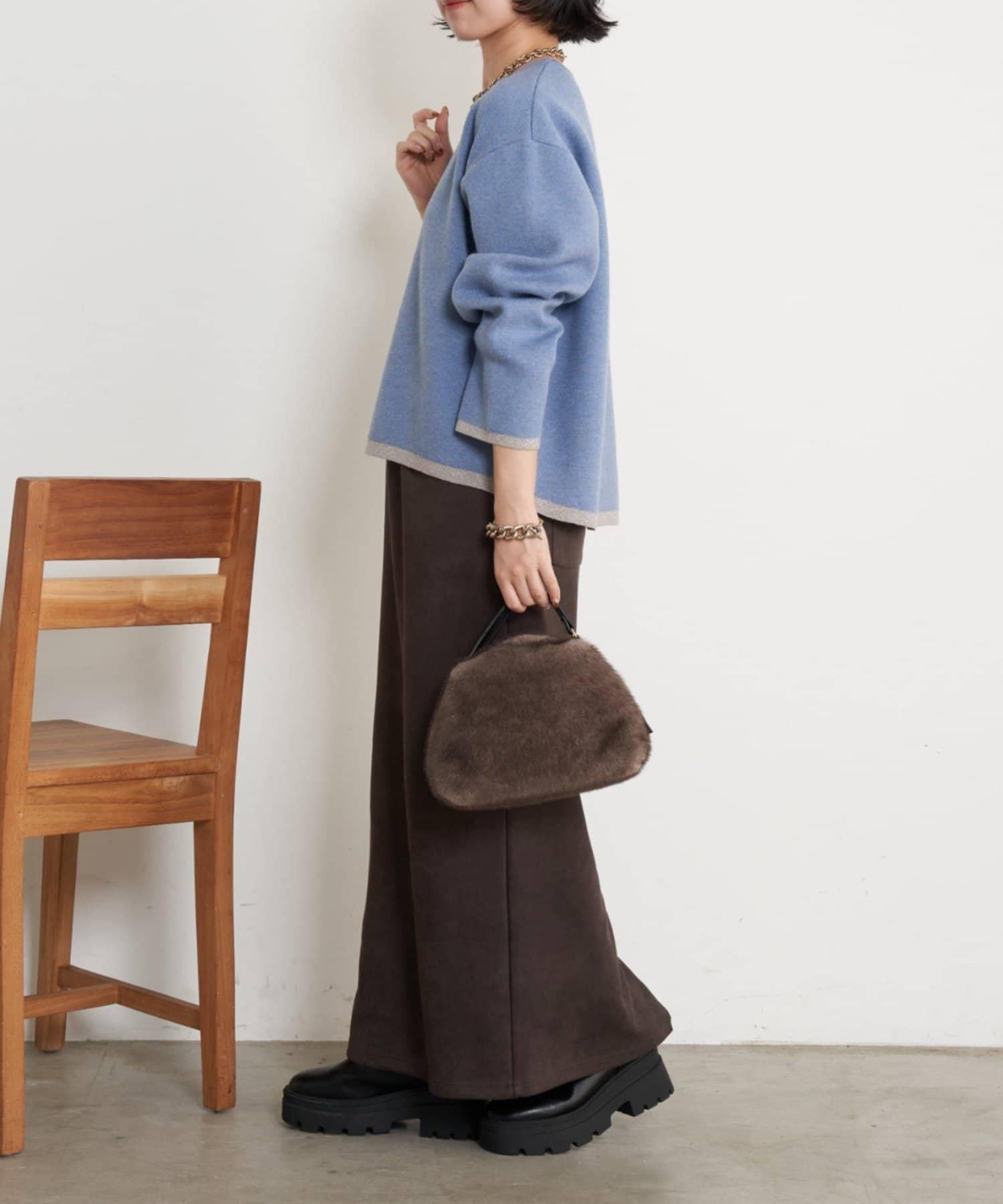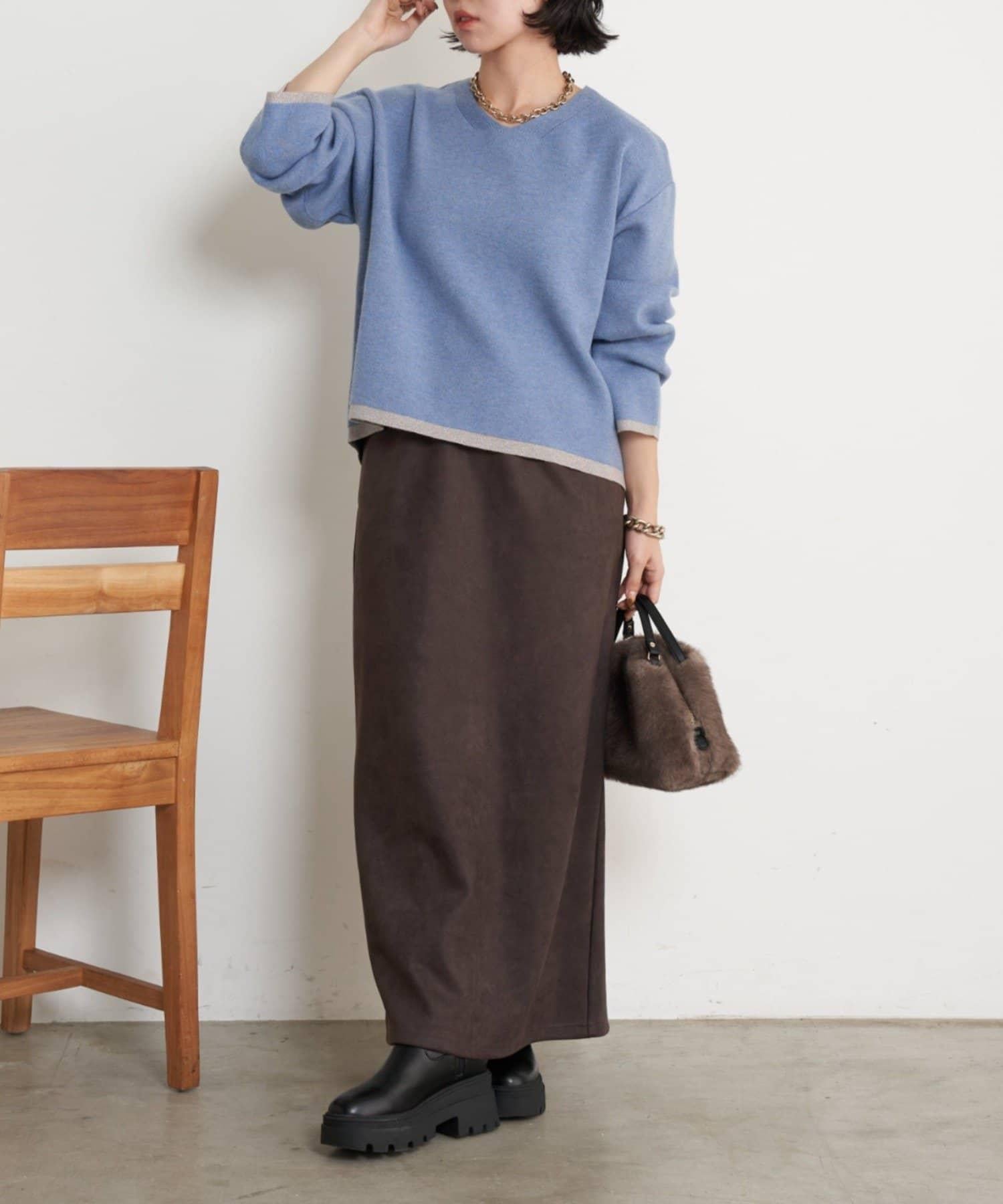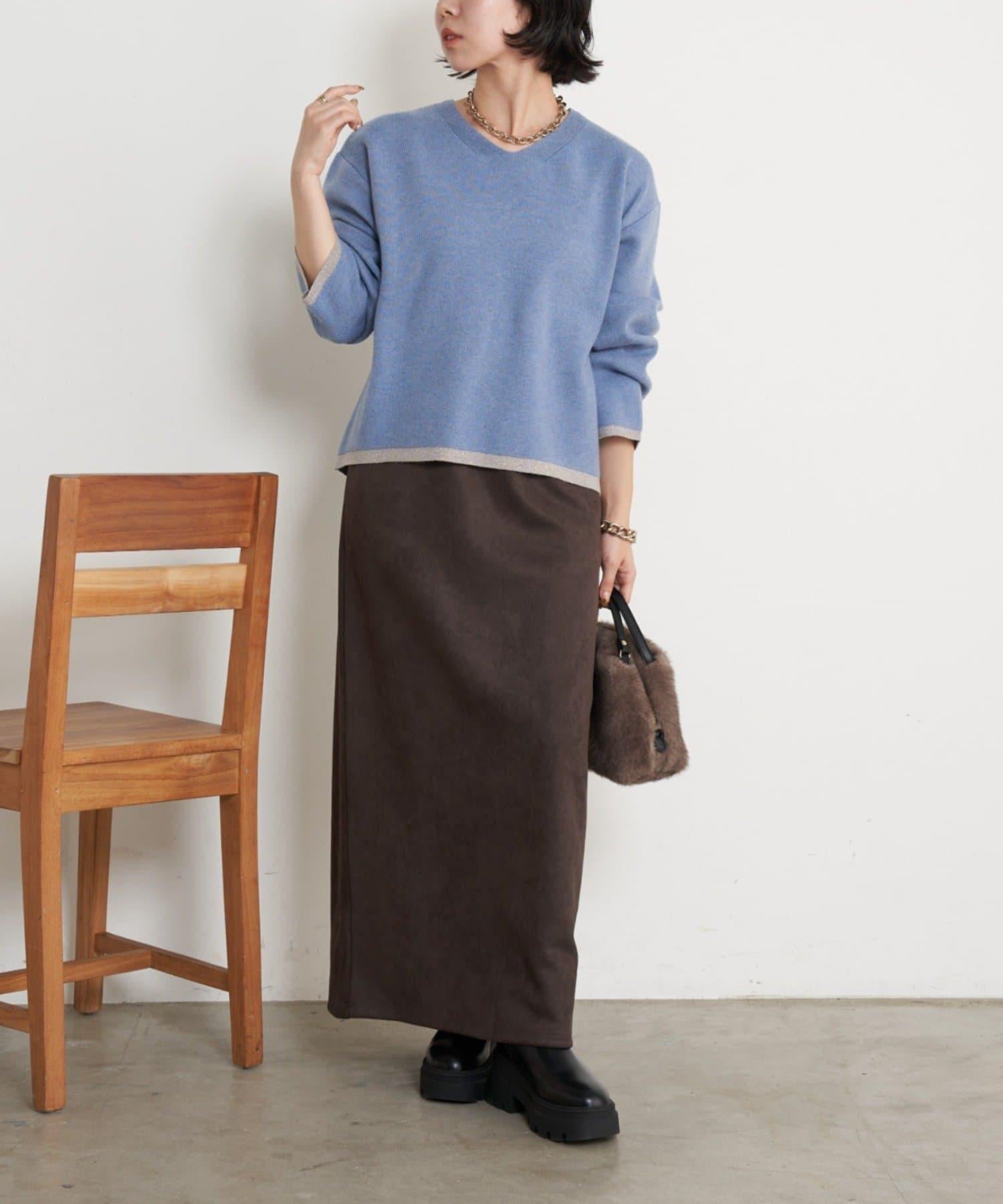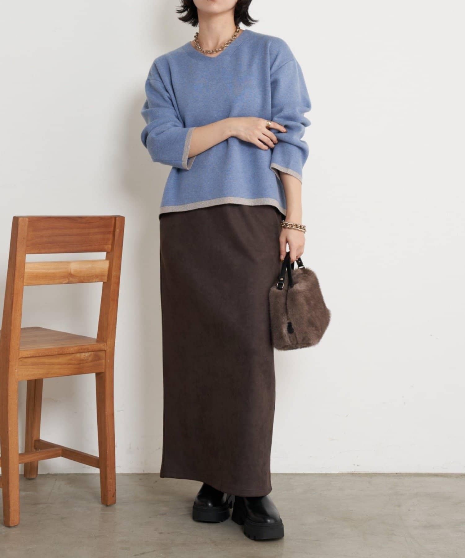 簡潔的針織衫,袖子和下襬飾有薄片線條。