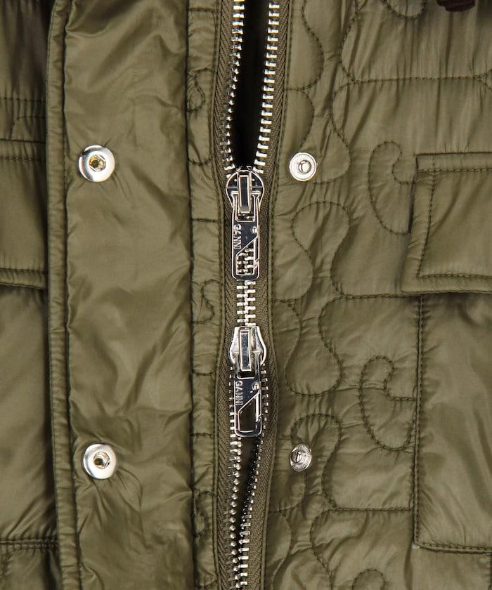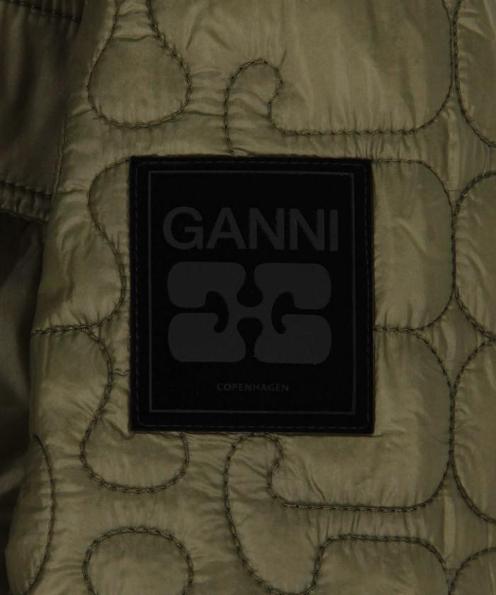 略帶光澤的面料和絎縫刺繡的 GANNI 蝴蝶標誌是這款夾克的亮點。