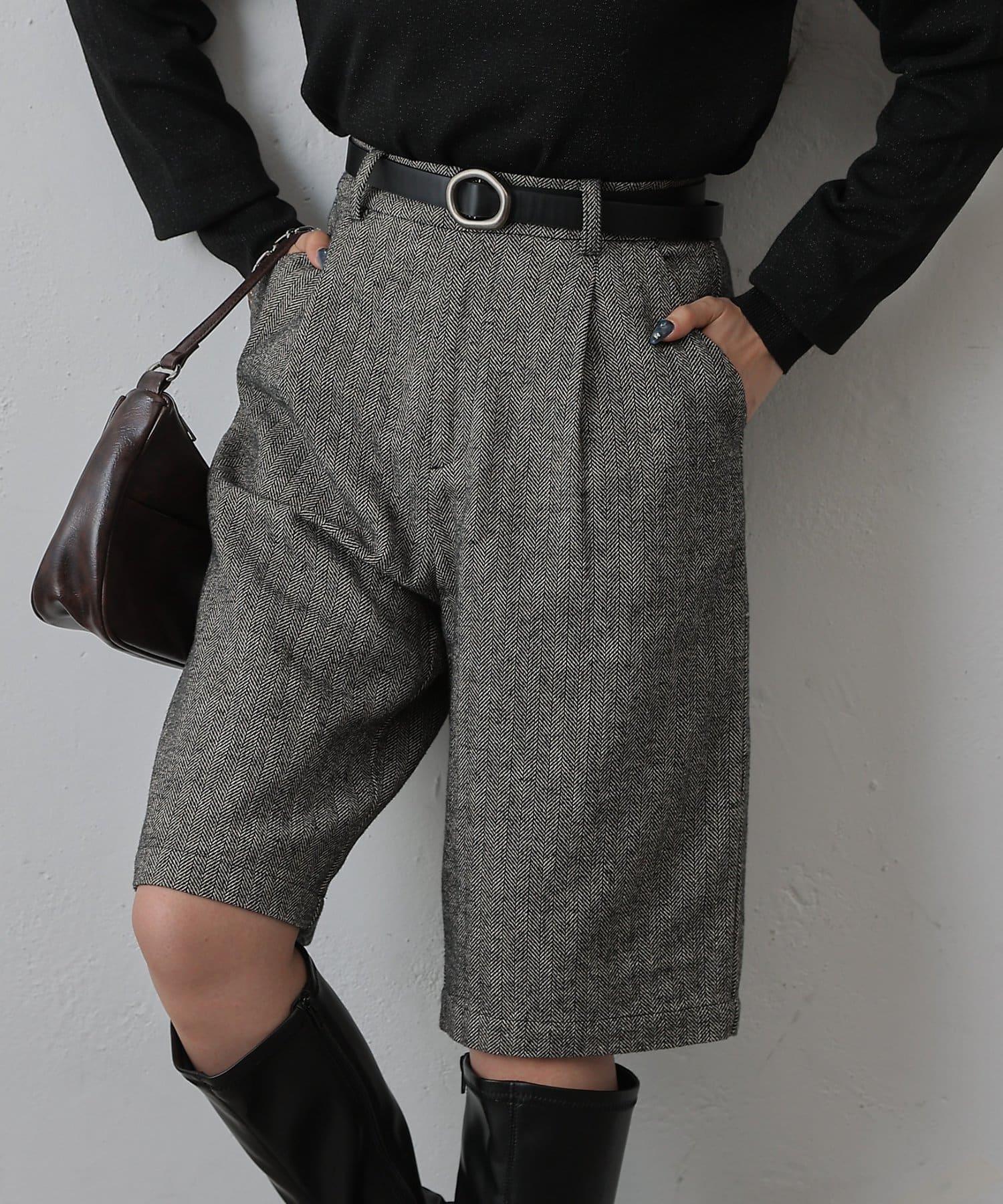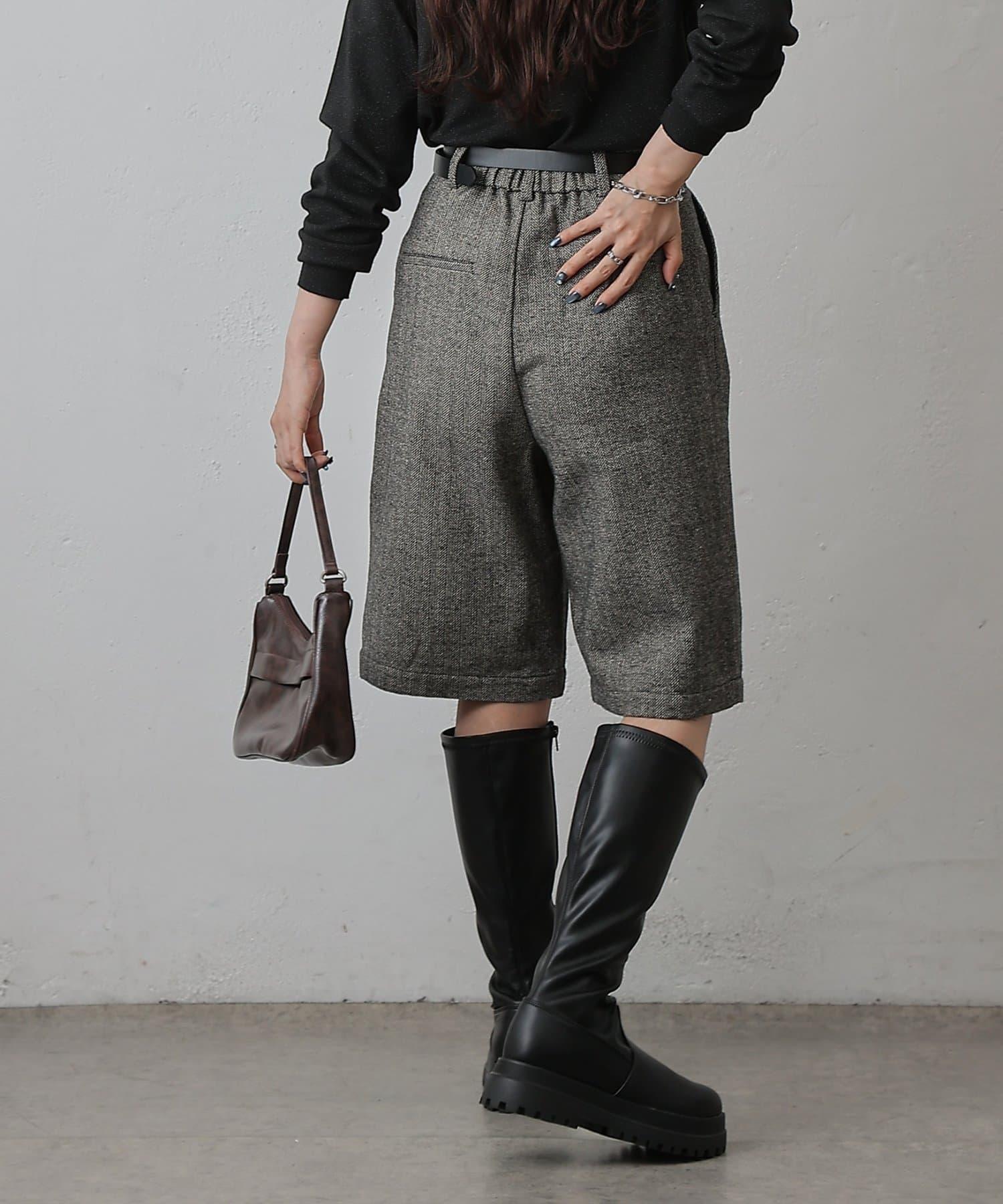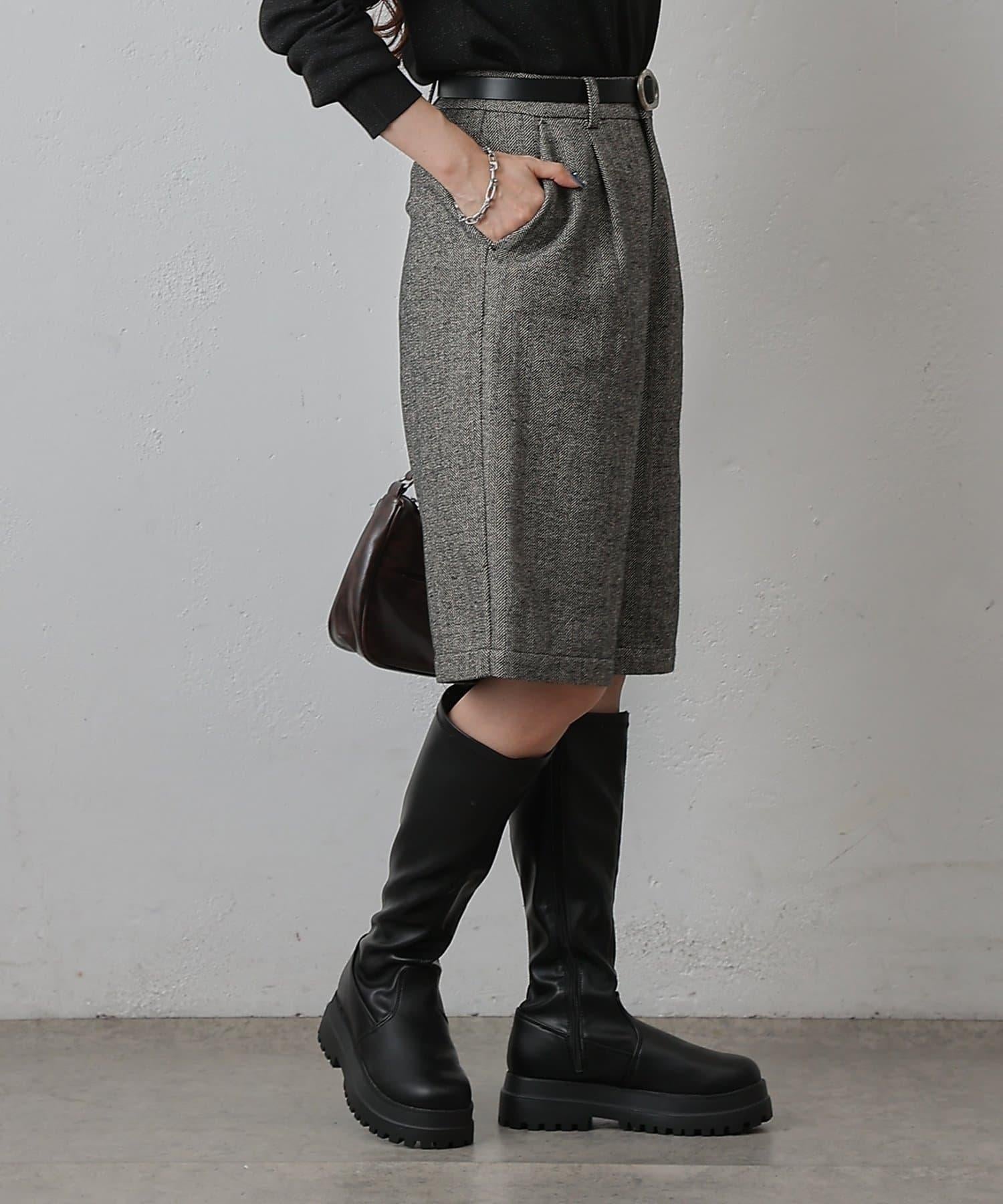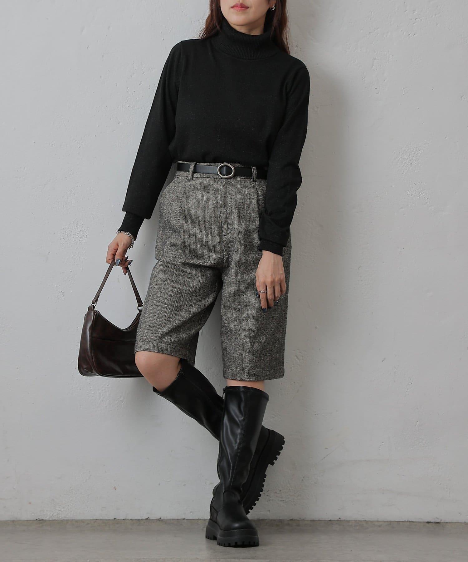 半身褲的長度不會太短,所以搭配靴子也很合適。