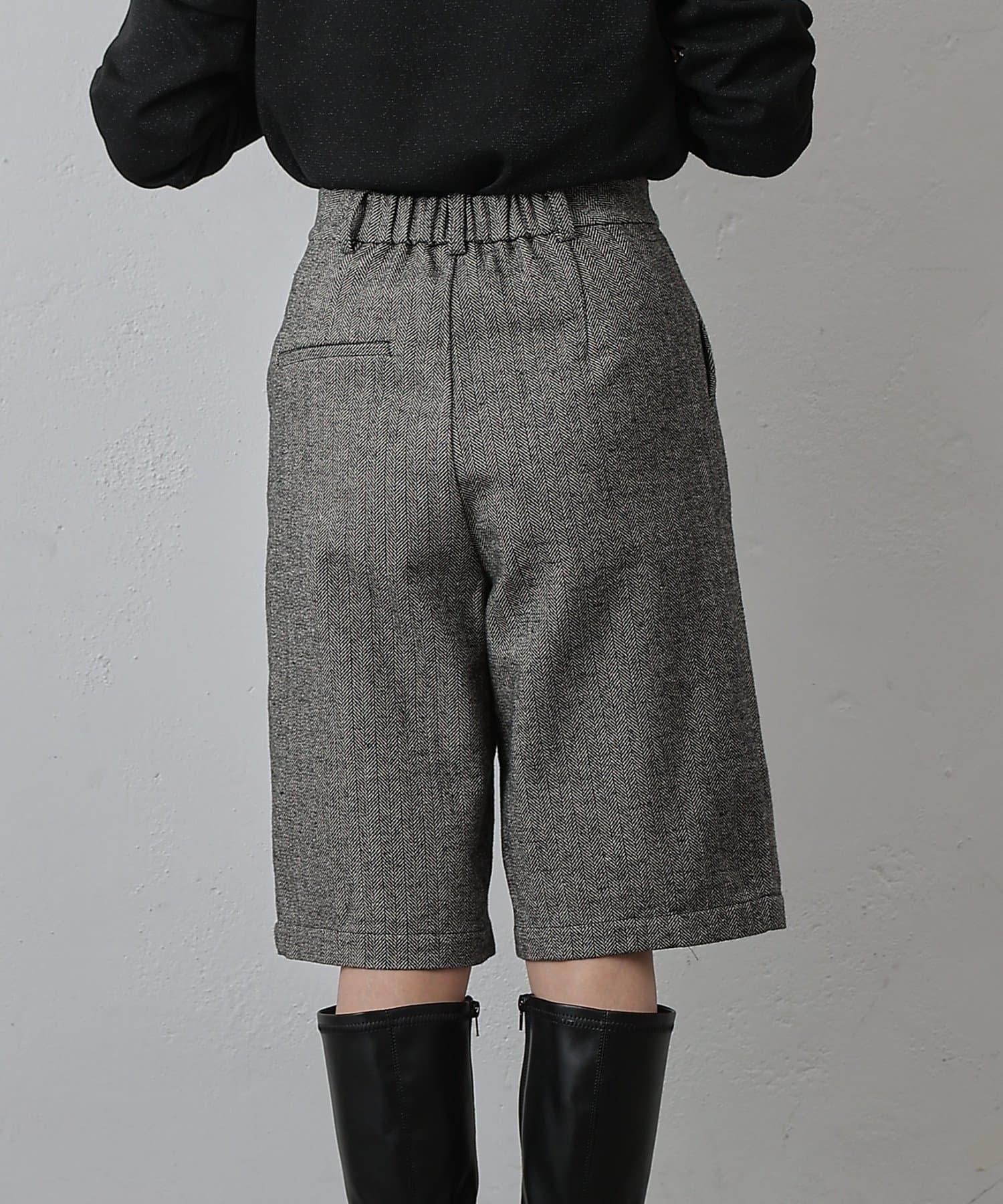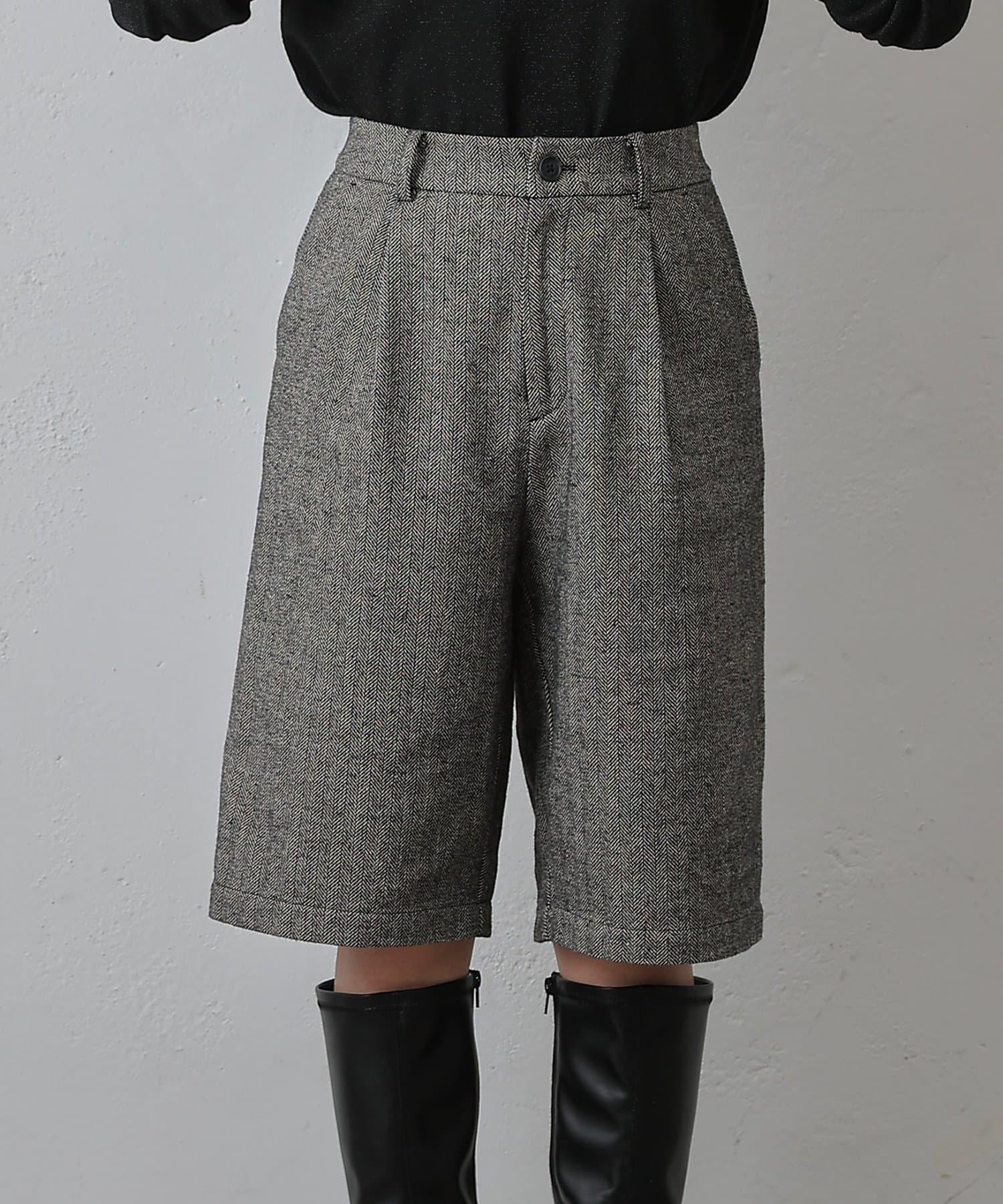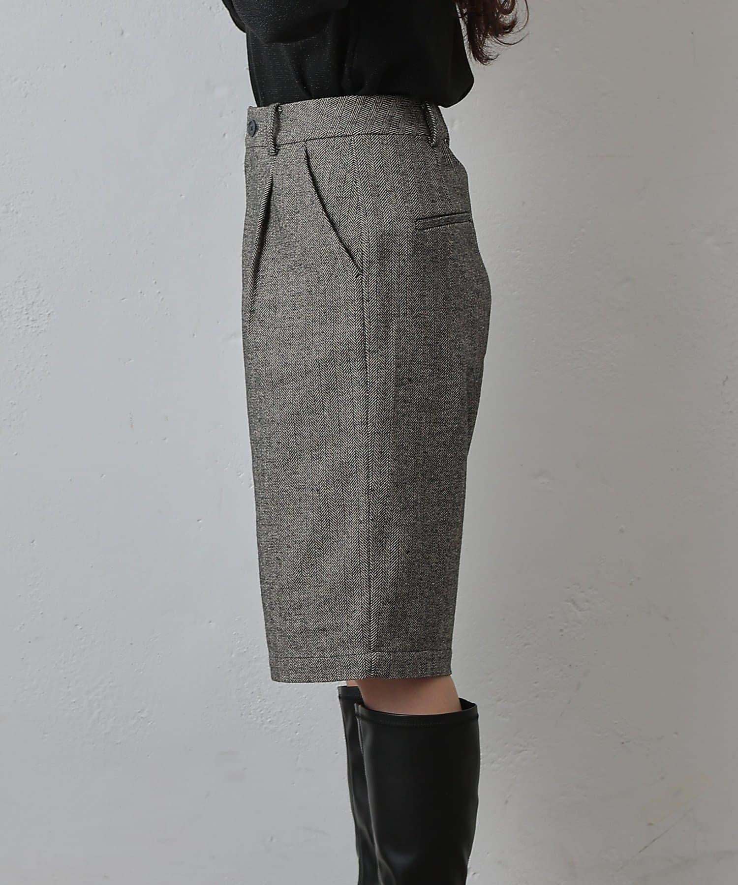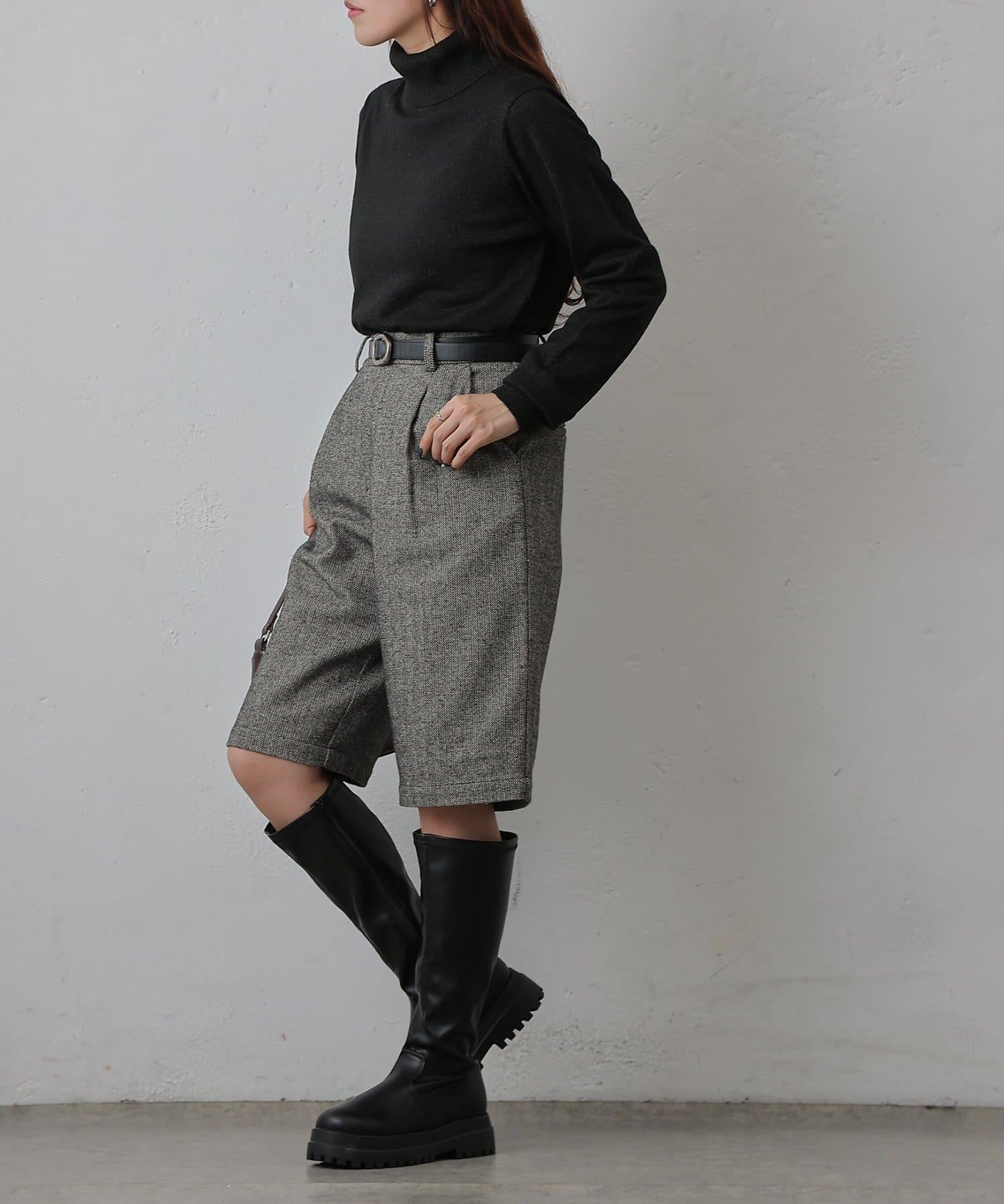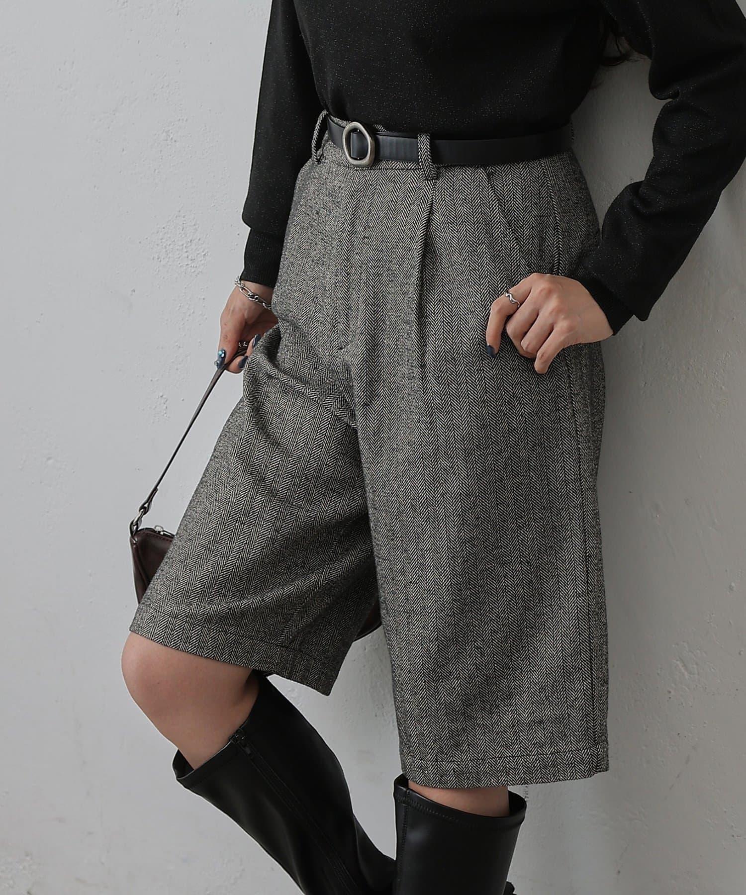 半身褲的長度不會太短,所以搭配靴子也很合適。