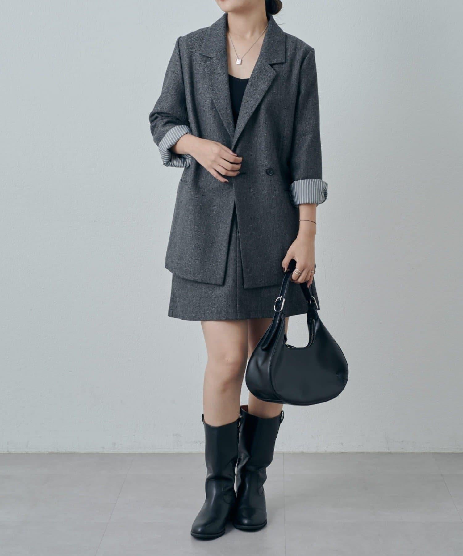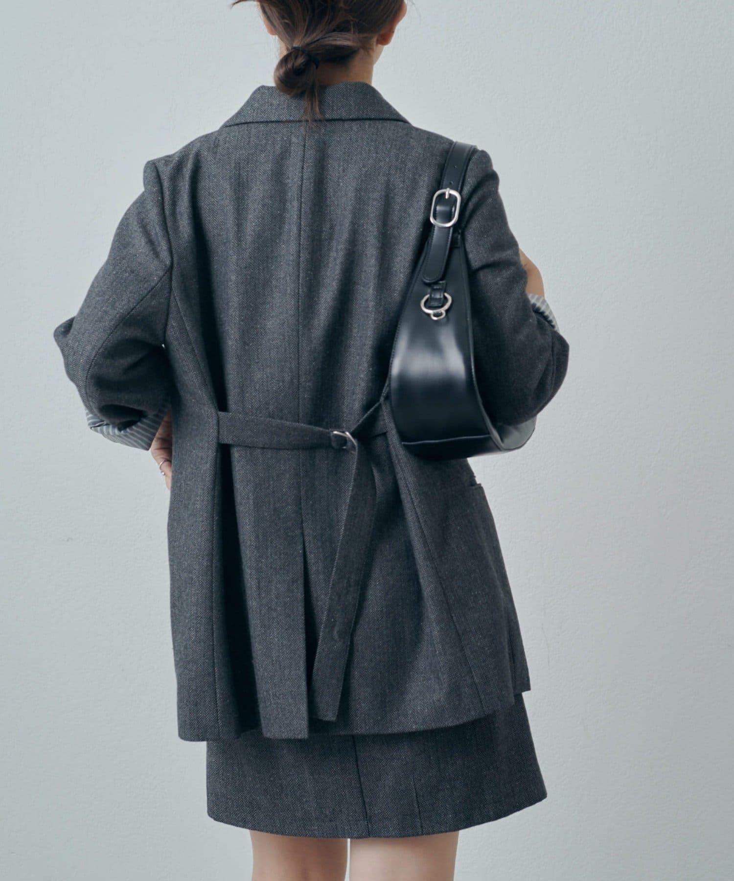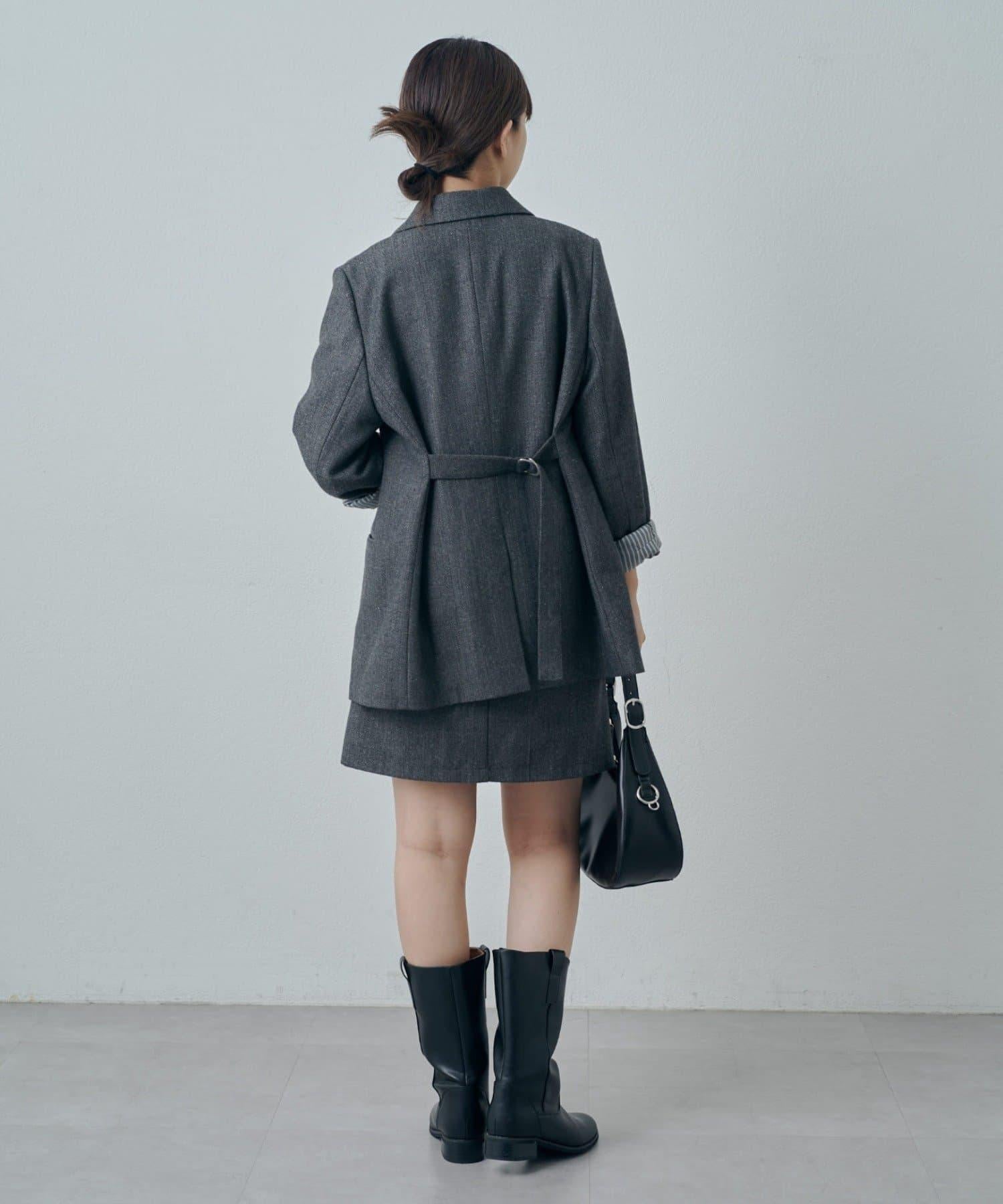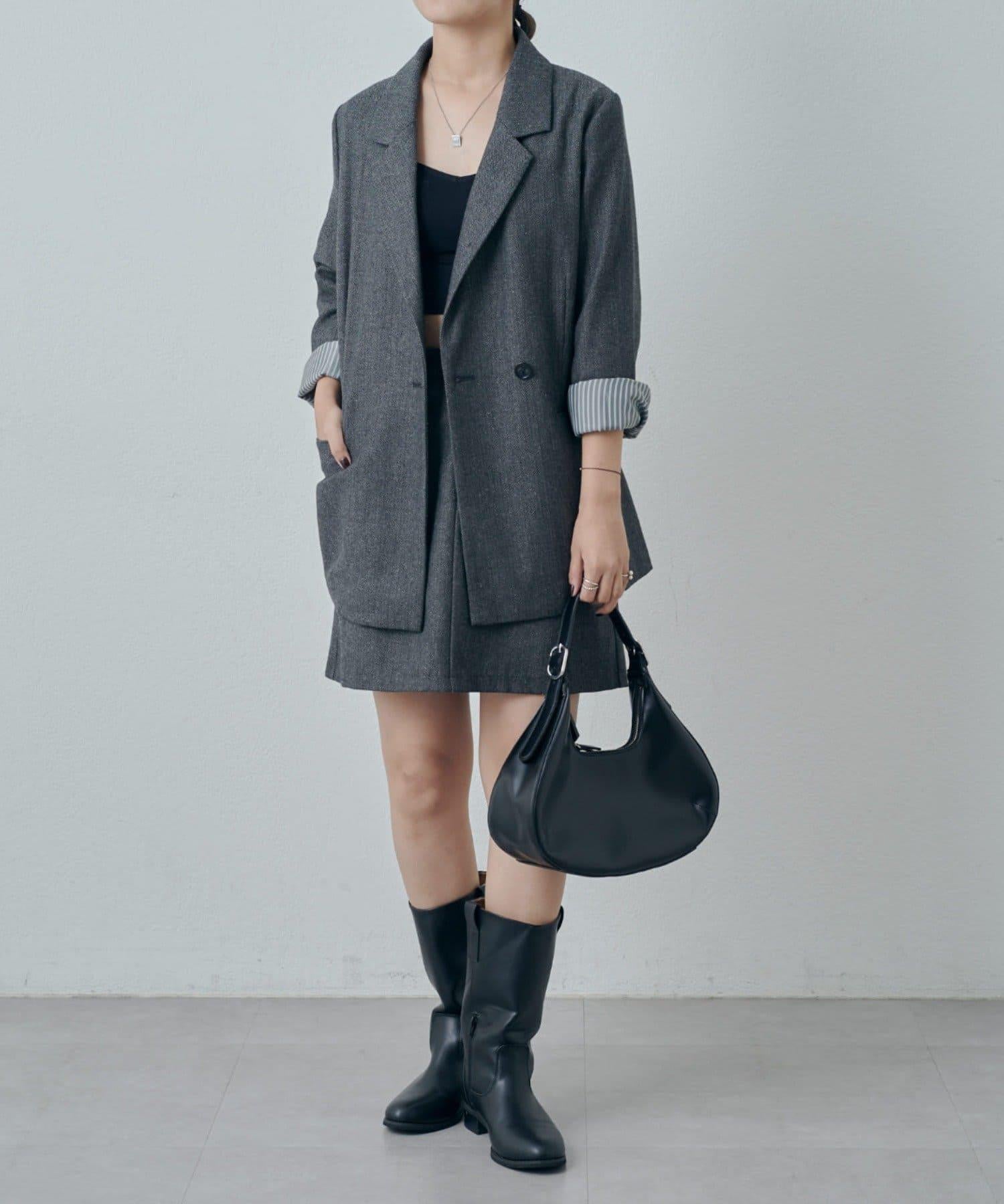 建議與同材質的裙子 [LUZ1052202A0004 人字形超短裙] 搭配,享受套裝風格。