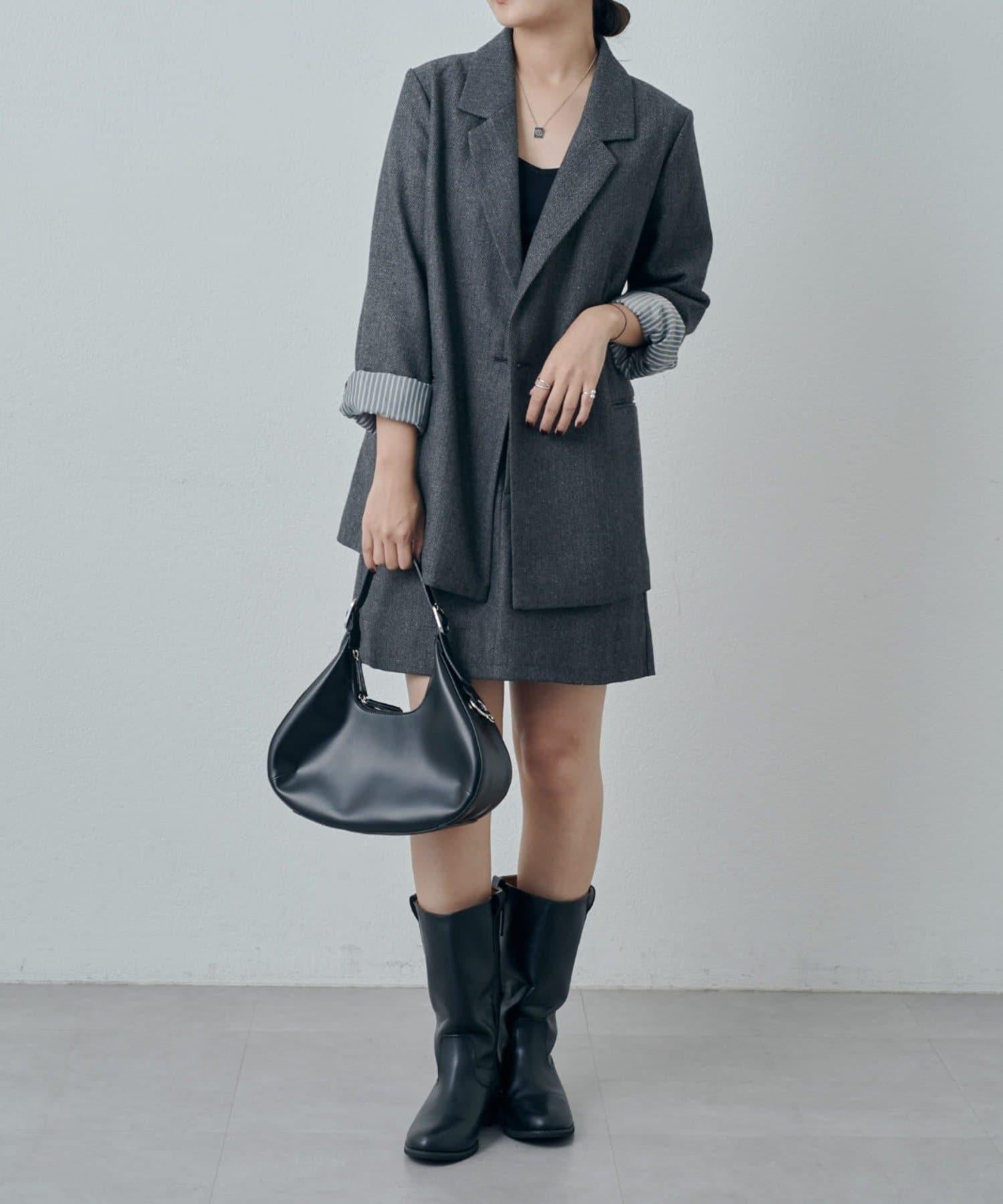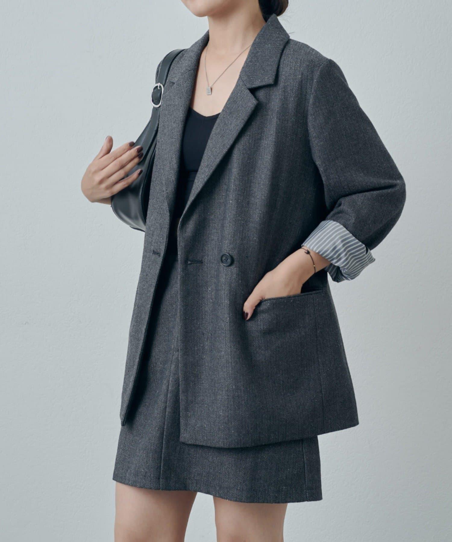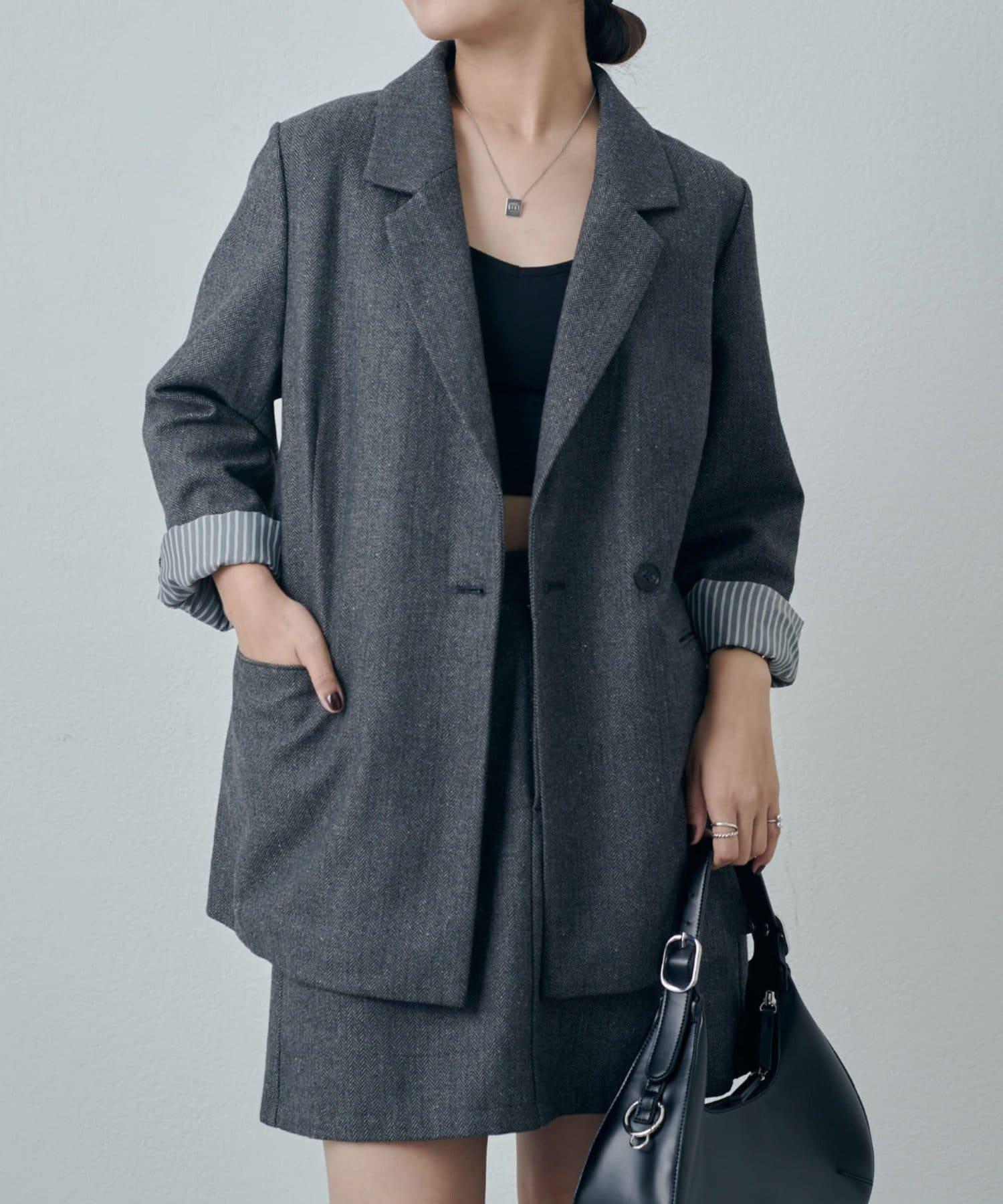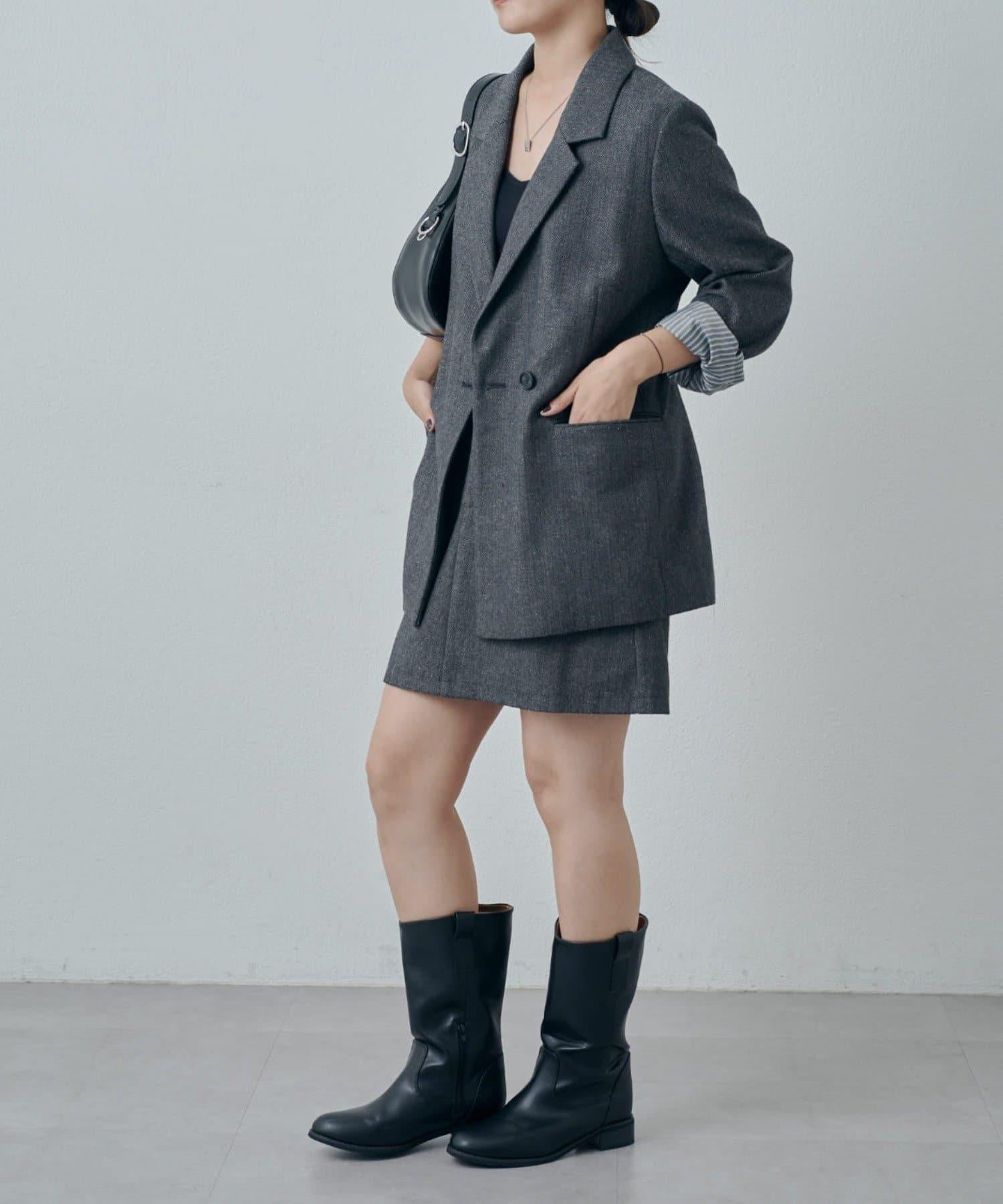建議與同材質的裙子 [LUZ1052202A0004 人字形超短裙] 搭配,享受套裝風格。
