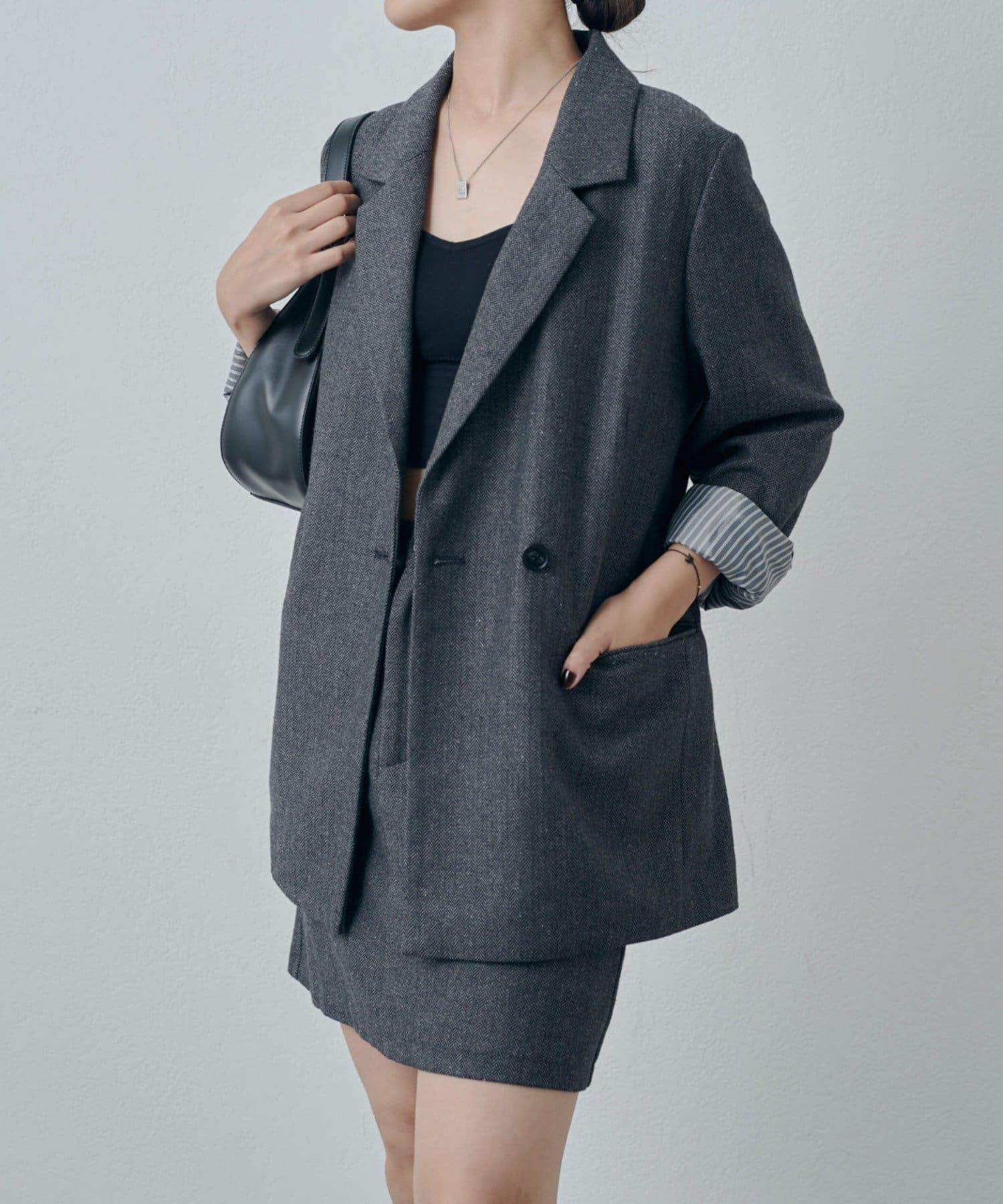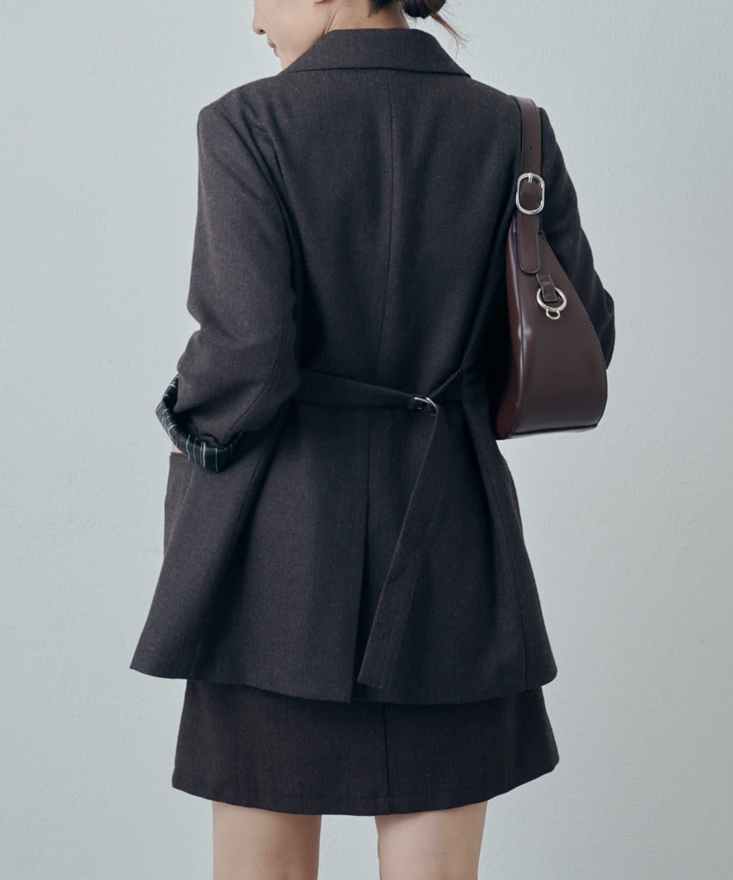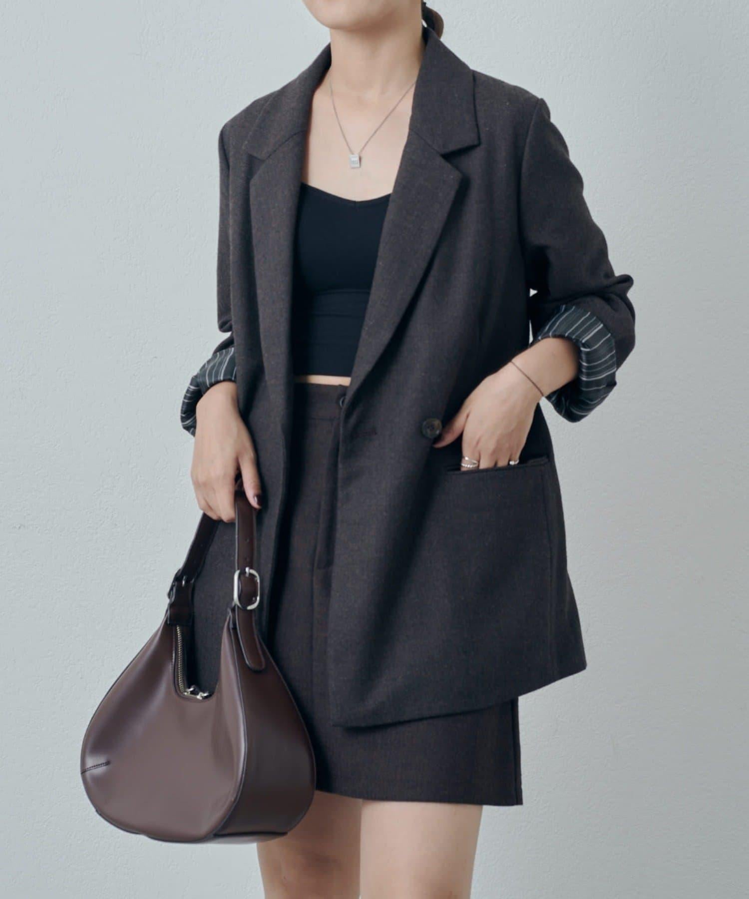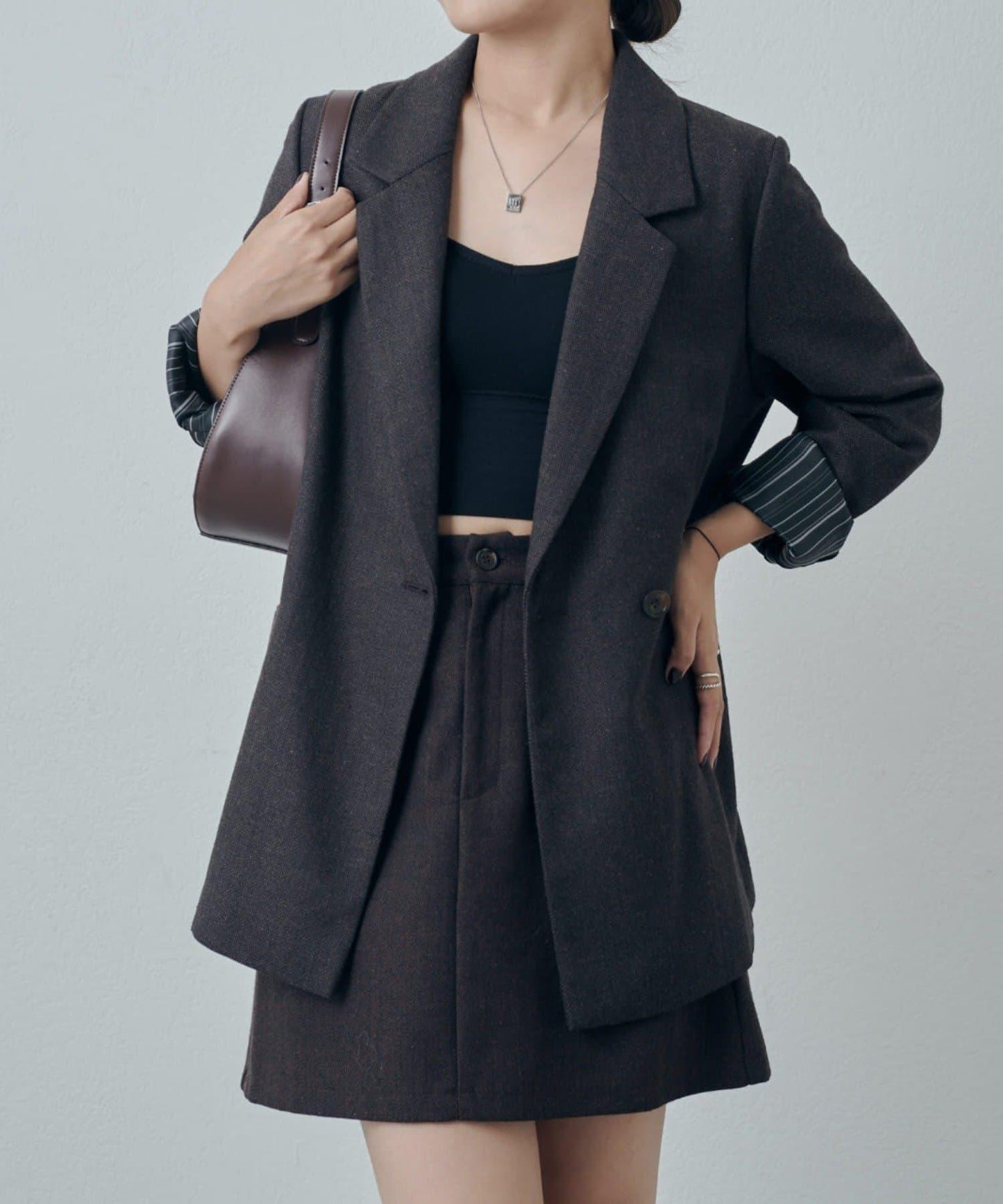 建議與同材質的裙子 [LUZ1052202A0004 人字形超短裙] 搭配,享受套裝風格。