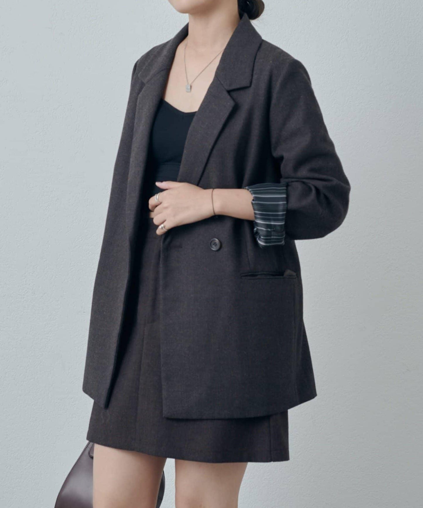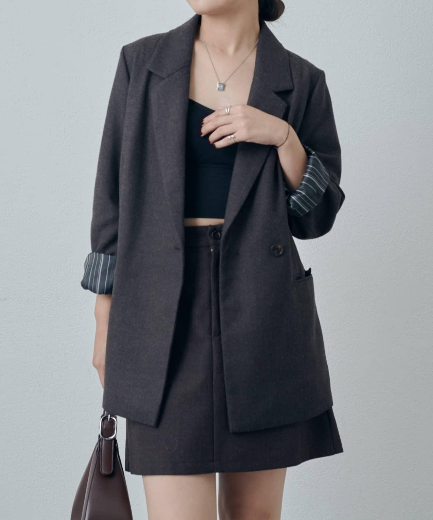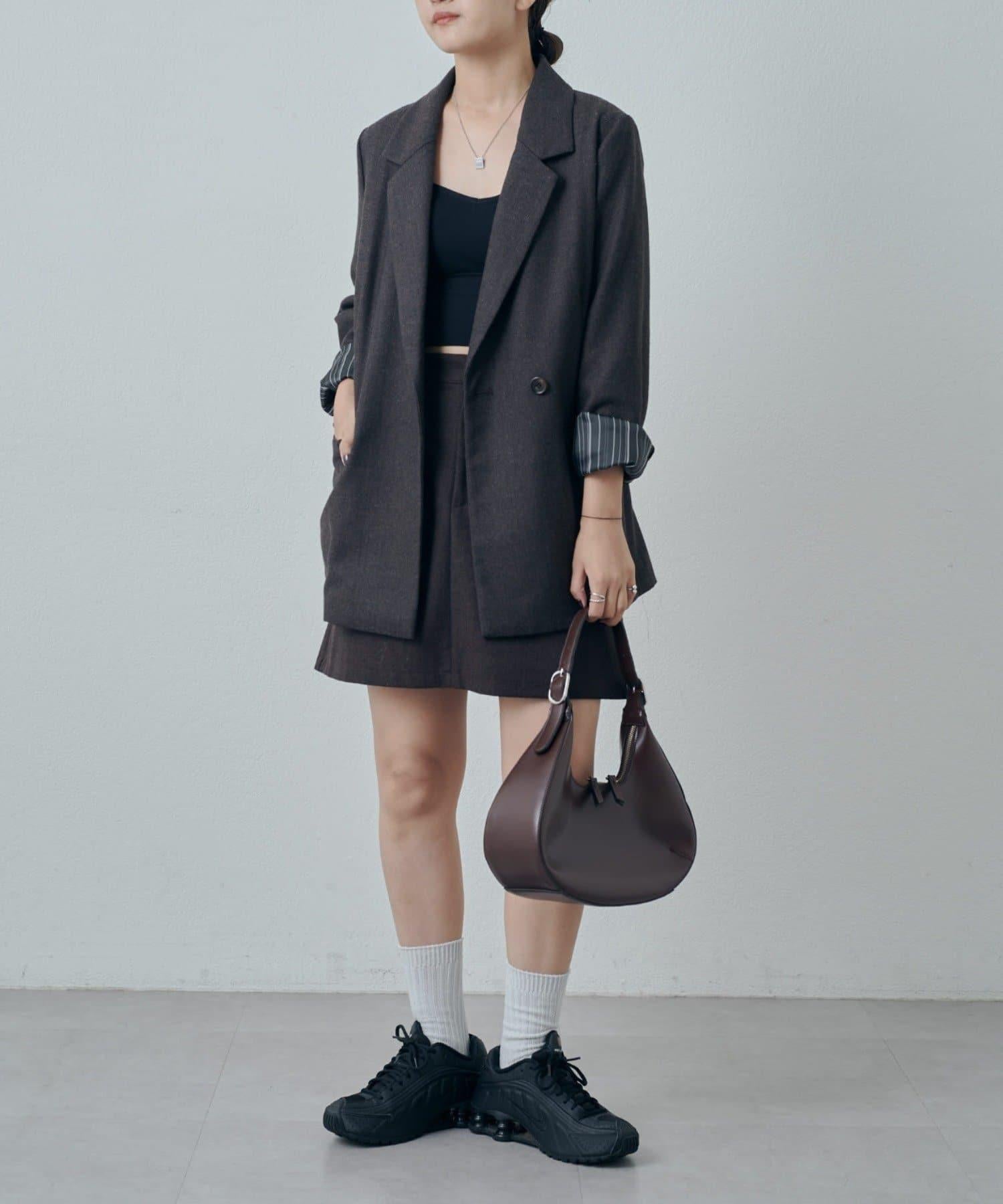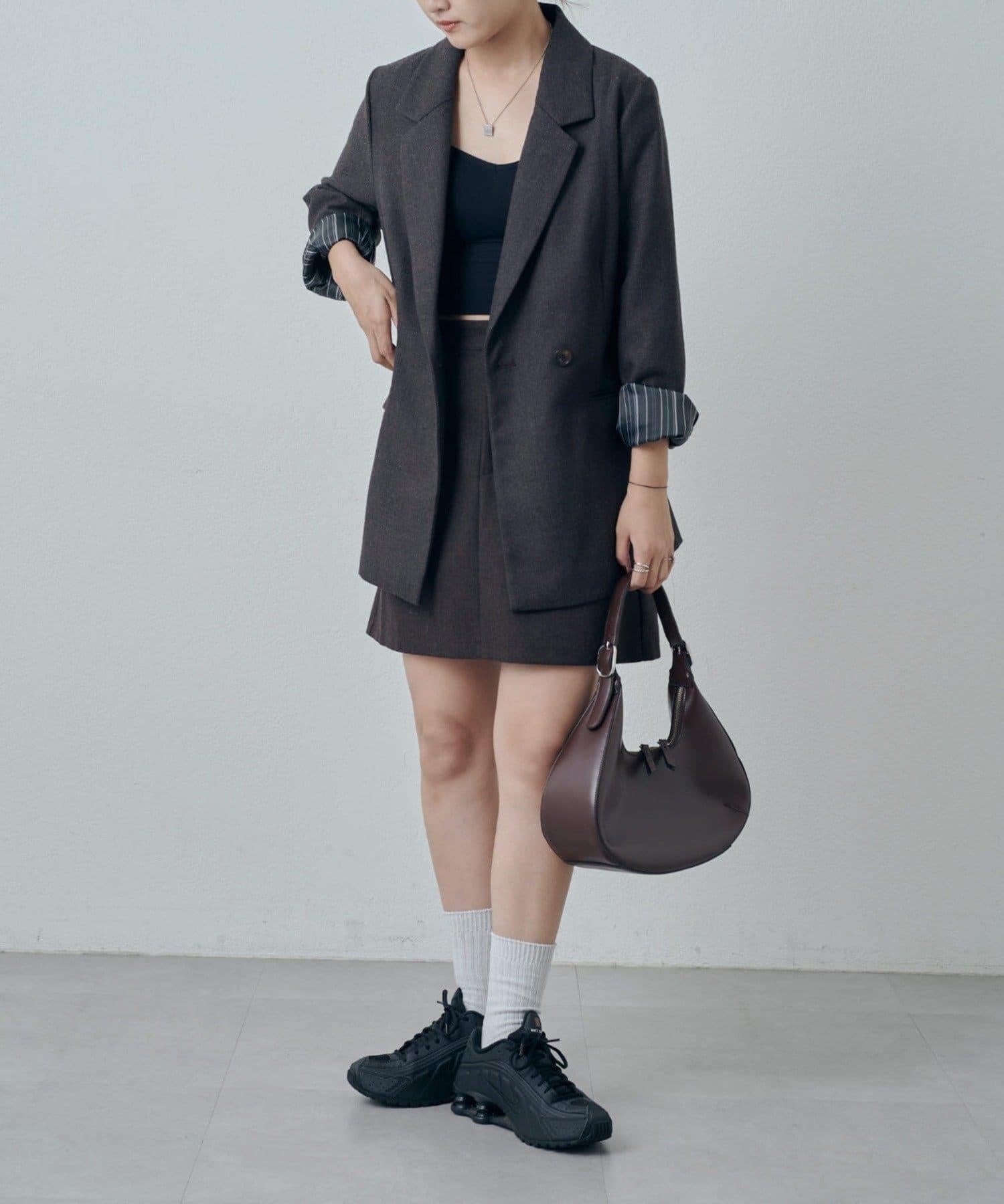 建議與同材質的裙子 [LUZ1052202A0004 人字形超短裙] 搭配,享受套裝風格。