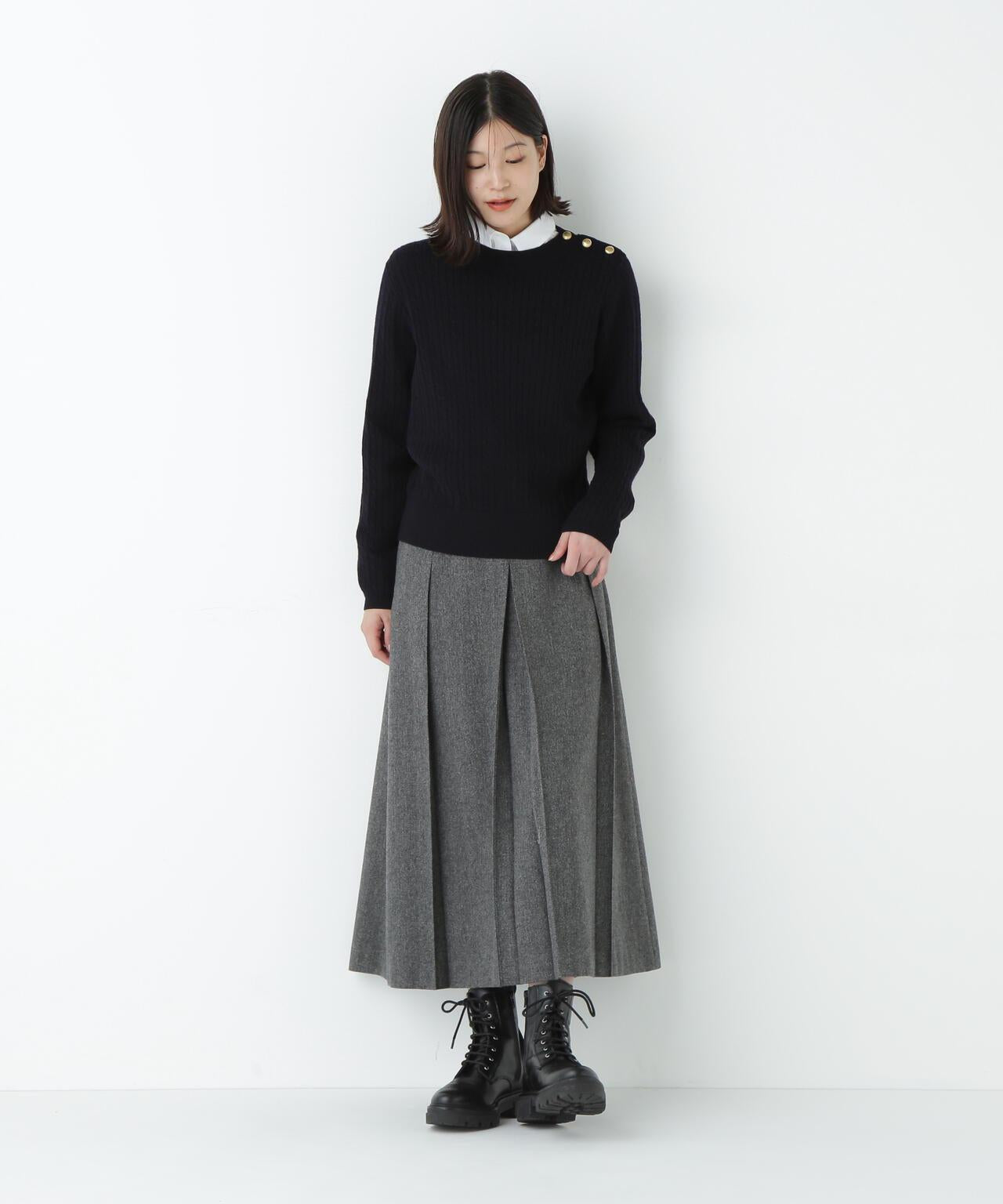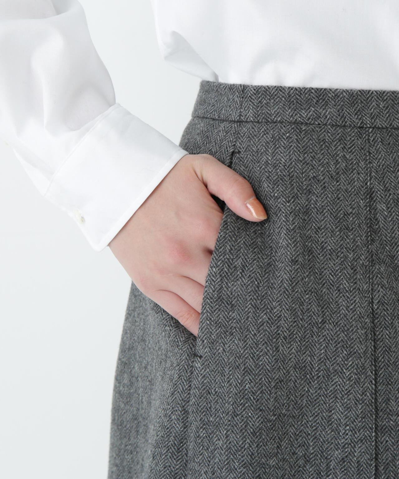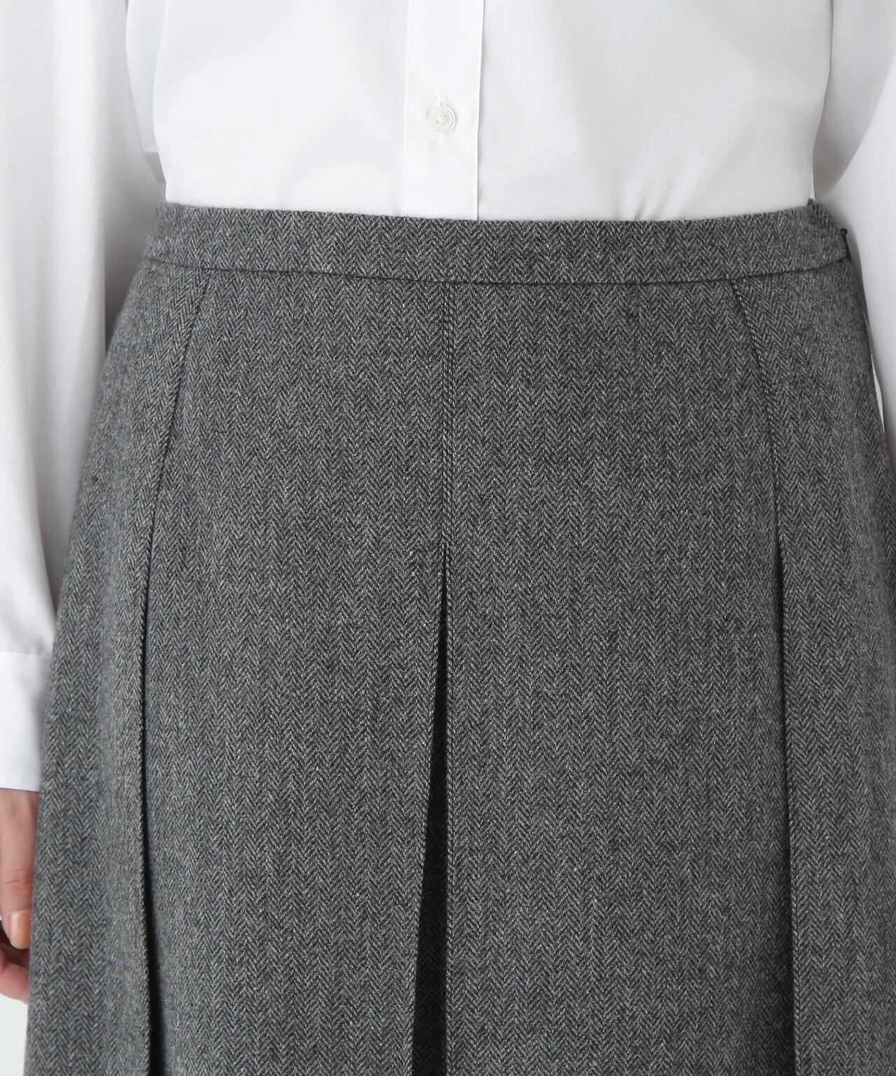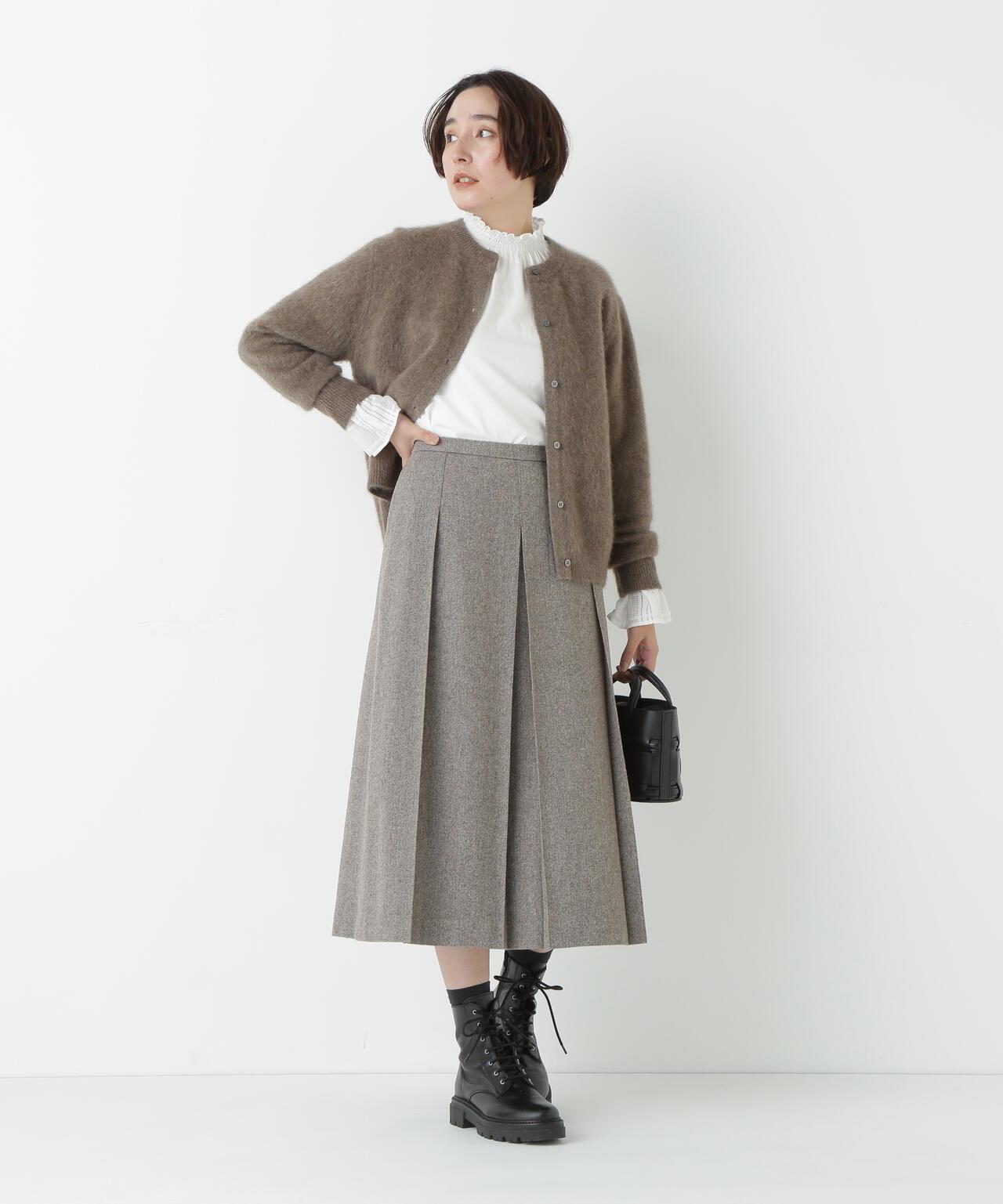 經典秋冬毛呢短裙 [設計要點] 這款羊毛短裙設計簡潔,前後均有褶襉。褶襉採用科巴針法縫製,營造出點睛之筆。毛呢是為比紹地區的人類女性織造的,是一種既蓬鬆又有光澤的特殊毛呢面料。面料具有特殊的花呢質地,既蓬鬆又有光澤。