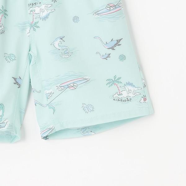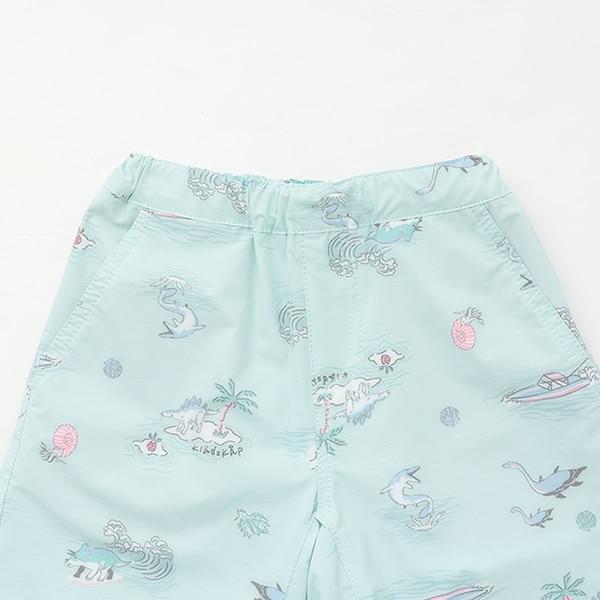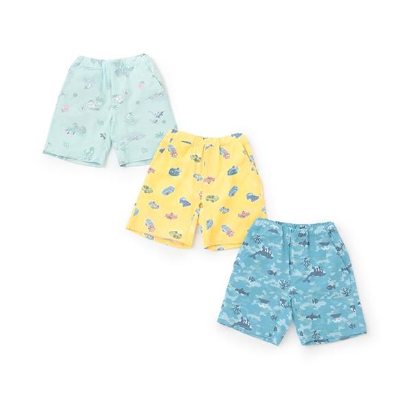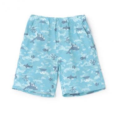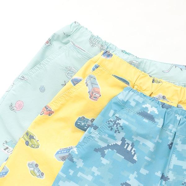 黃色是交通工具,淺綠色是恐龍阿羅哈,藍色是像素迷彩風格的魚圖案。
