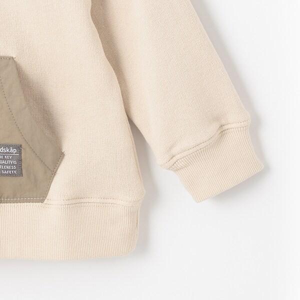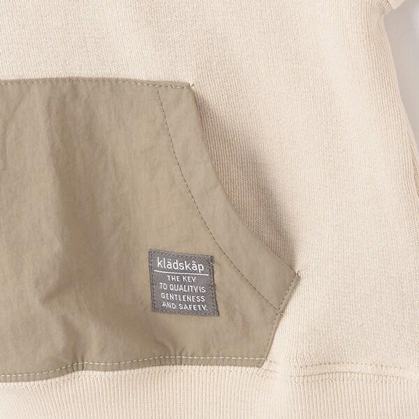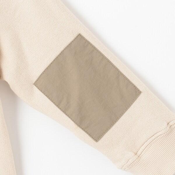袋鼠口袋和肘部貼布由不同的材料混合製成,塔夫綢具有戶外感。