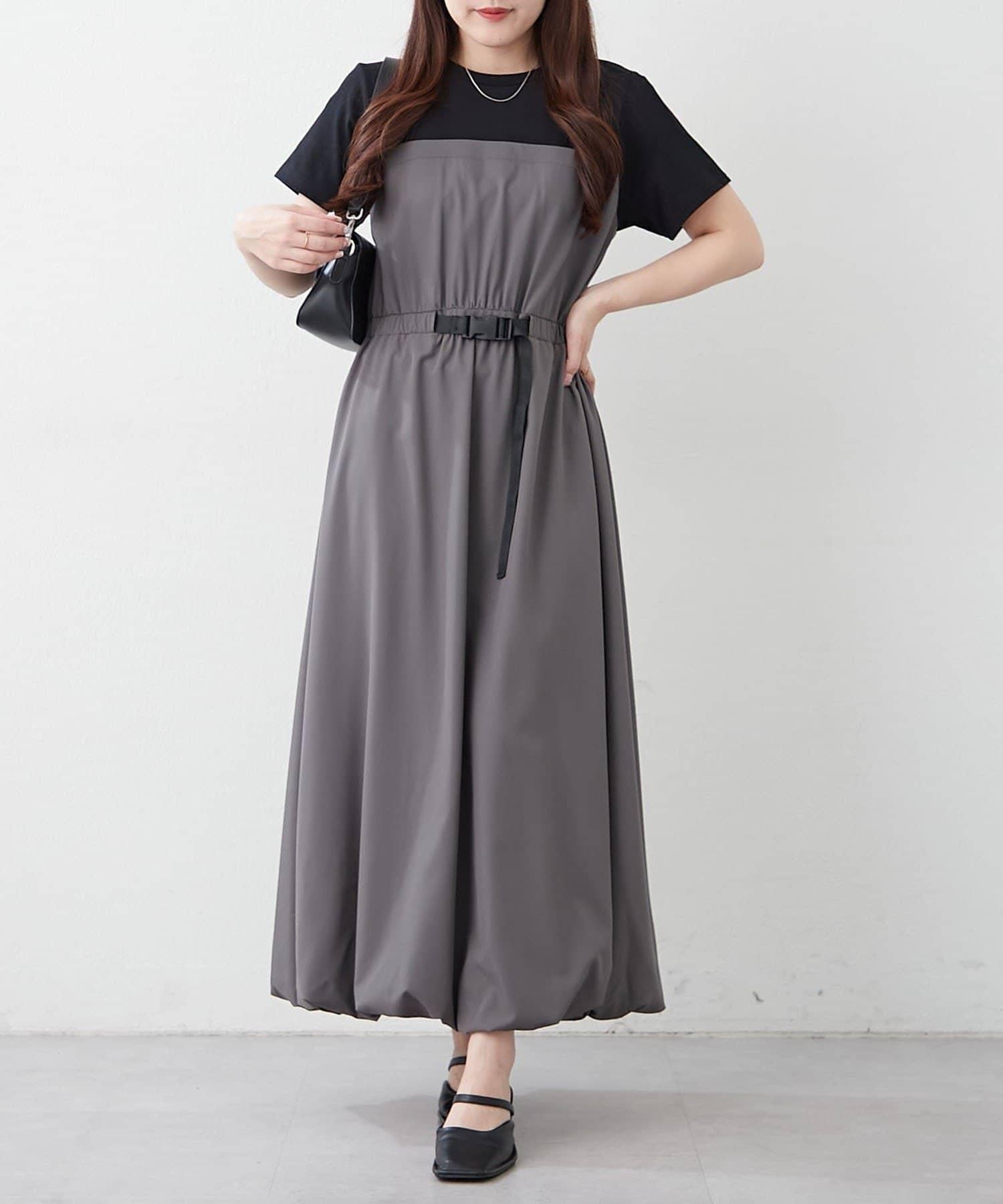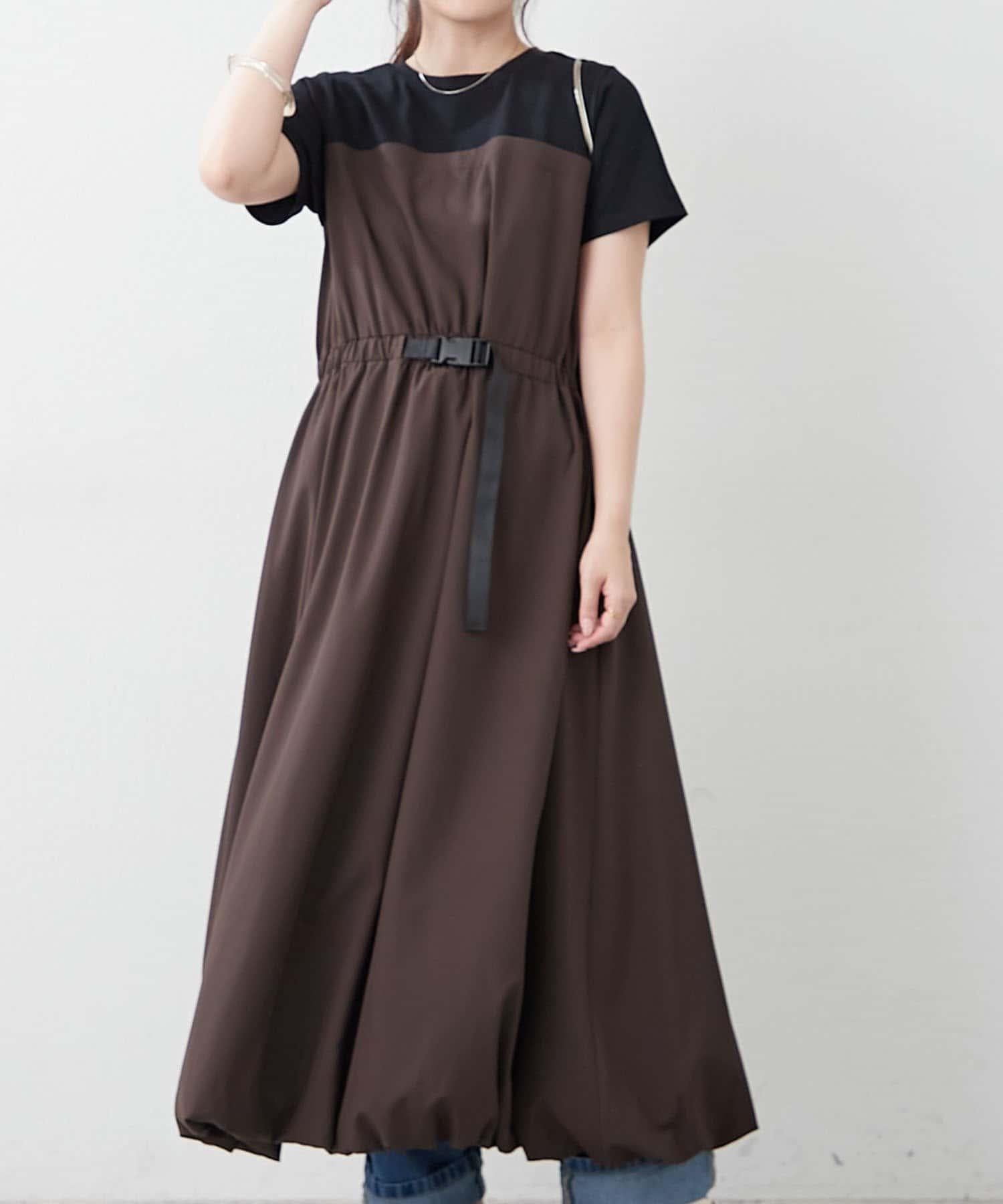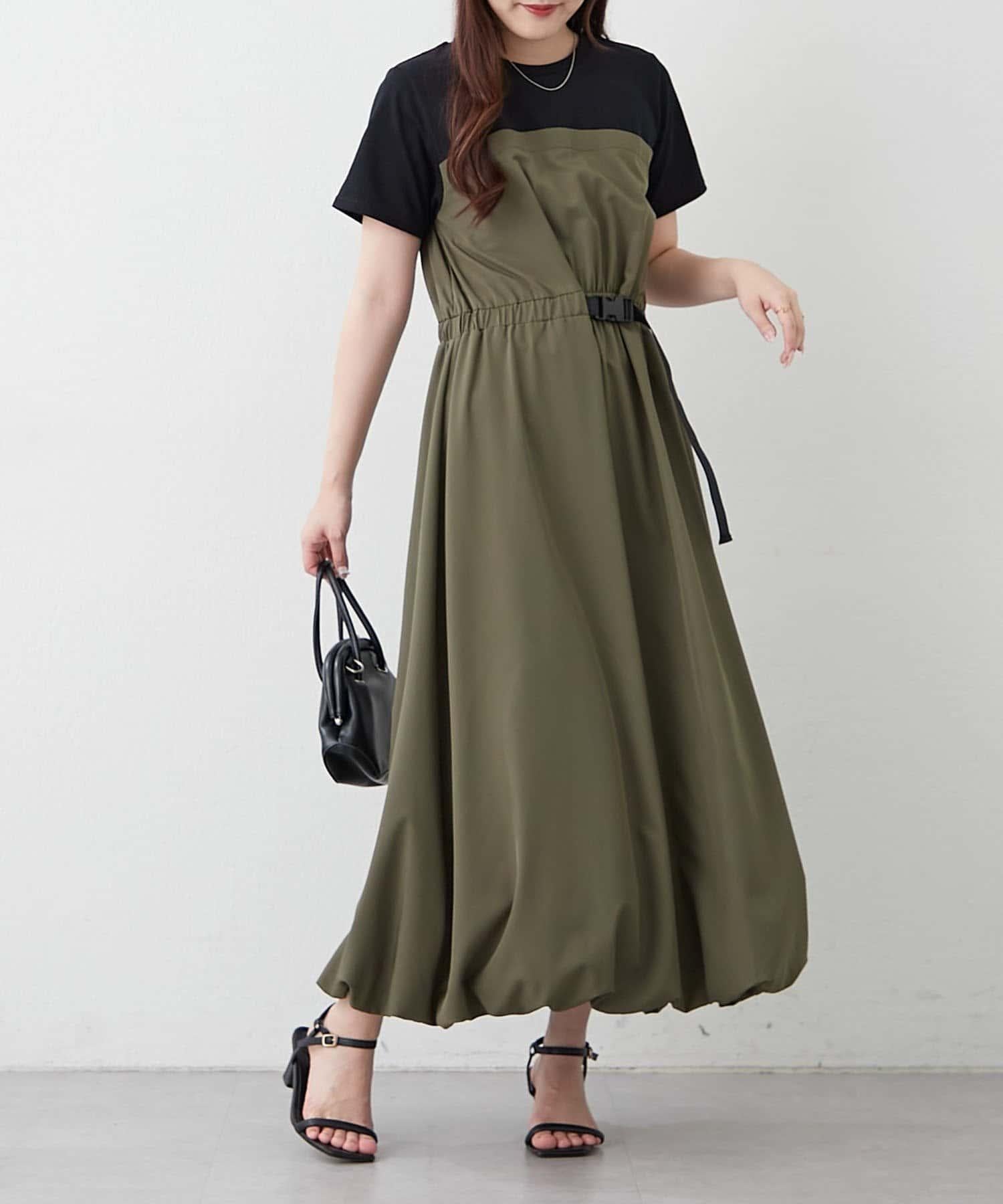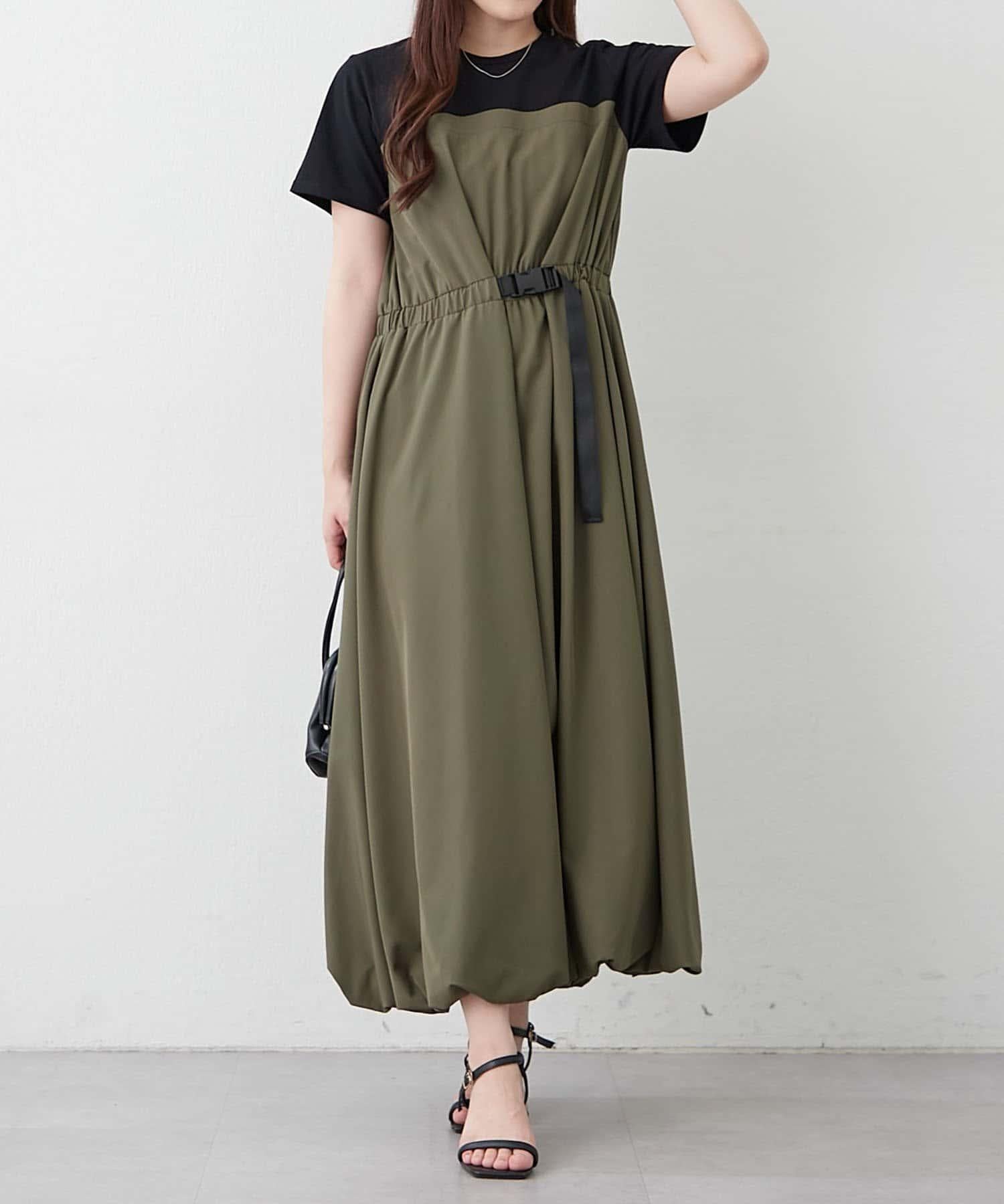 【人氣系列】帶腰帶的對接氣球連衣裙