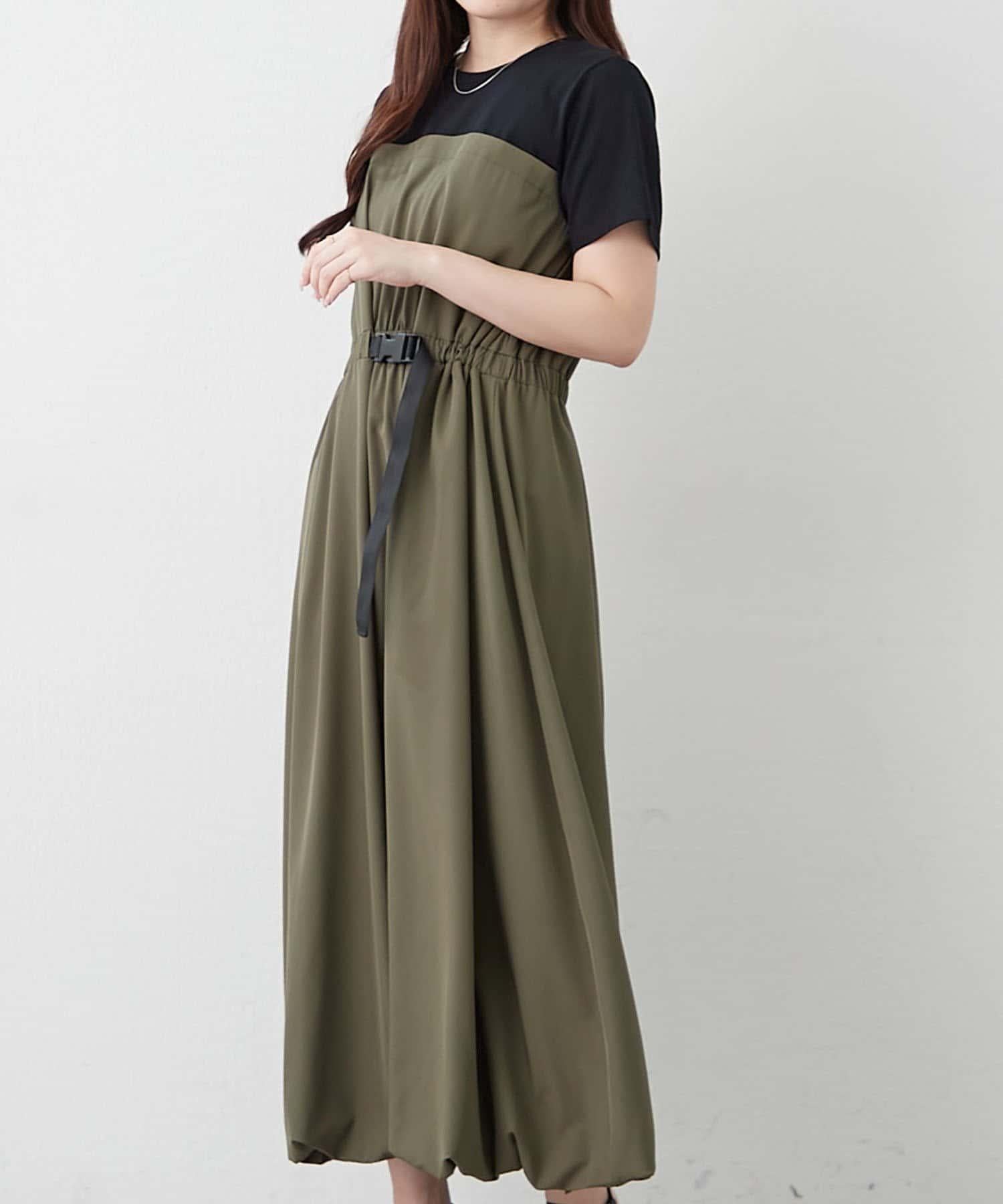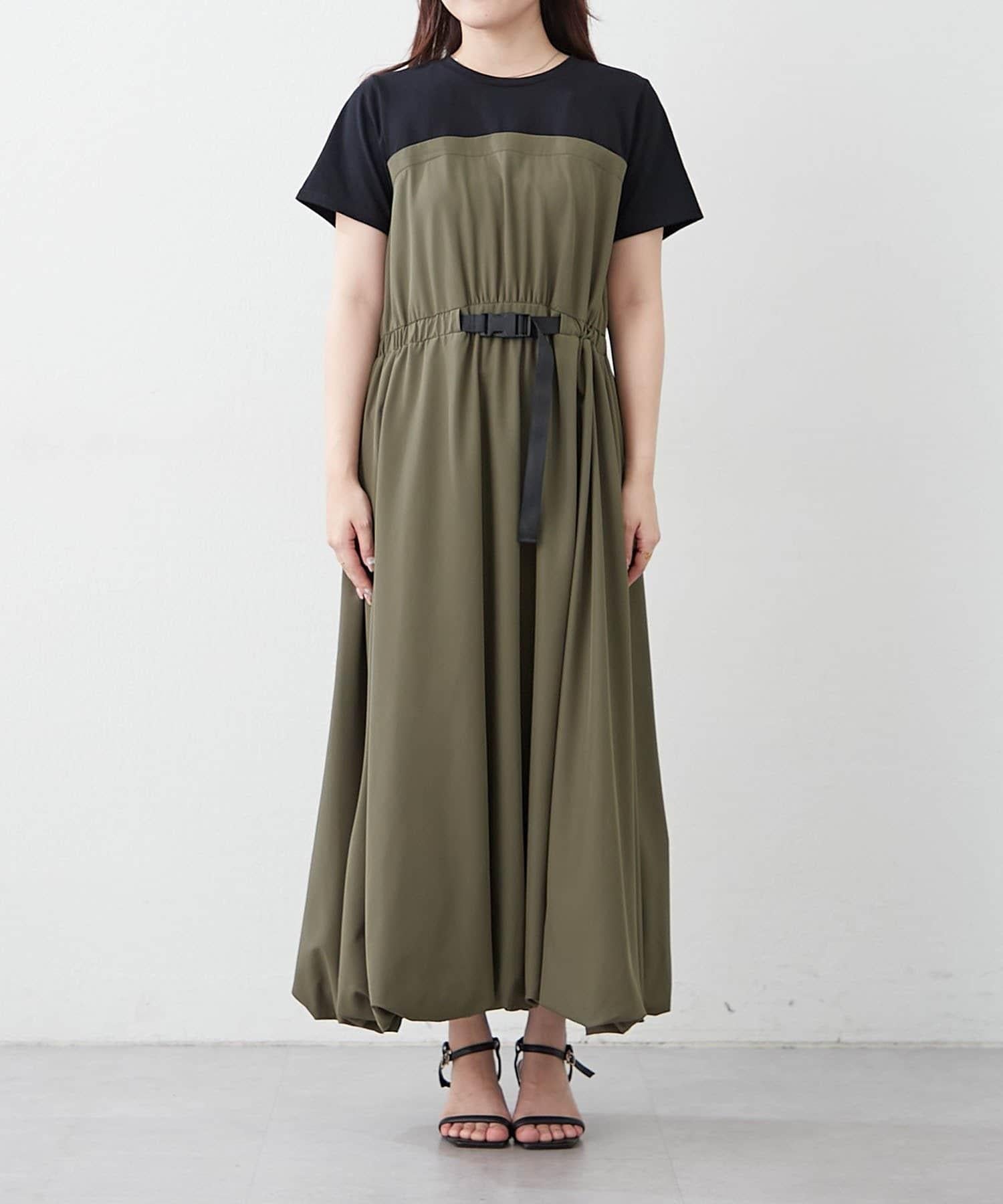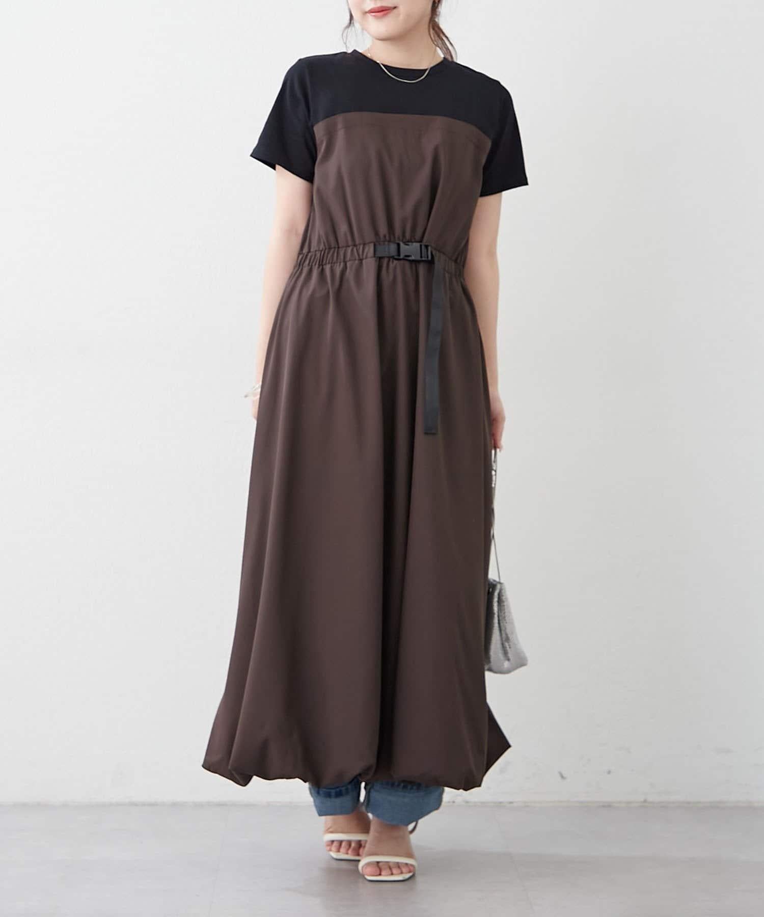 【人氣系列】帶腰帶的對接氣球連衣裙
