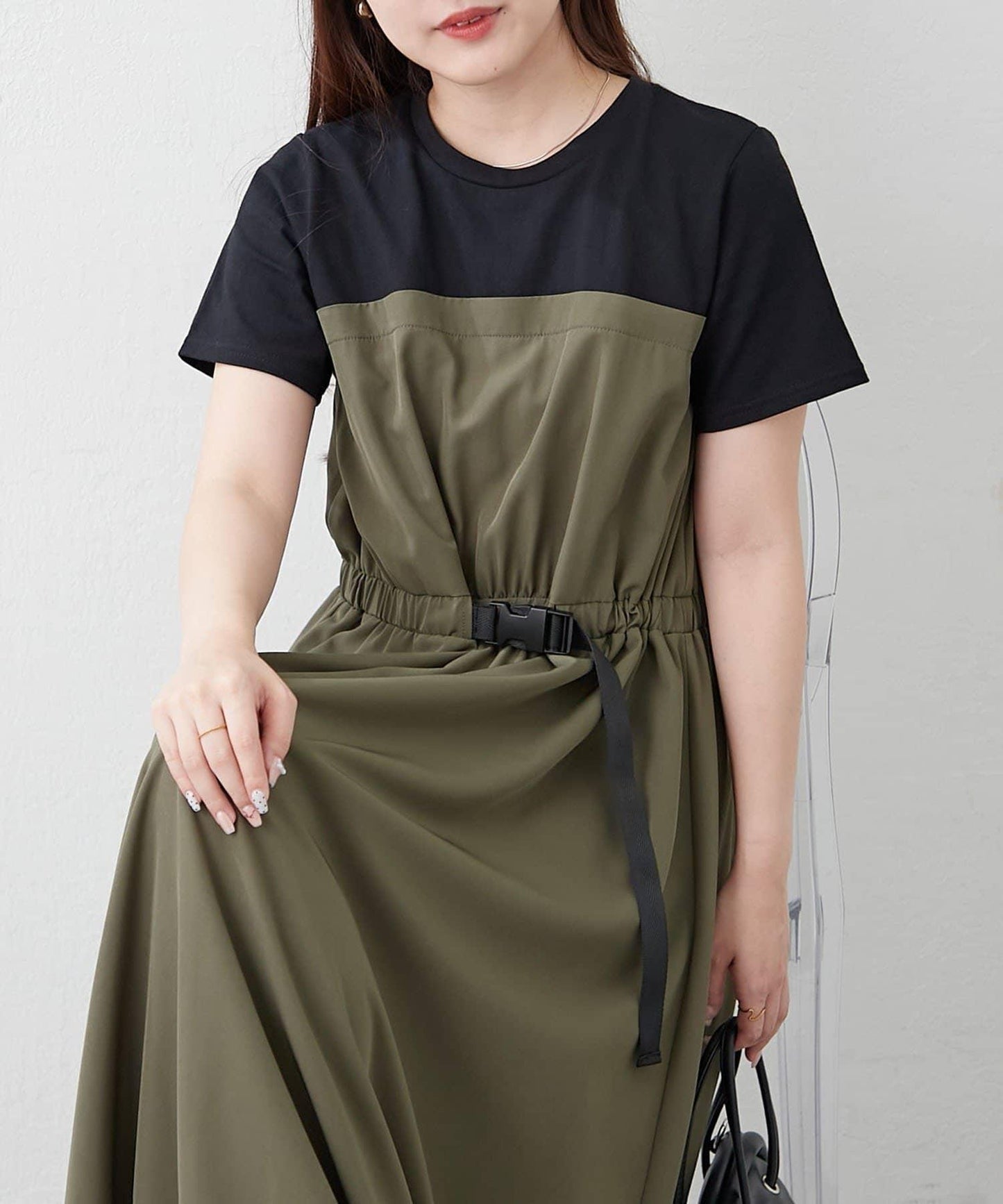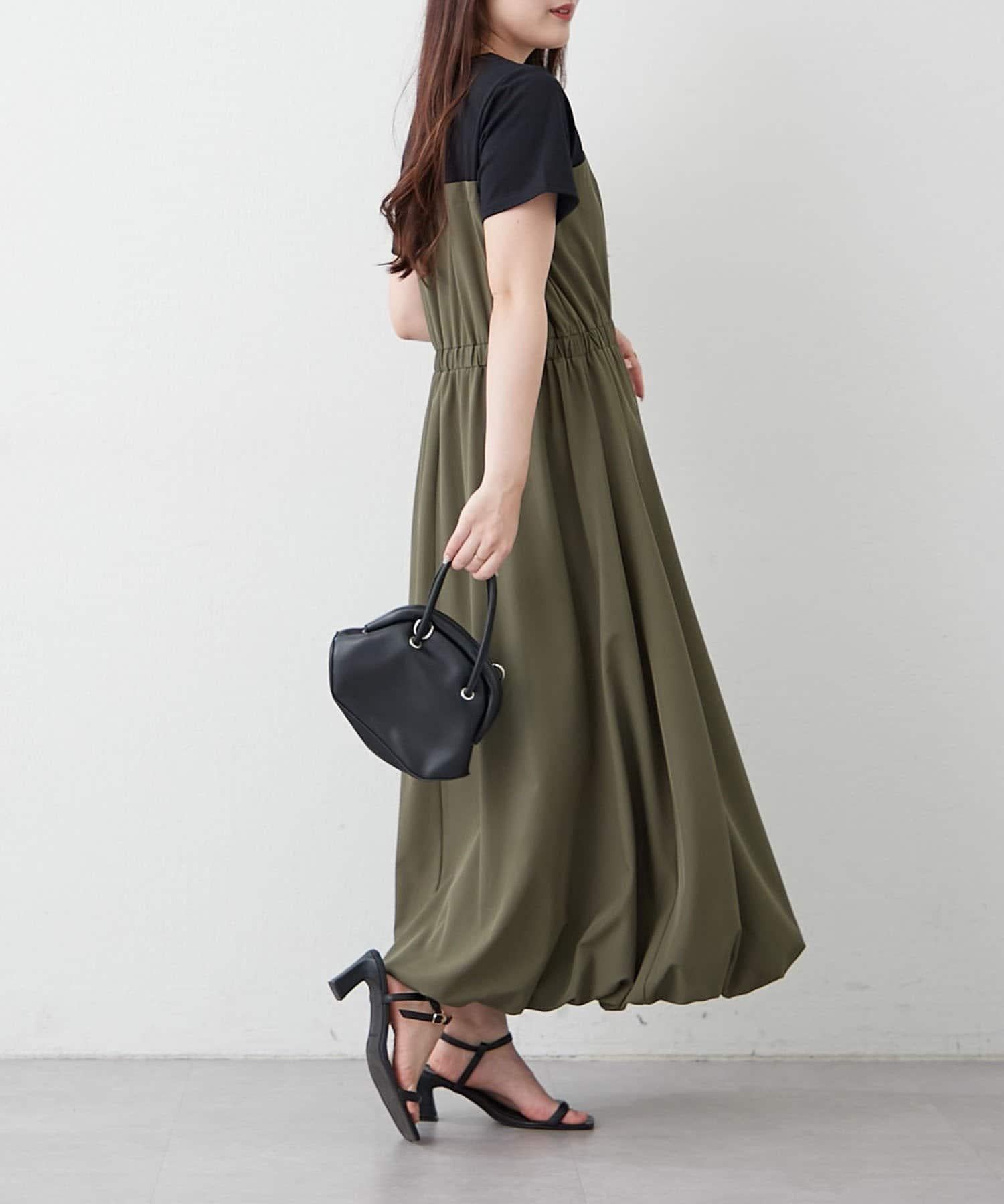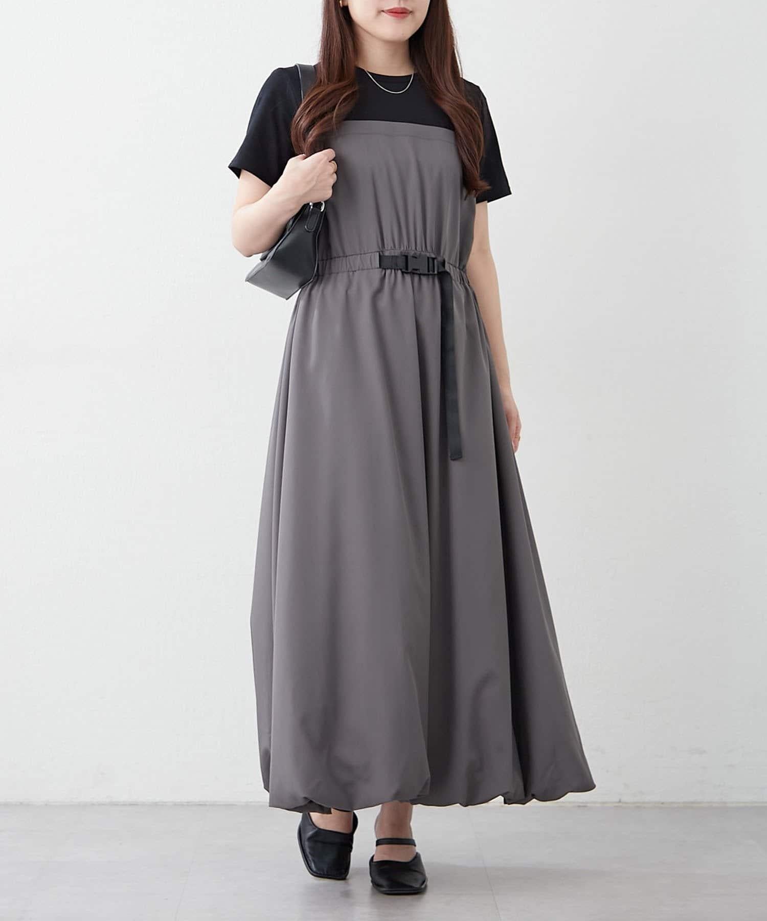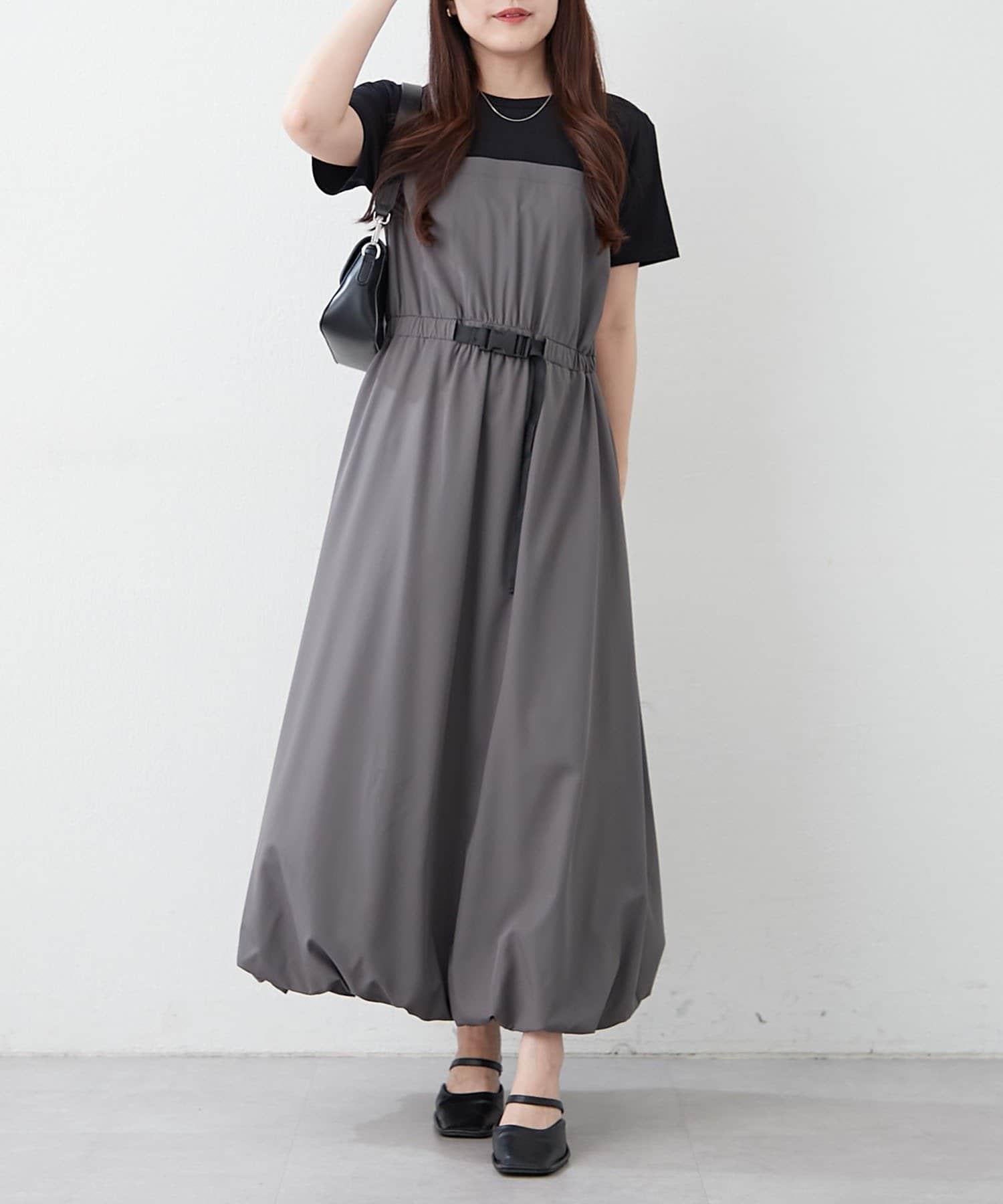 【人氣系列】帶腰帶的對接氣球連衣裙