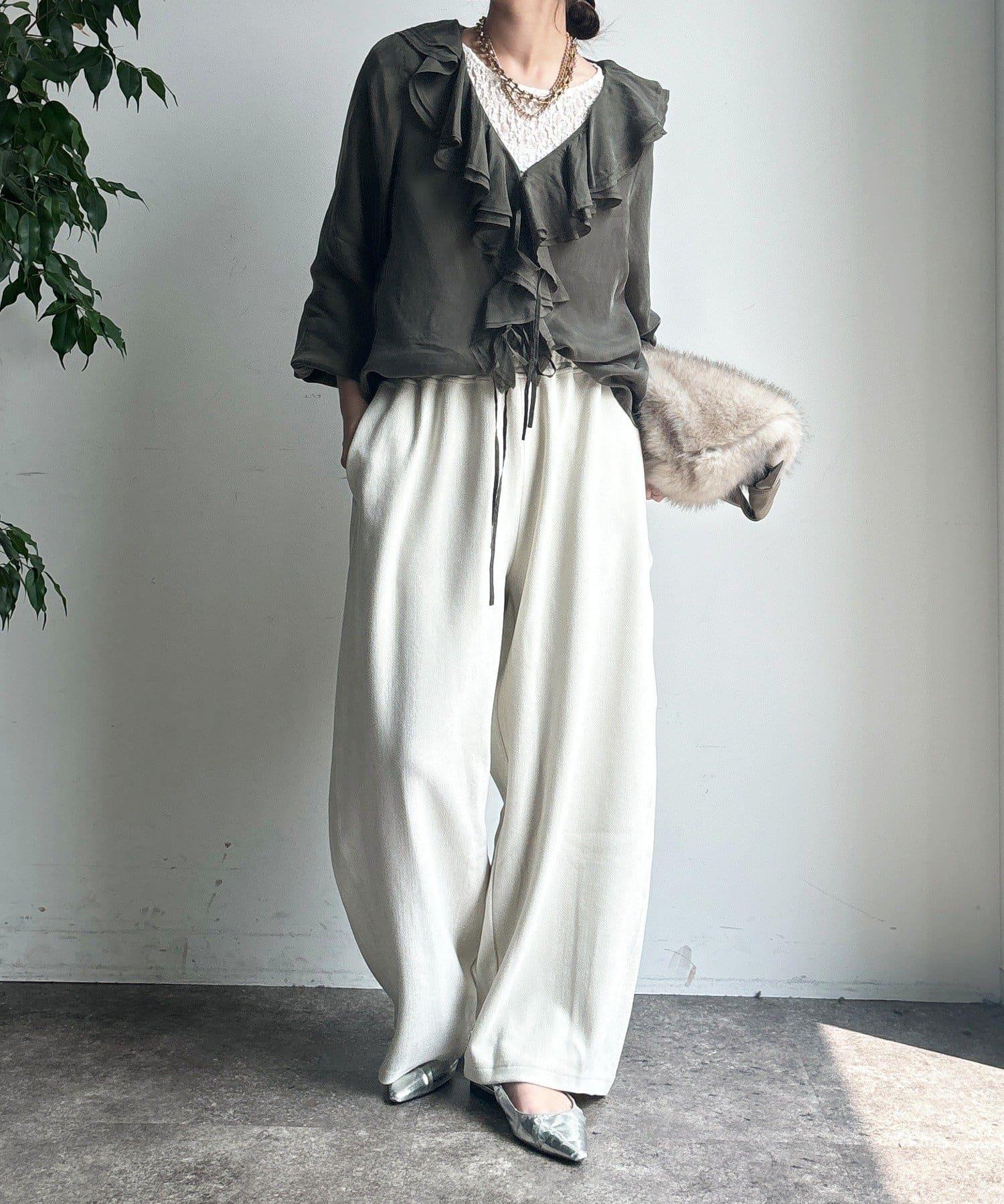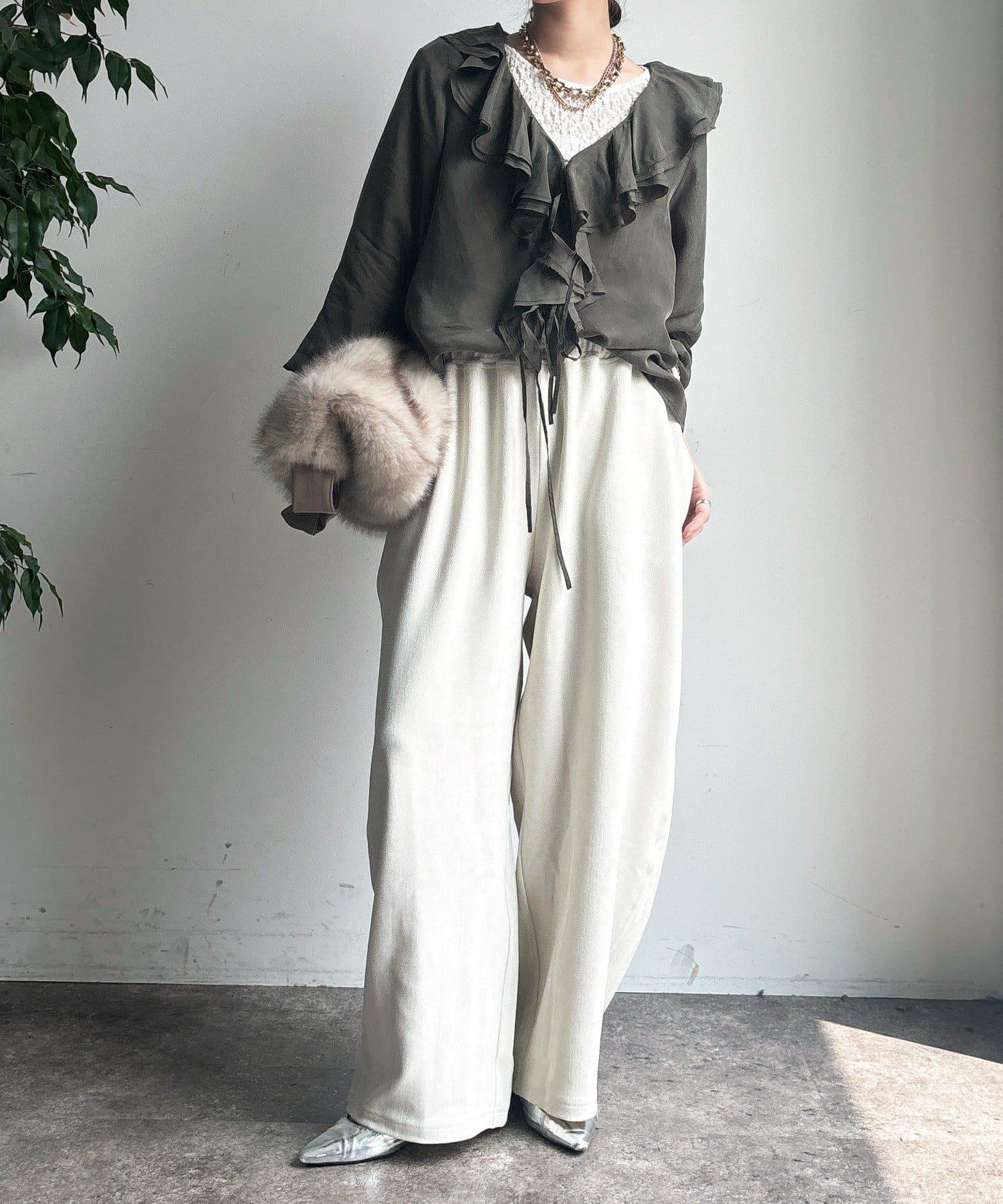 袖口採用鬆緊設計,袖子收緊時會有體積感,讓人感受到與眾不同的氛圍。