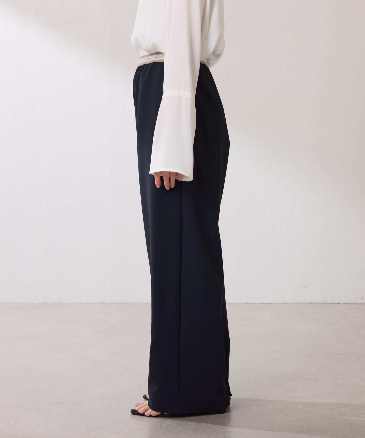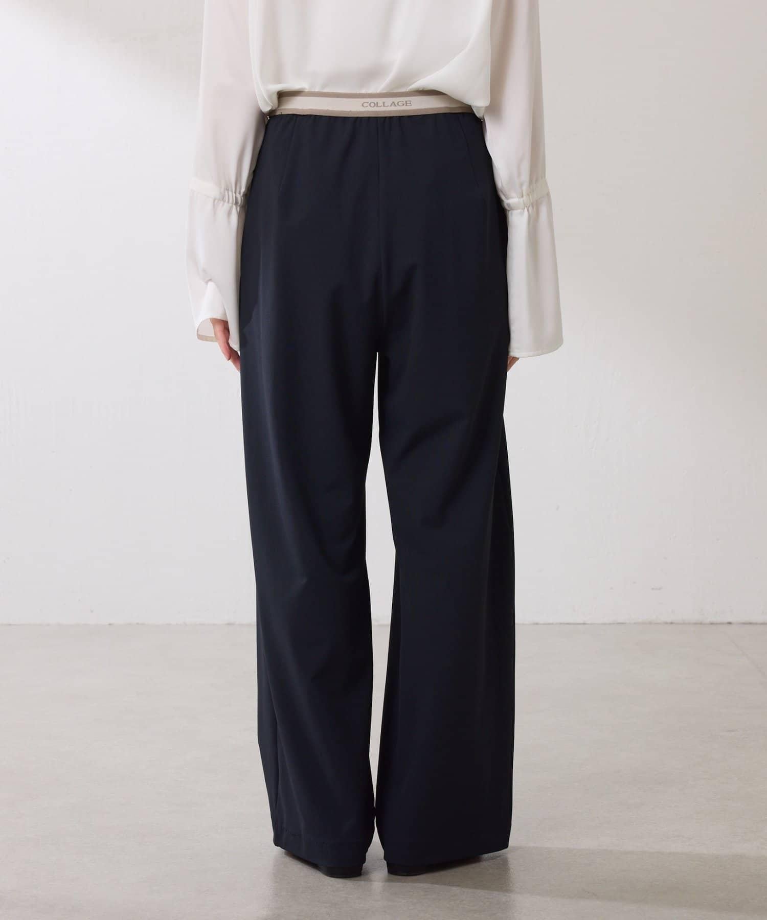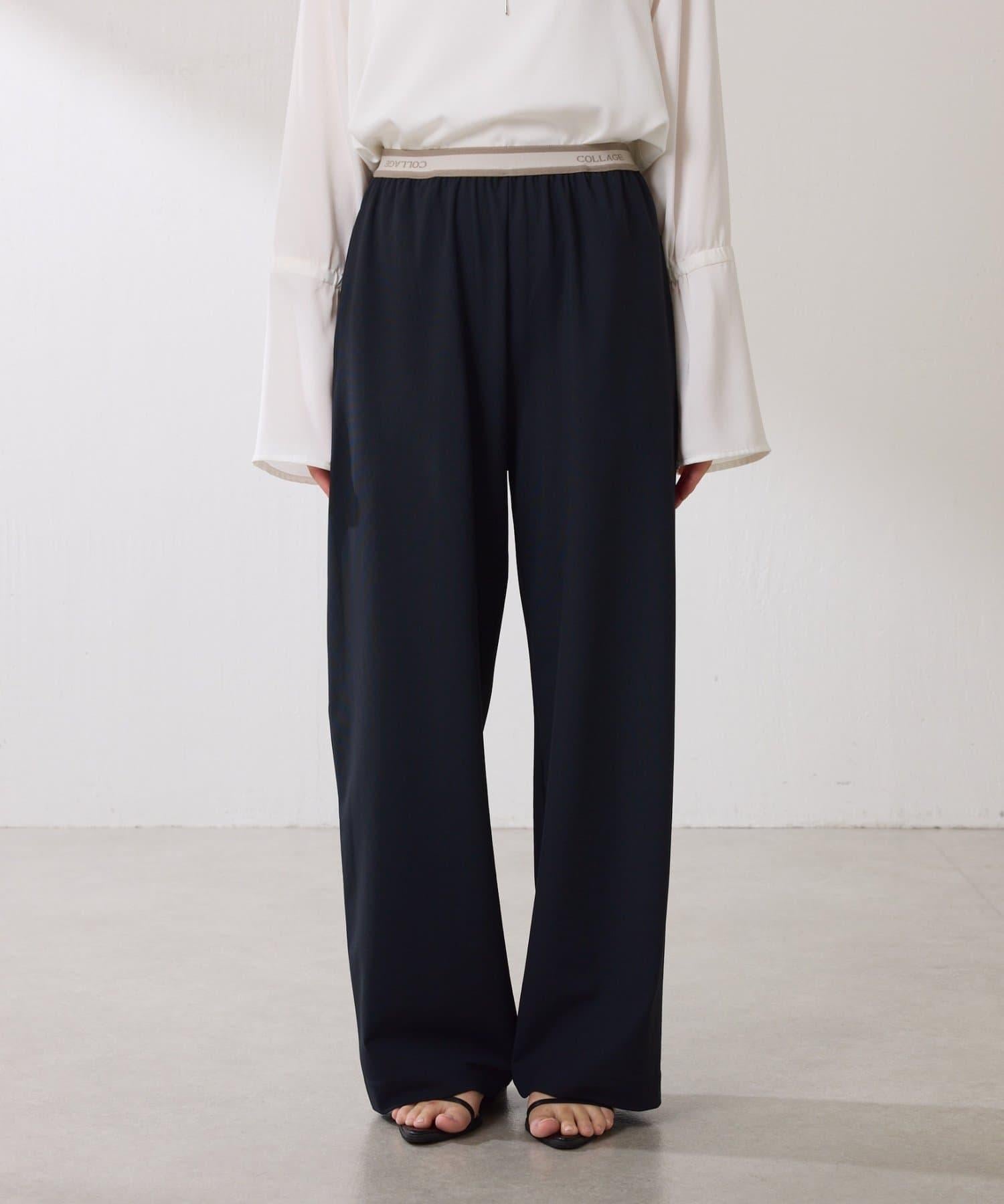 【人氣設計/腰部全鬆緊】標誌腰帶針織褲