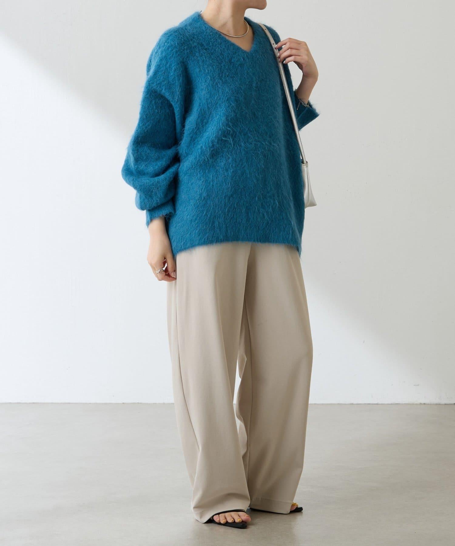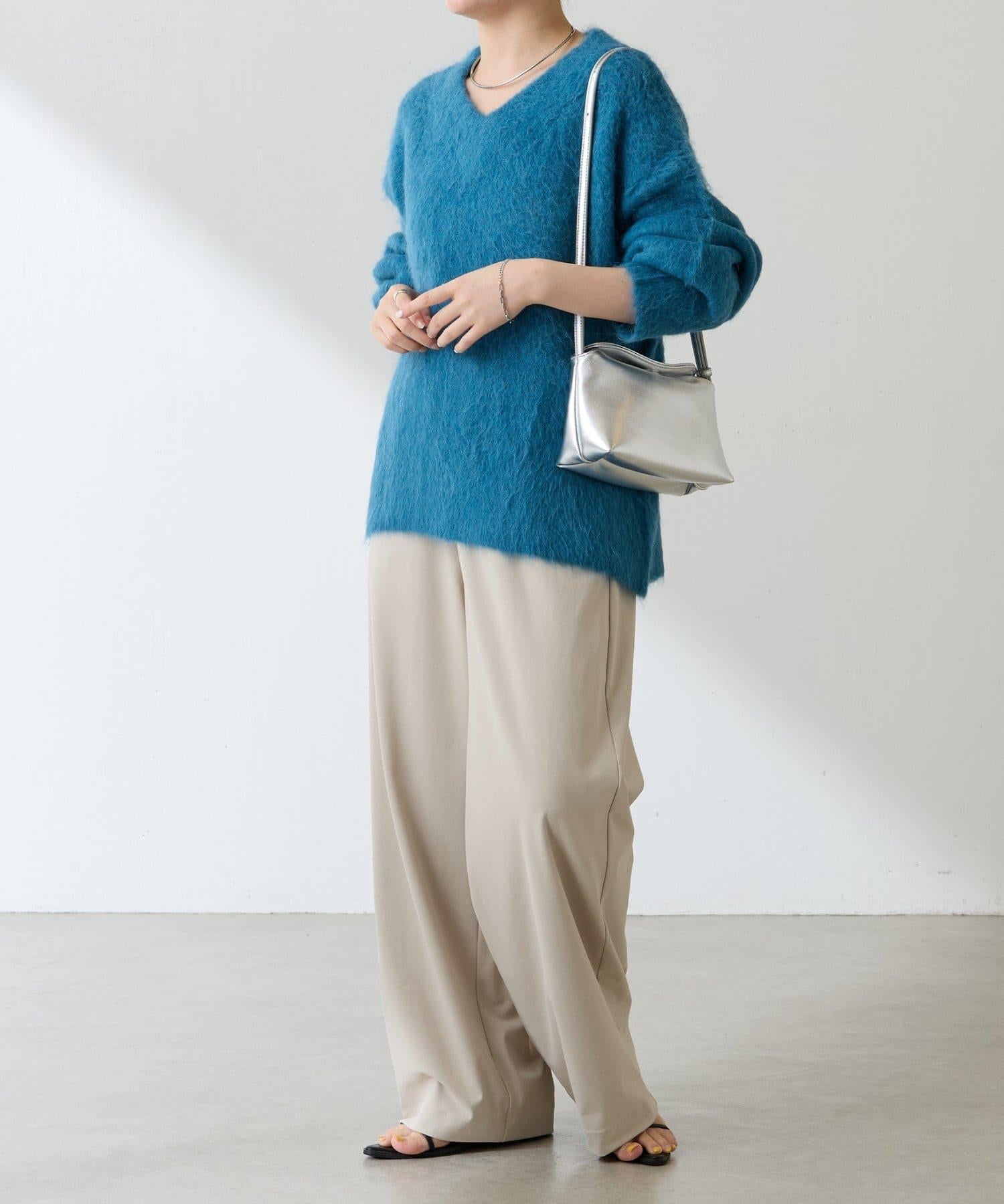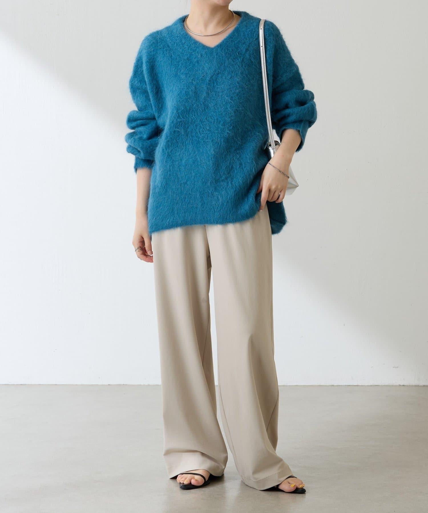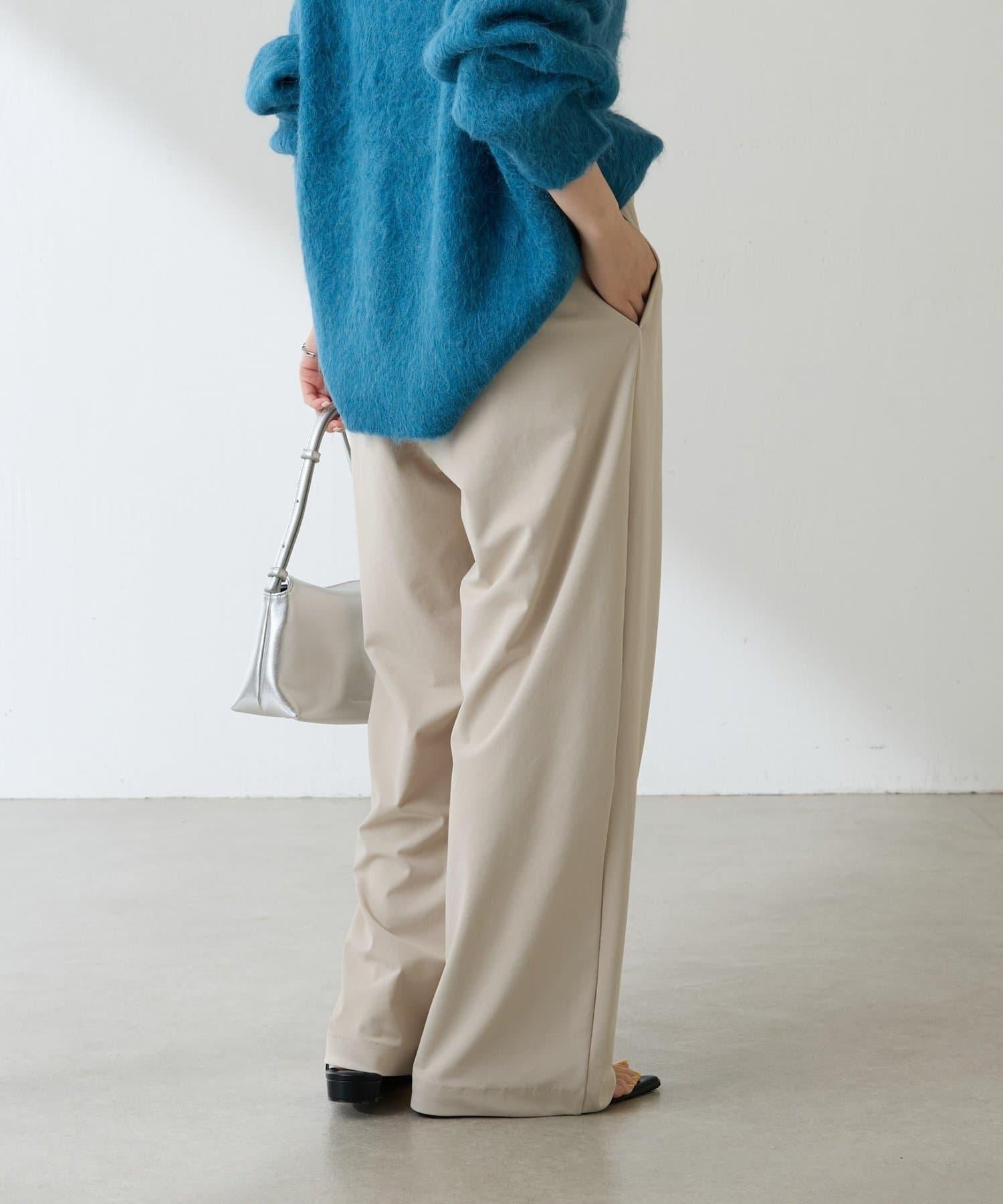 【人氣設計/腰部全鬆緊】標誌腰帶針織褲
