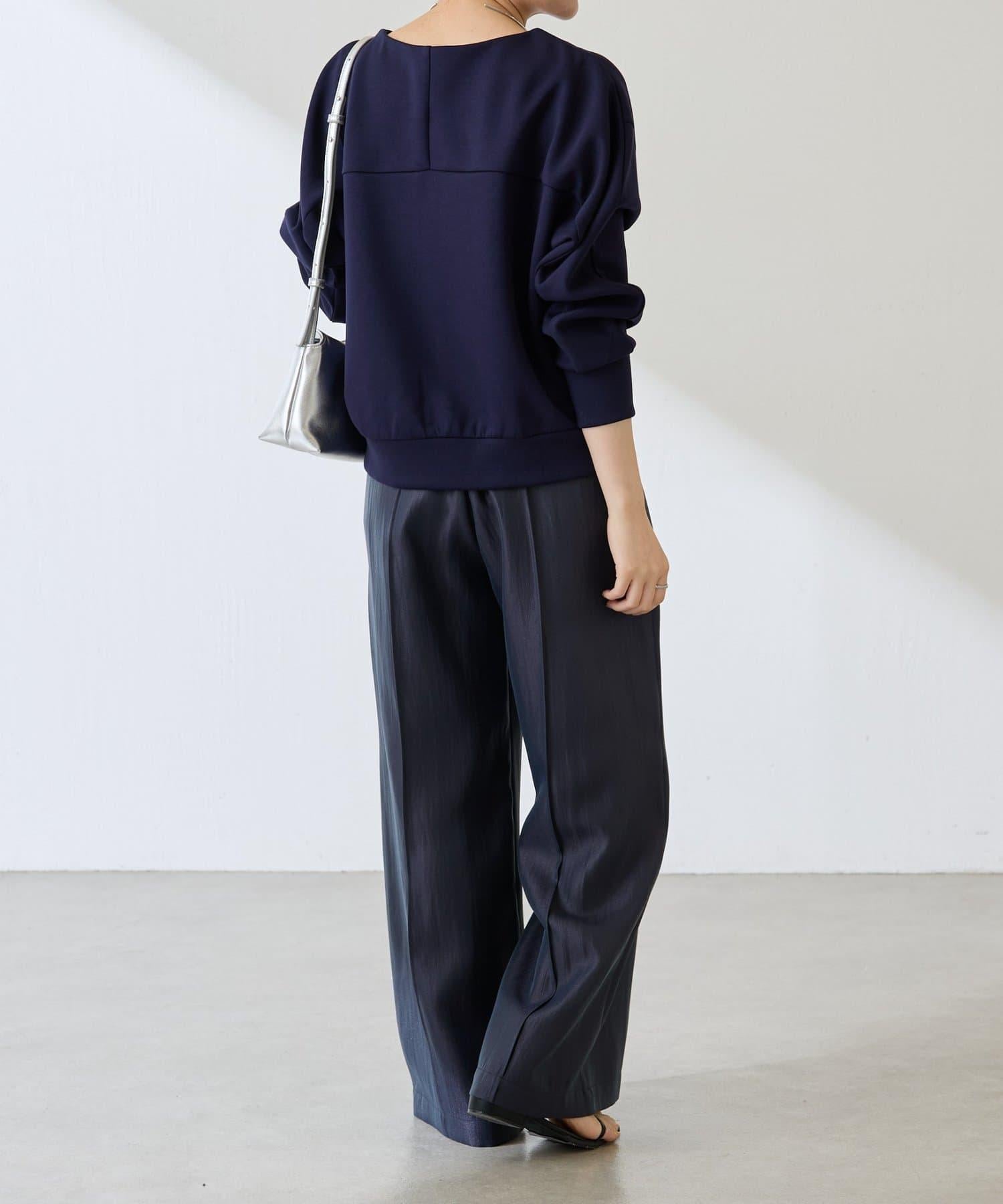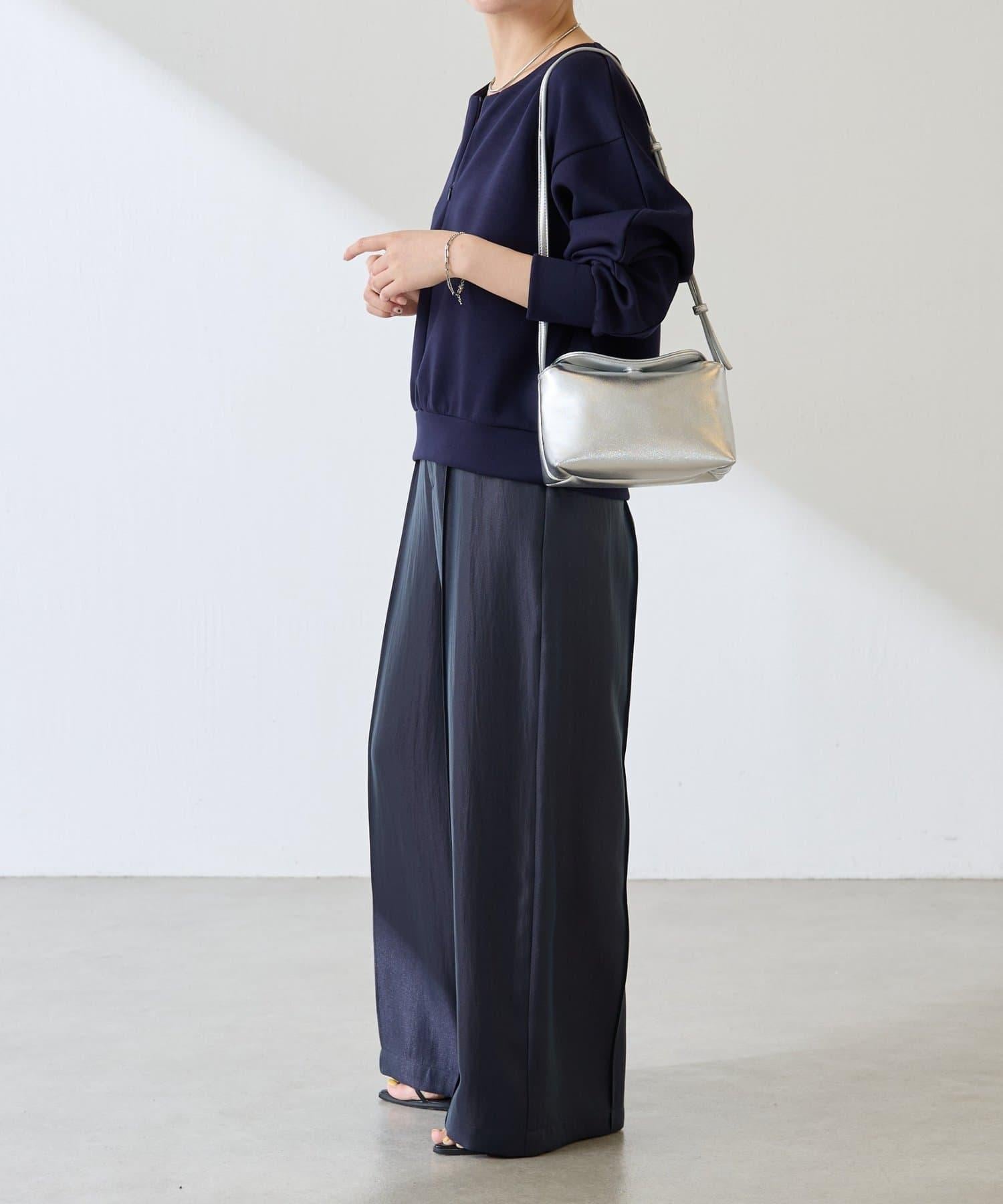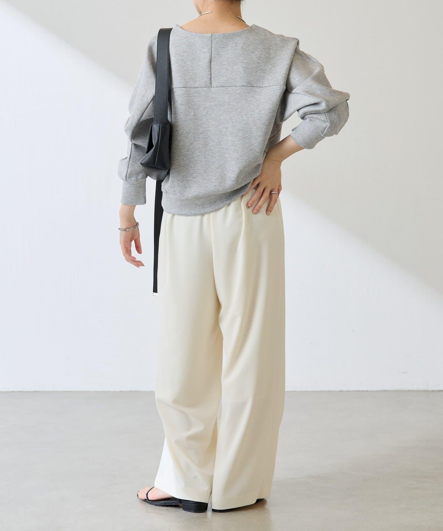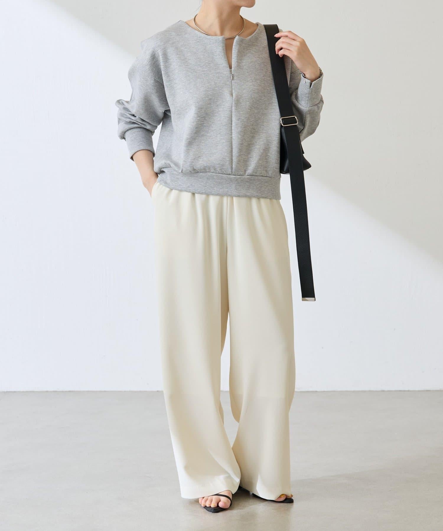 搭配中間壓線的寬大長褲時,將胸前的拉鍊稍稍拉開,即可完成帥氣造型。