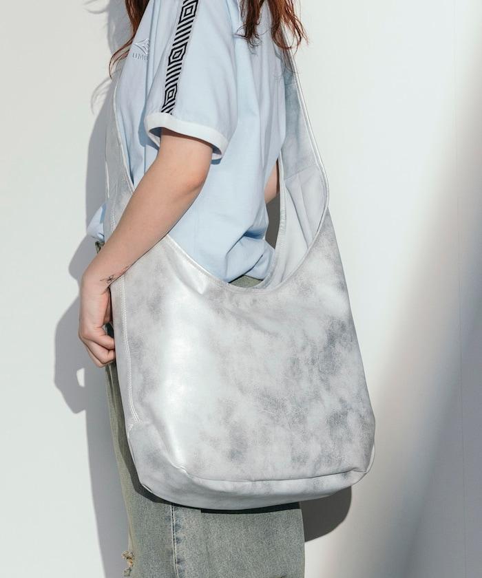 合成皮革配以牛仔布風格印花,是簡約搭配的完美之選。