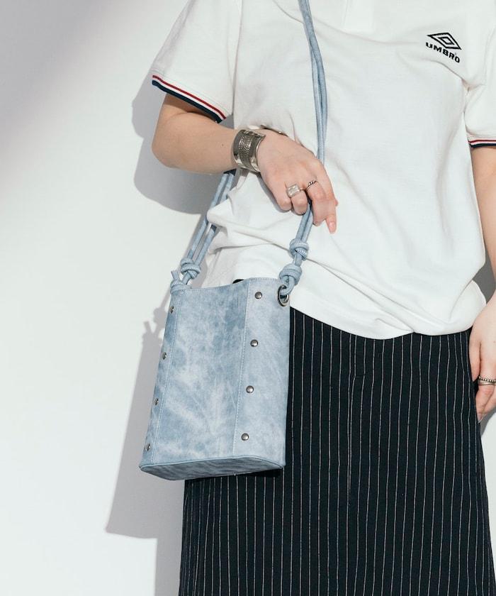 合成皮革配以牛仔布風格印花,是簡約搭配的完美之選。