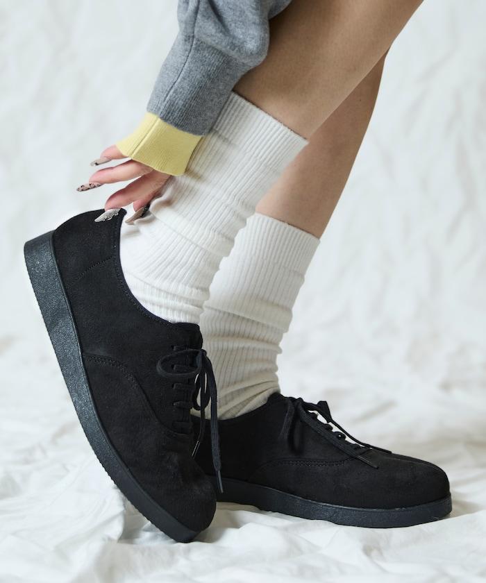 皮革麂皮平底鞋