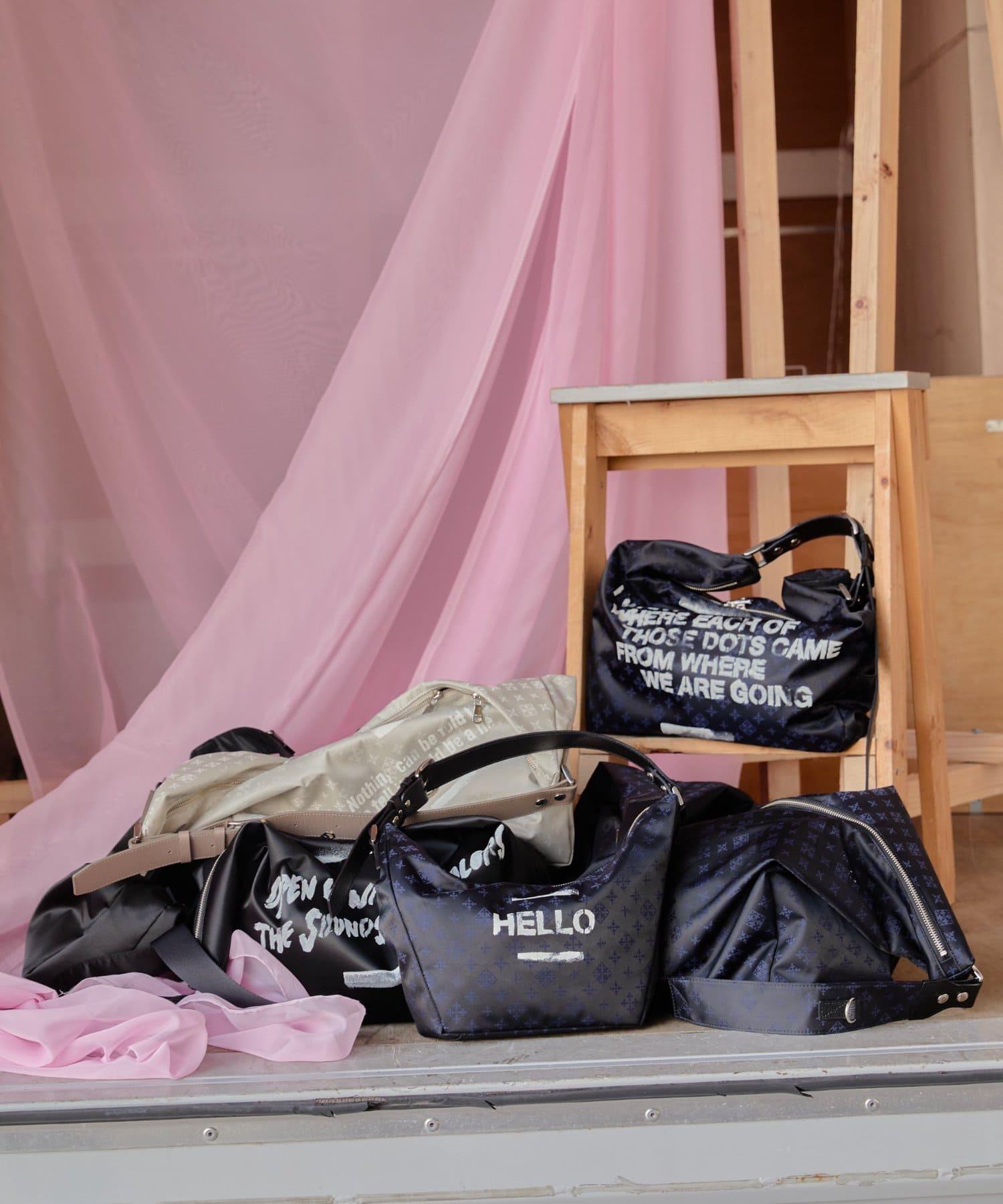 在一款深受歡迎的赤褐色雙肩包上,印上了森谷勉(Tsutomu Moriya)的特別設計,森谷勉主要從事模板藝術創作。