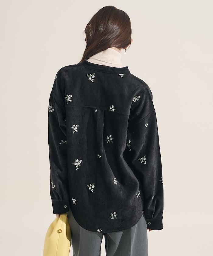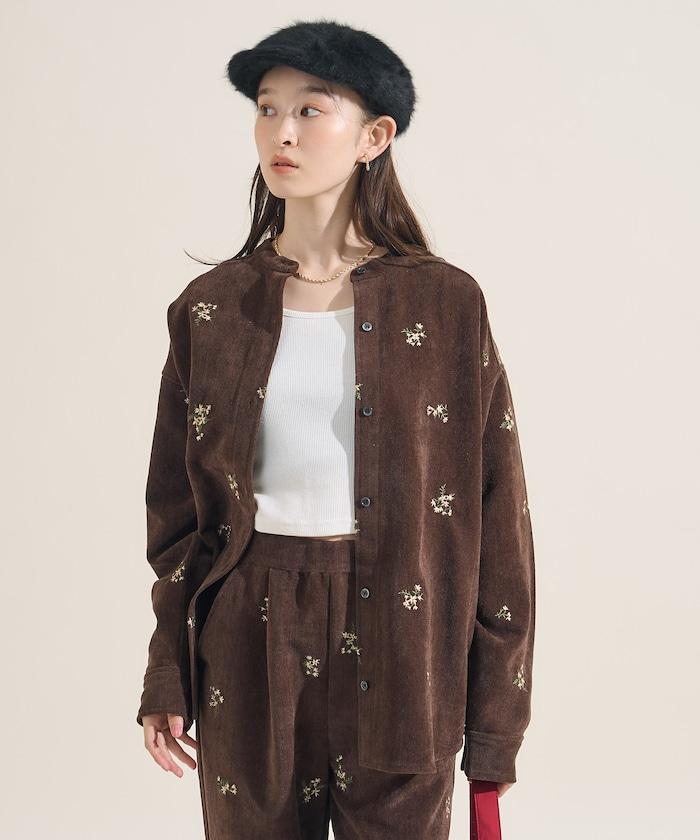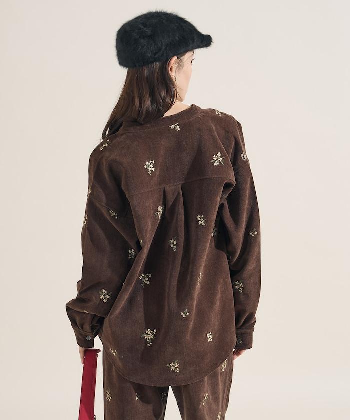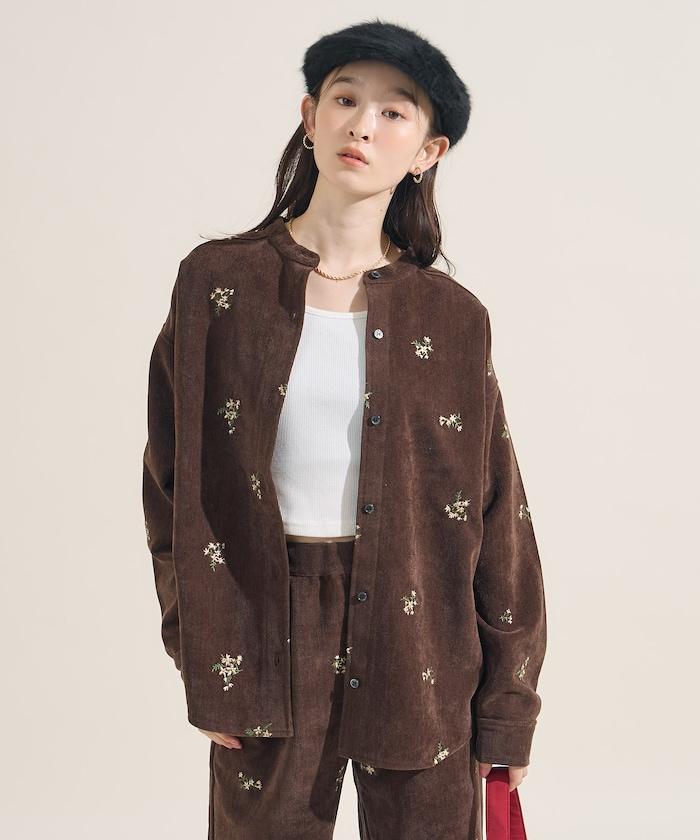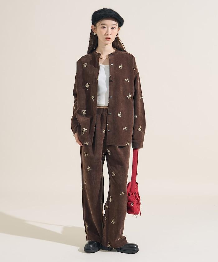 仿天鵝絨平紋燈芯絨小花圖案襯衫<可搭配套裝>