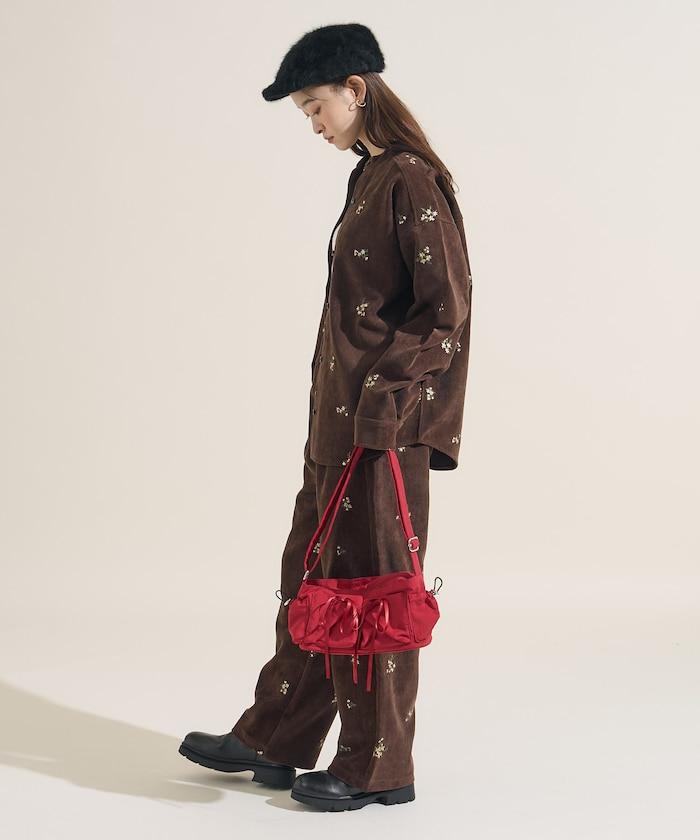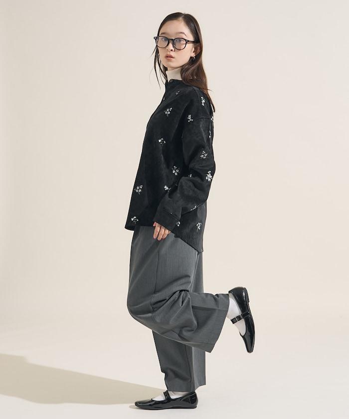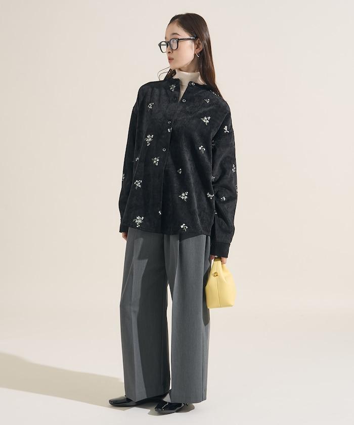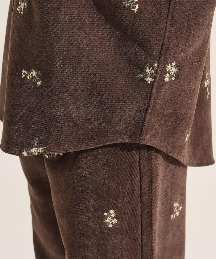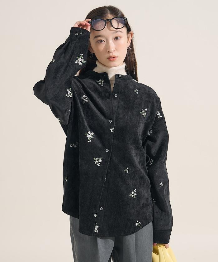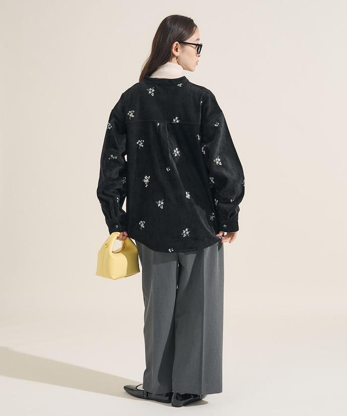 仿天鵝絨平紋燈芯絨小花圖案襯衫<可搭配套裝>