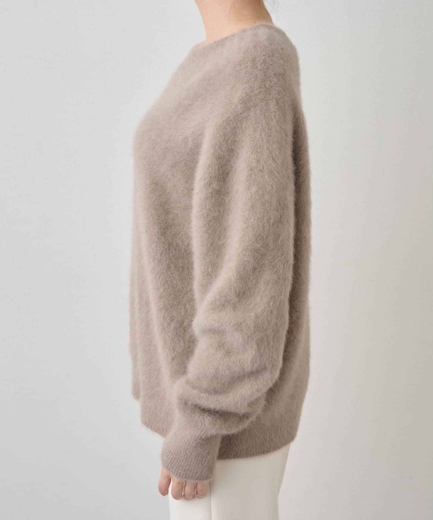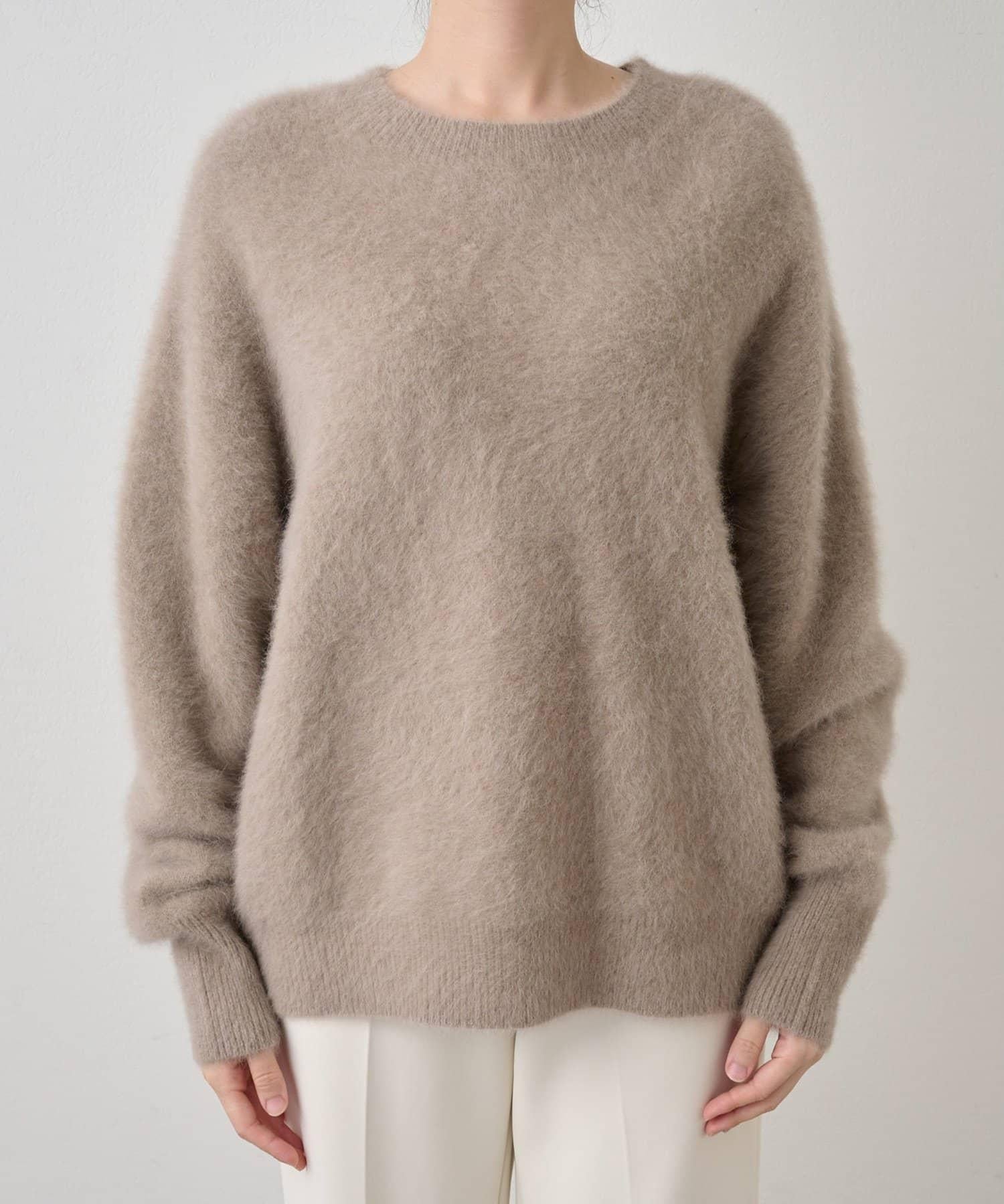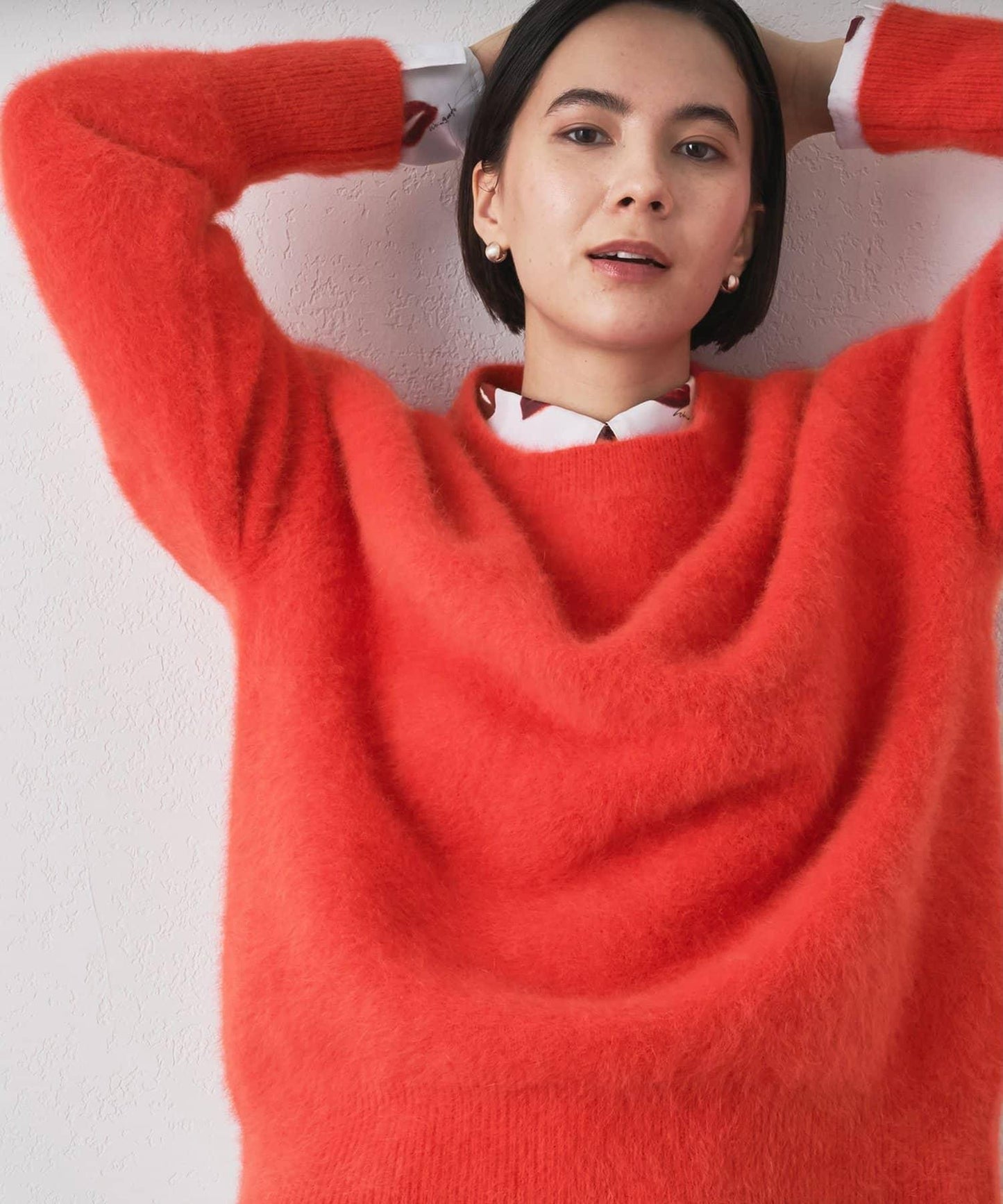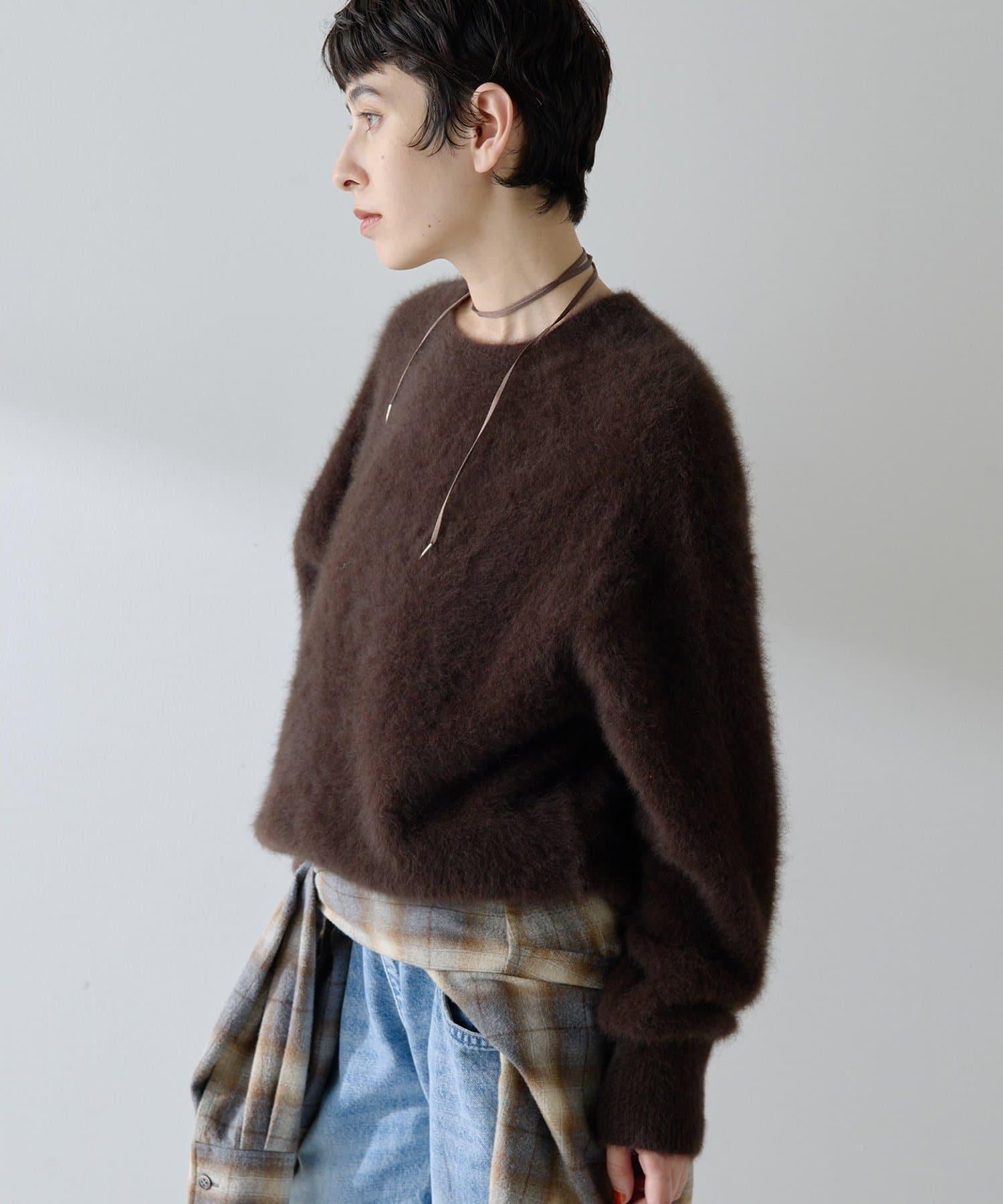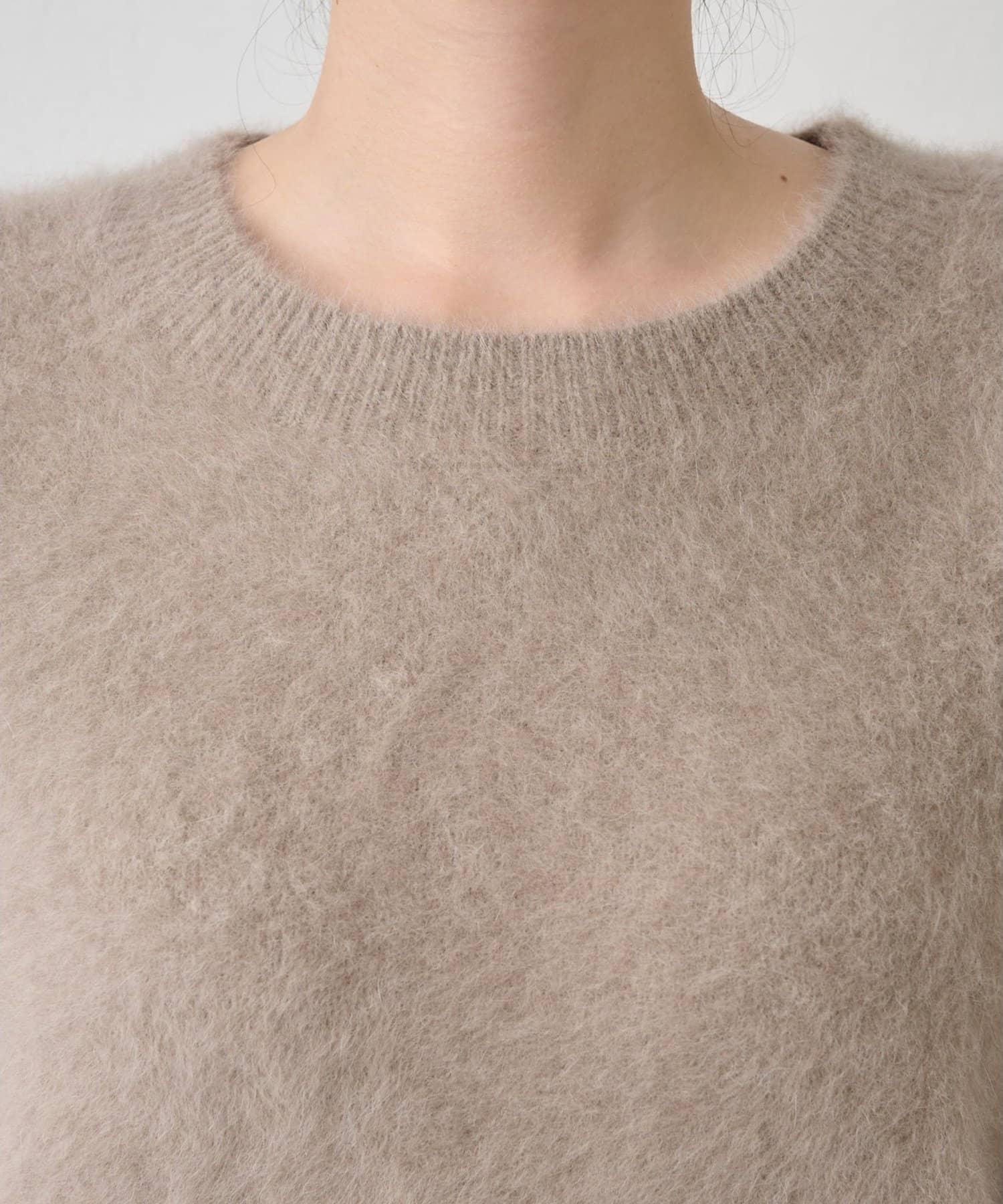 這款圓領針織衫具有蓬鬆的毛皮質感。