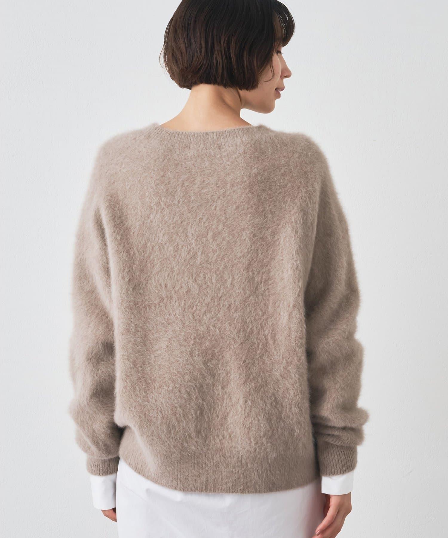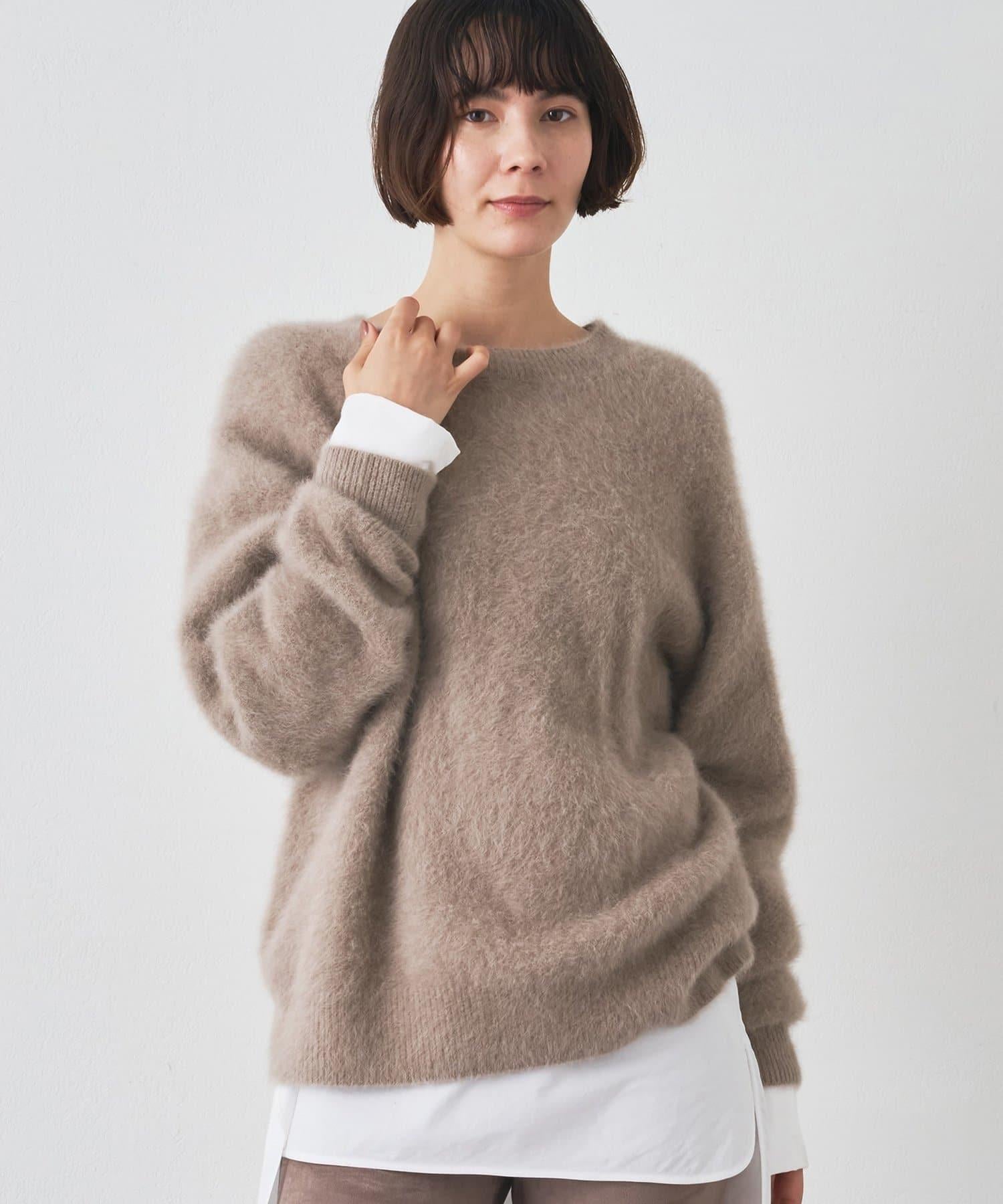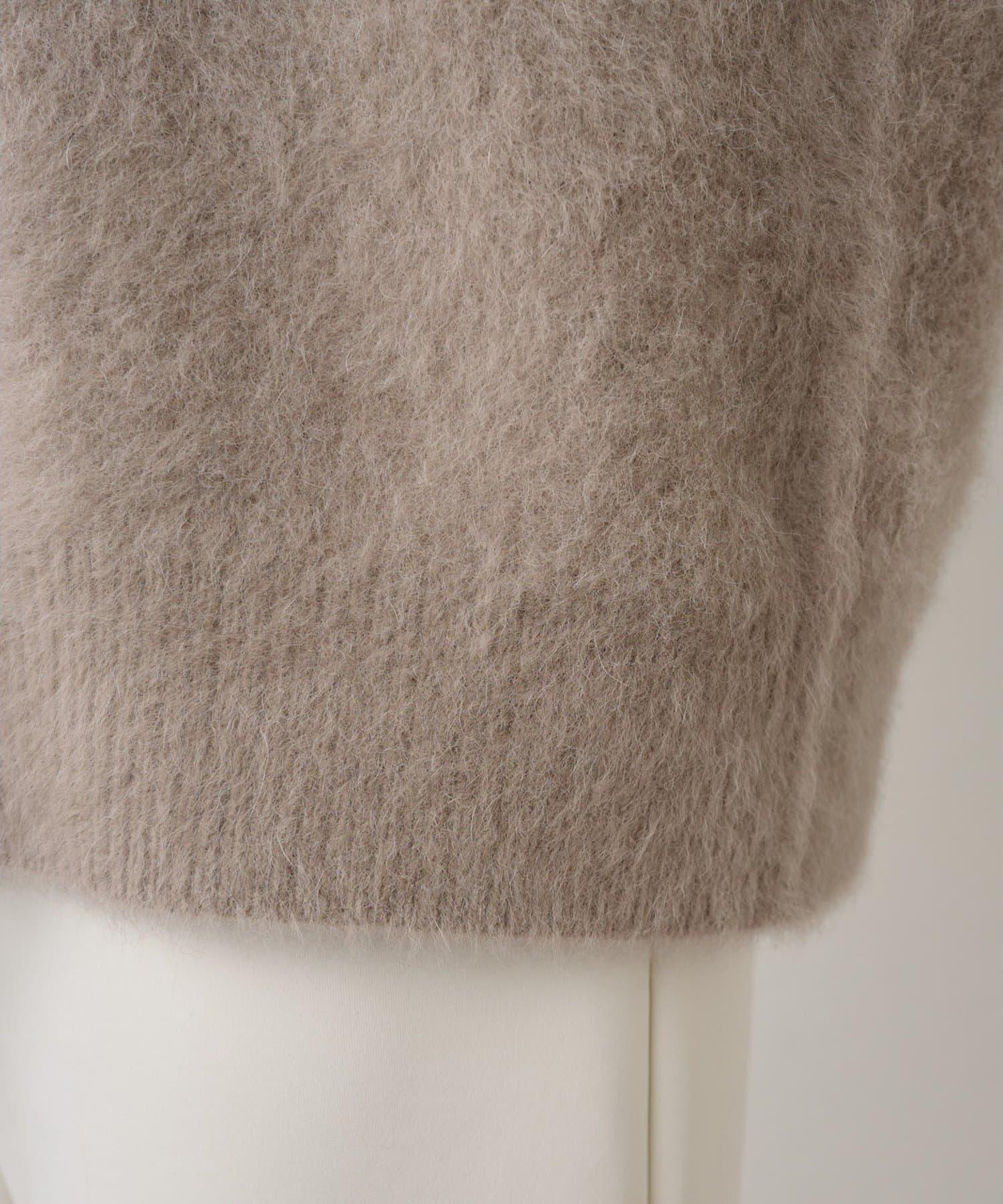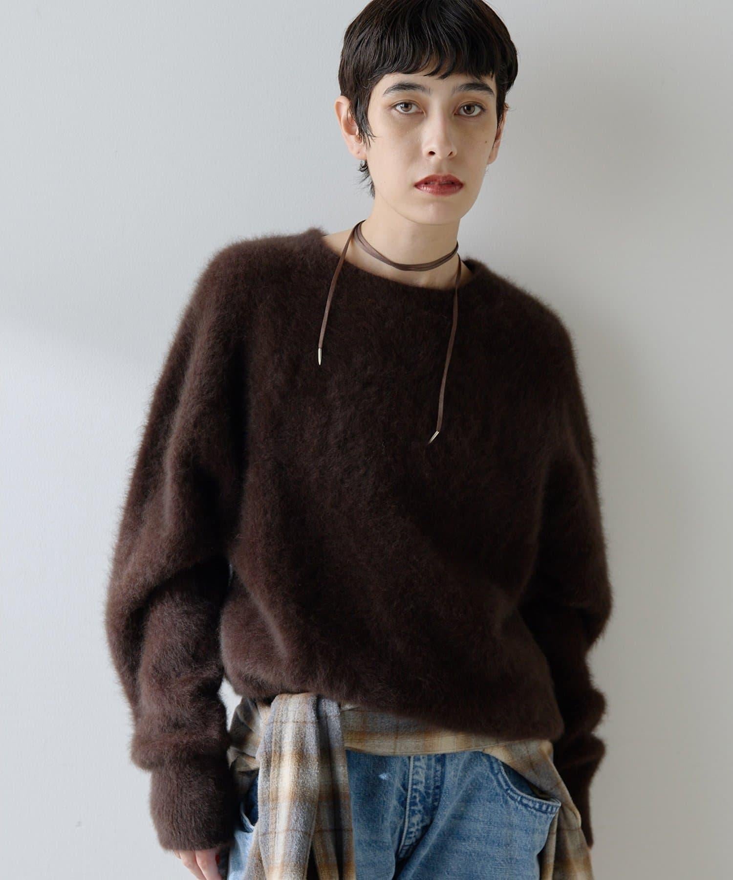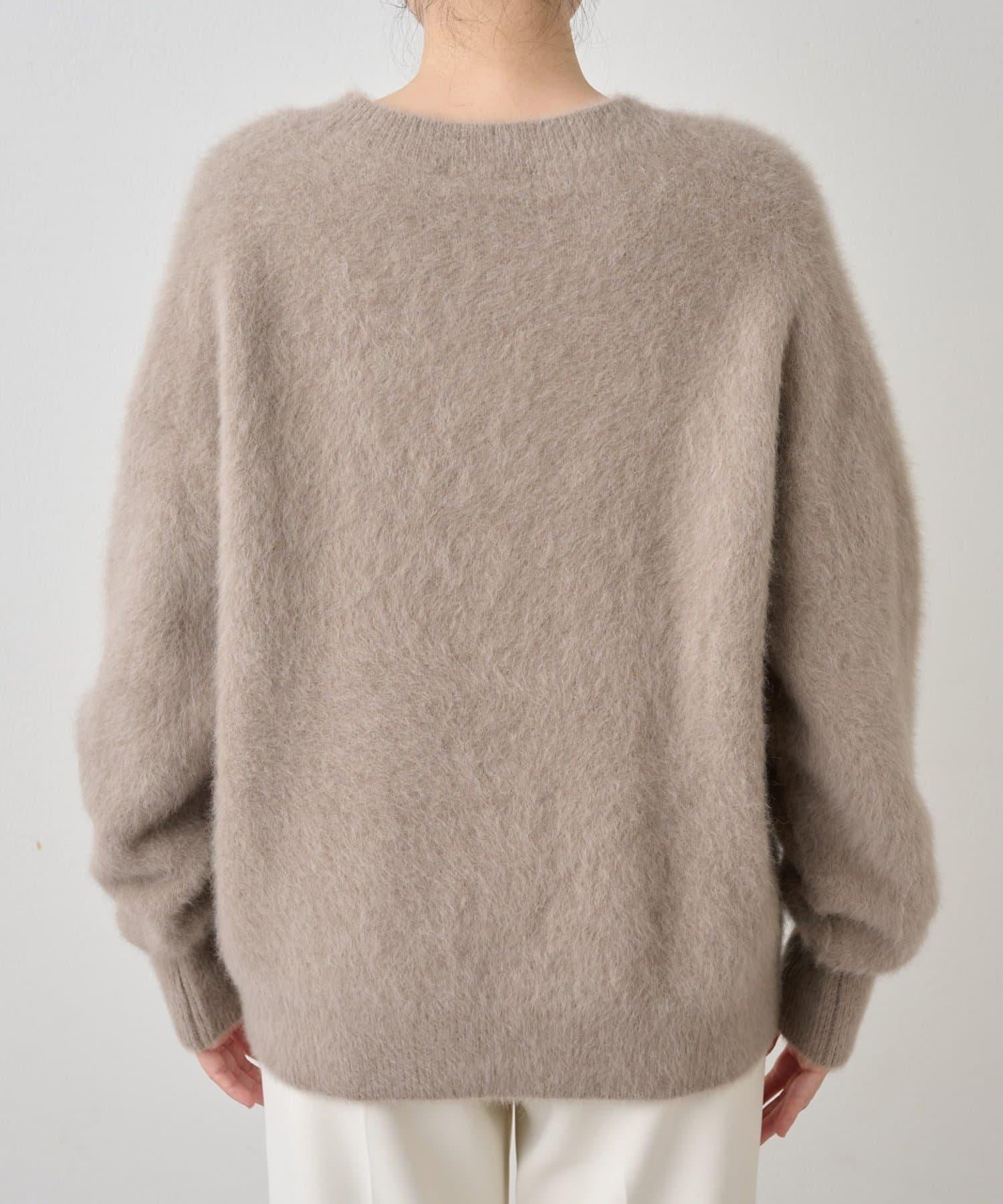 這款圓領針織衫具有蓬鬆的毛皮質感。
