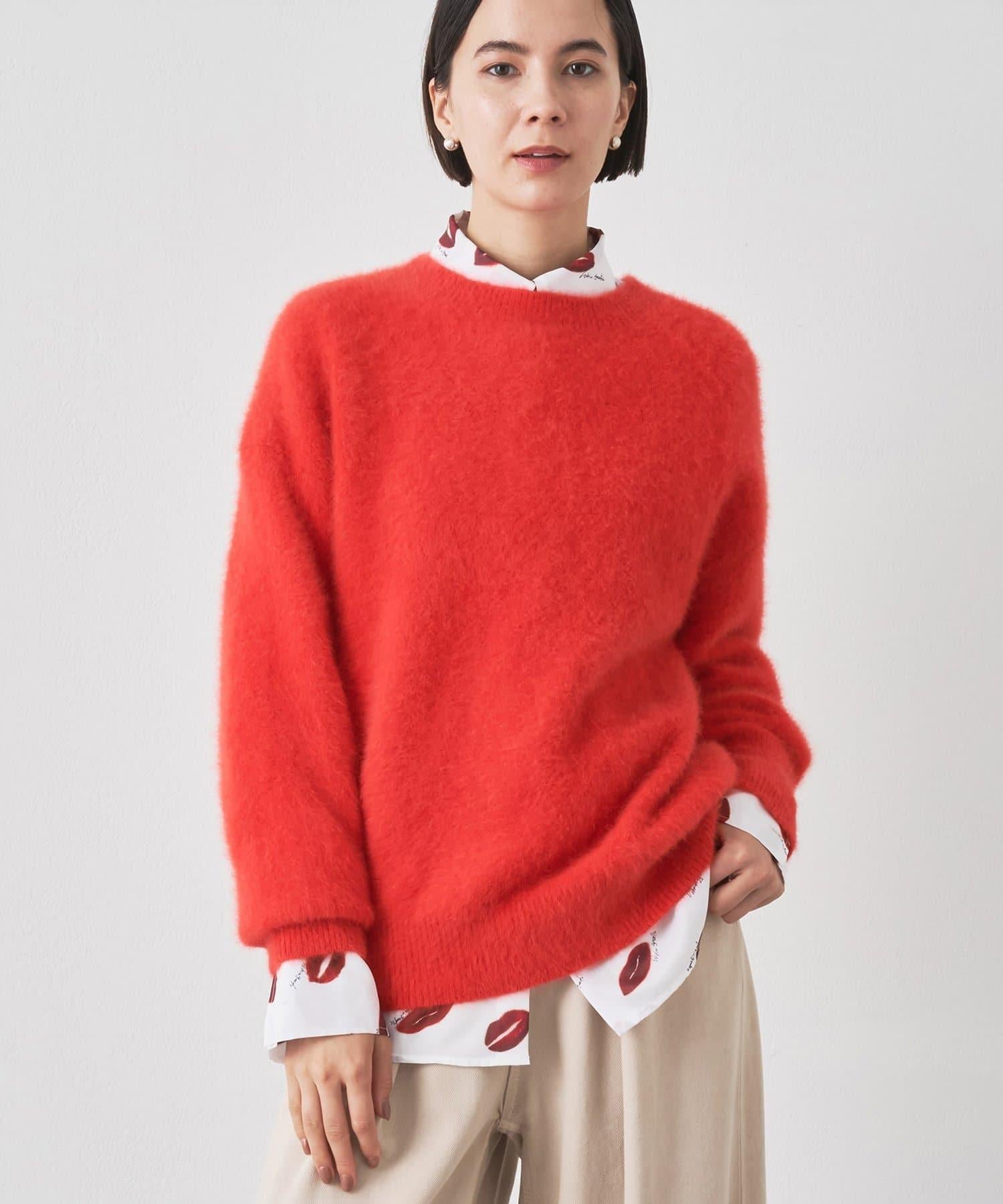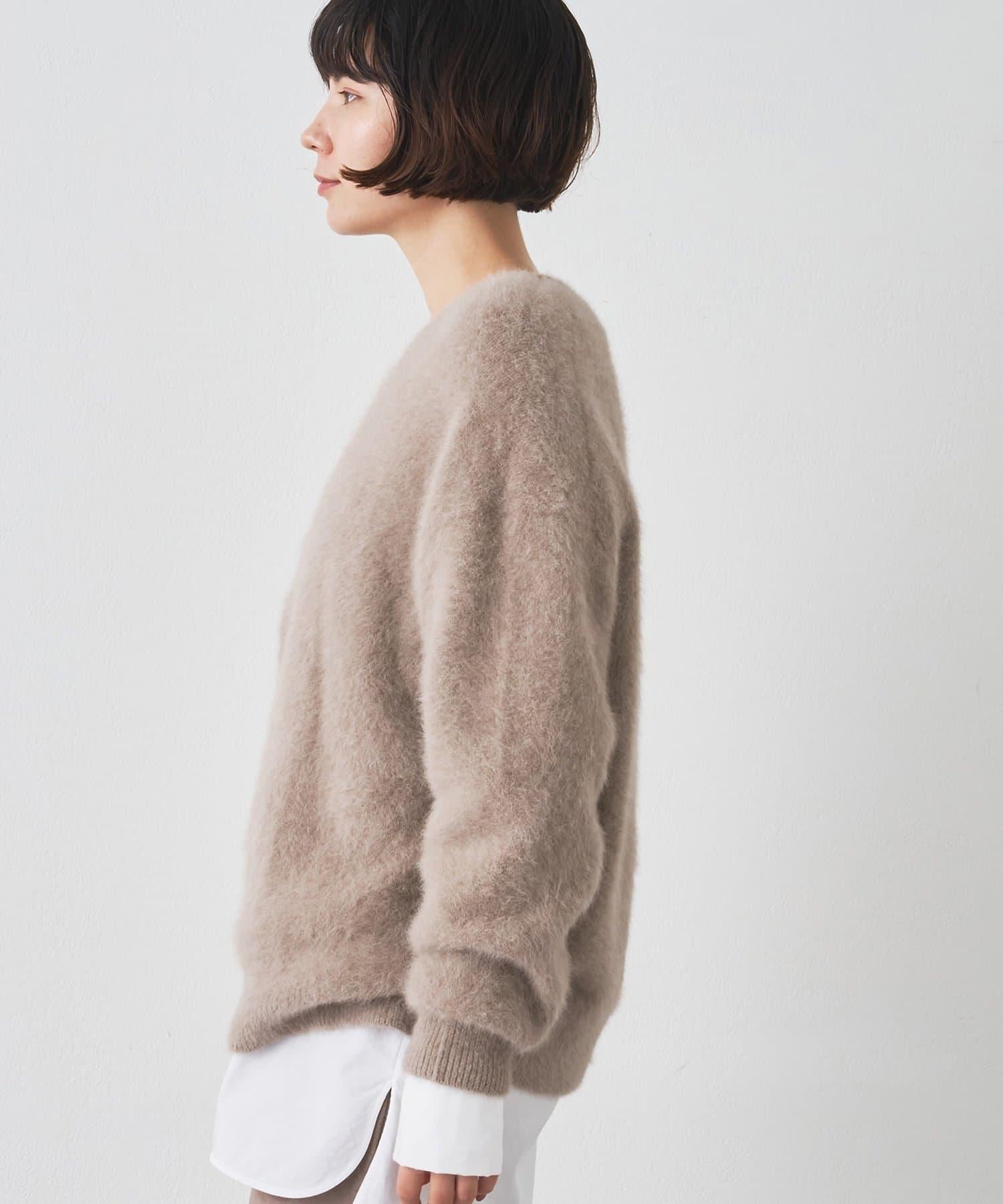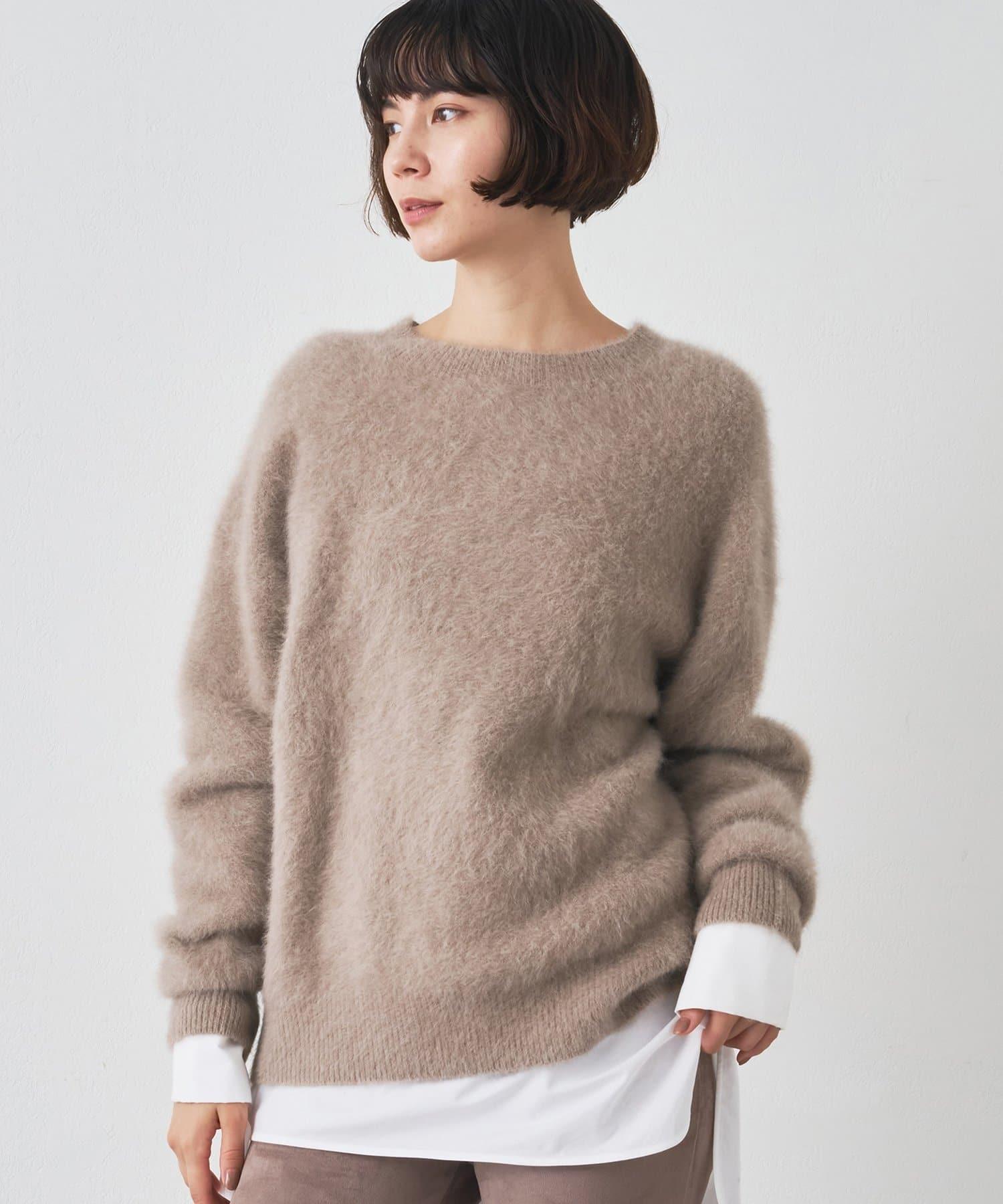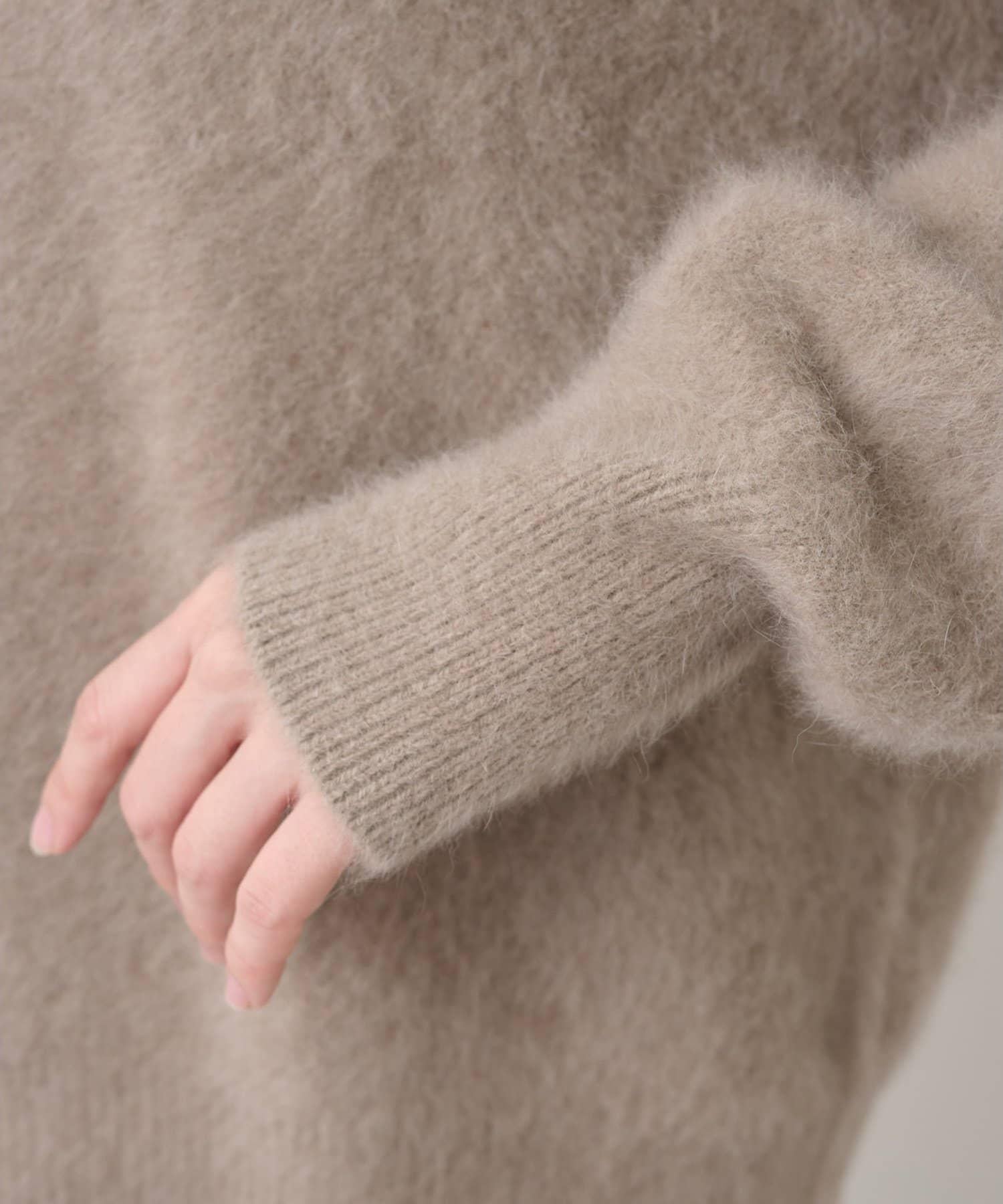 這款圓領針織衫具有蓬鬆的毛皮質感。