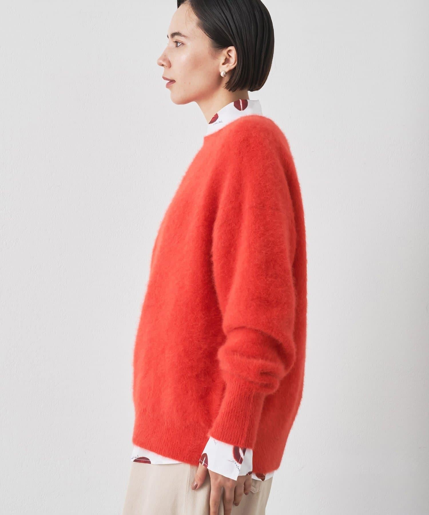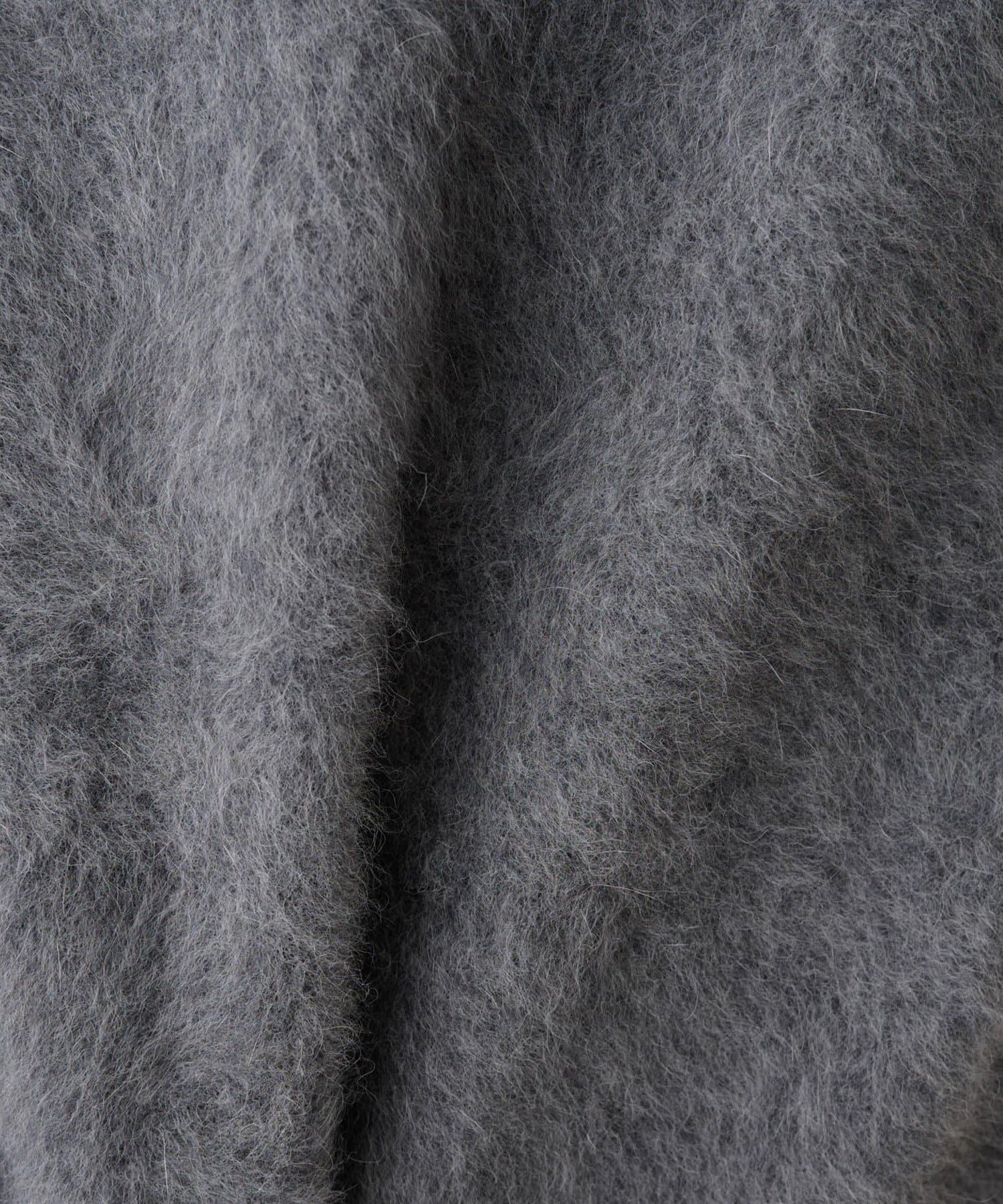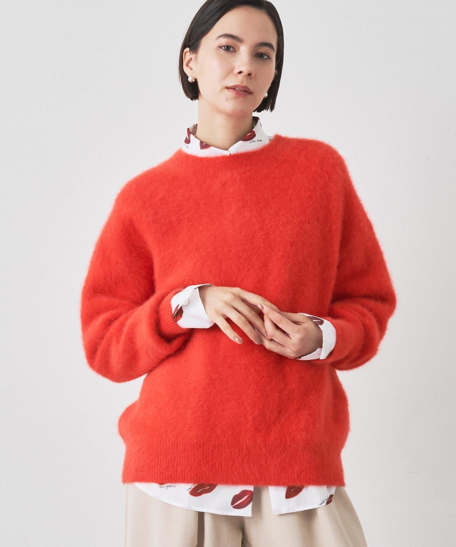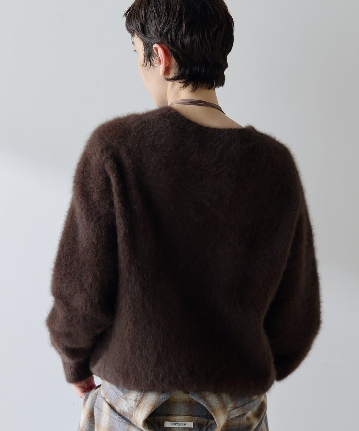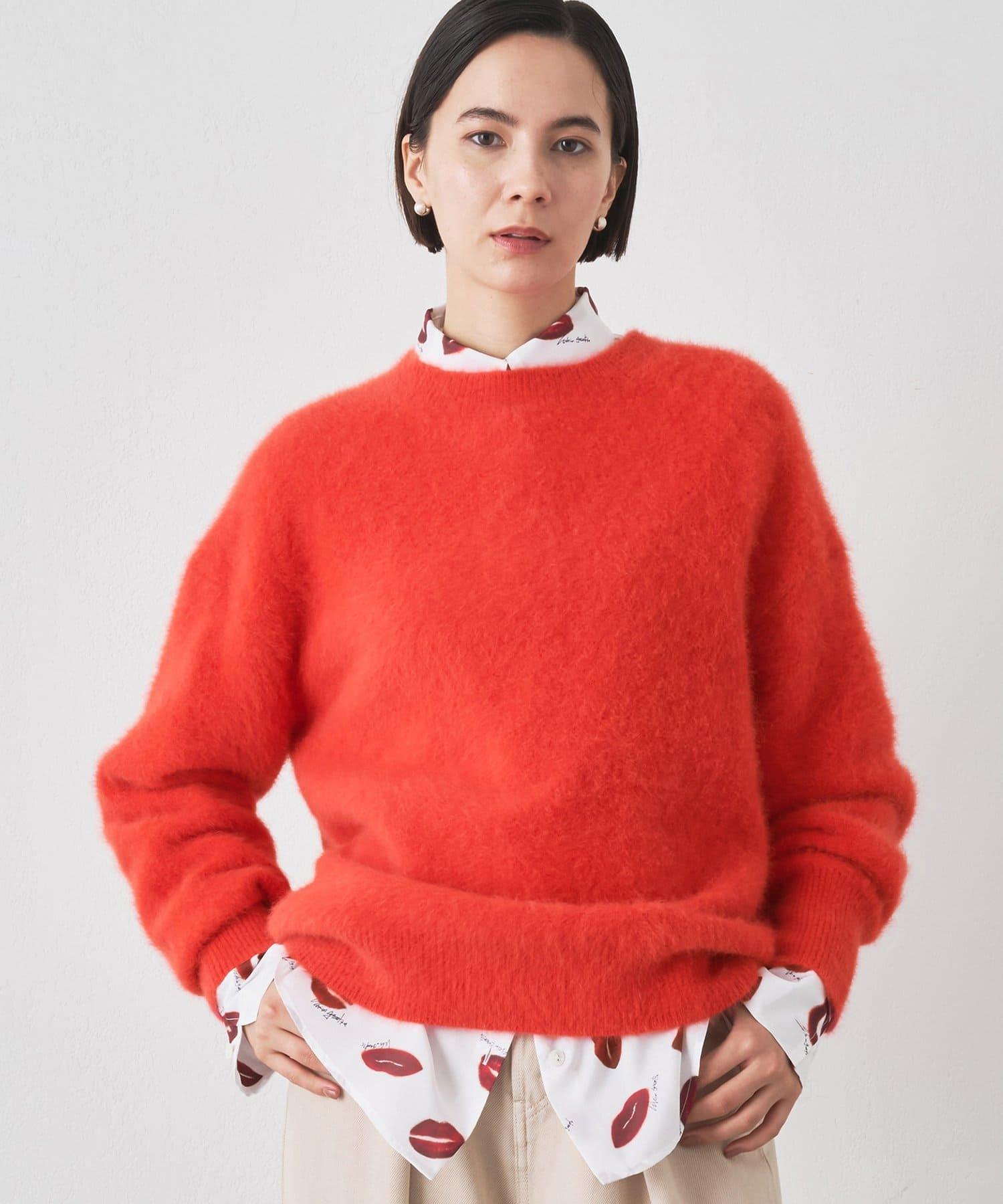 這款圓領針織衫具有蓬鬆的毛皮質感。