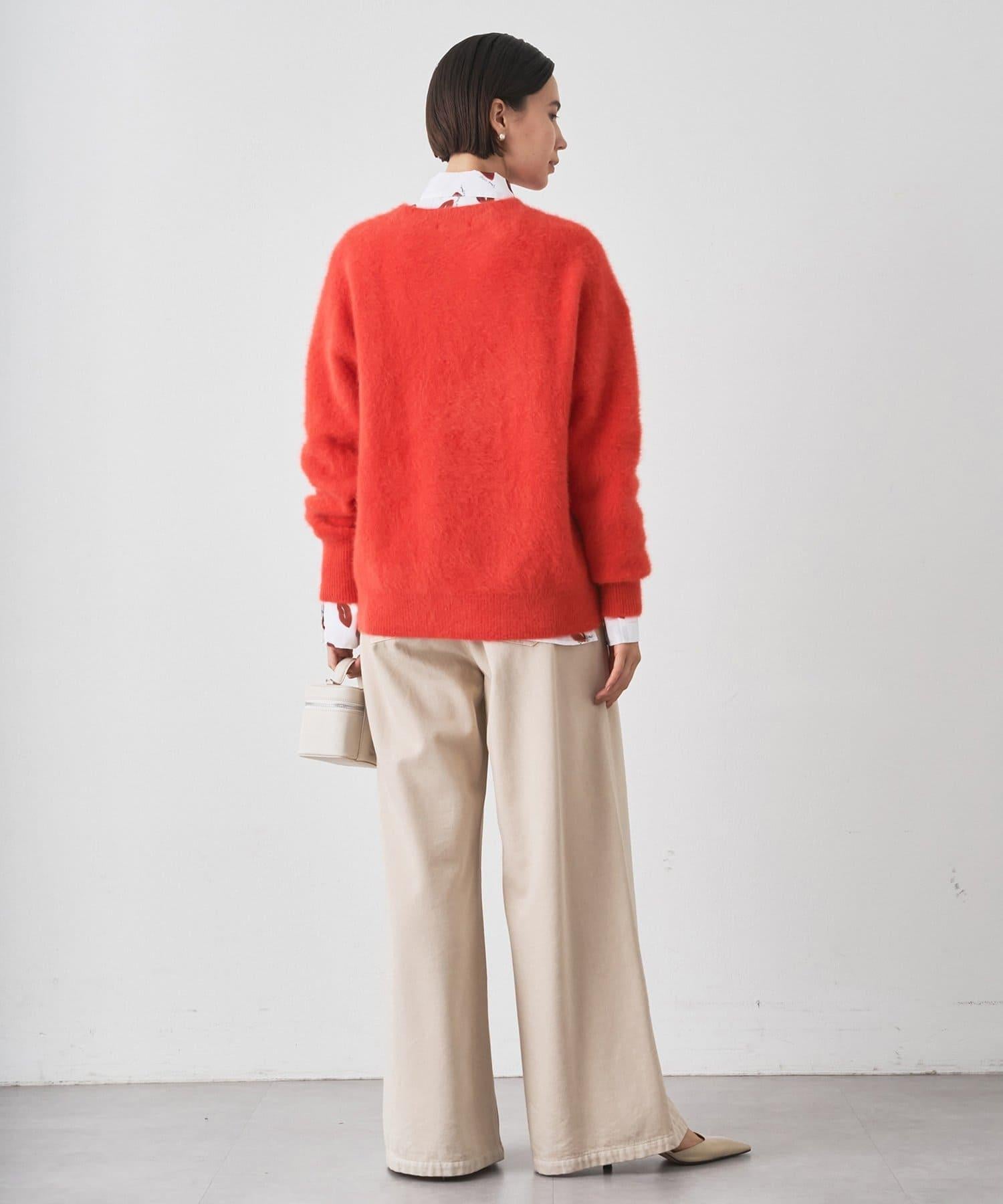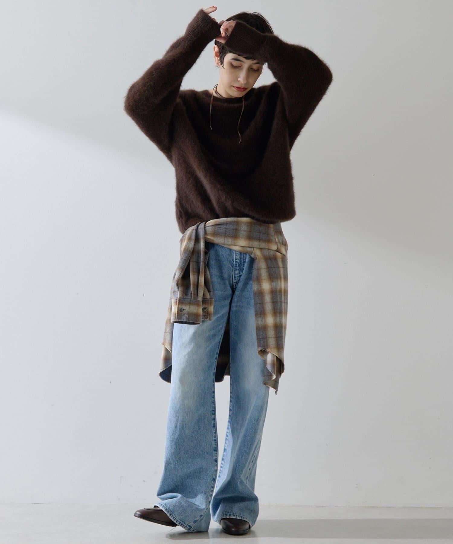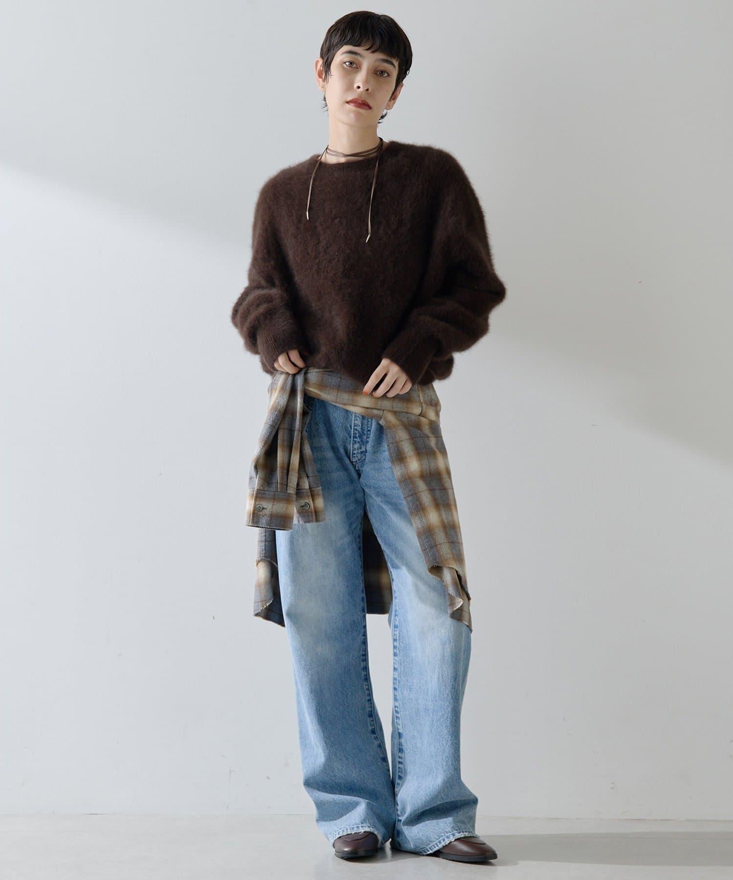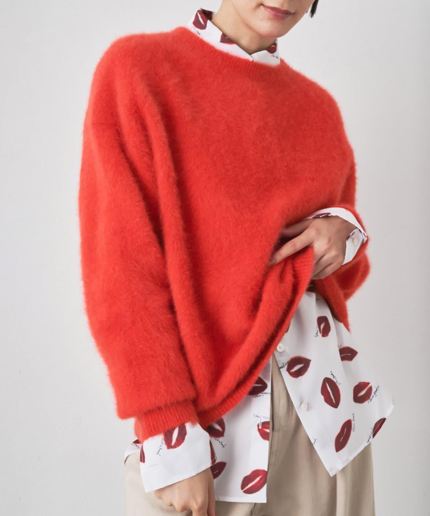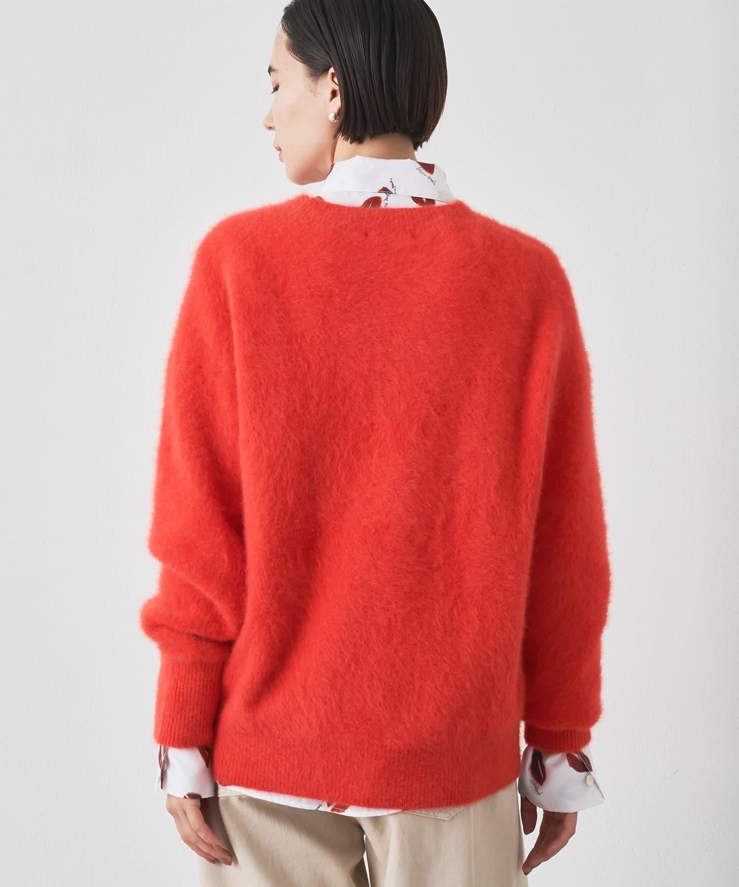 這款圓領針織衫具有蓬鬆的毛皮質感。