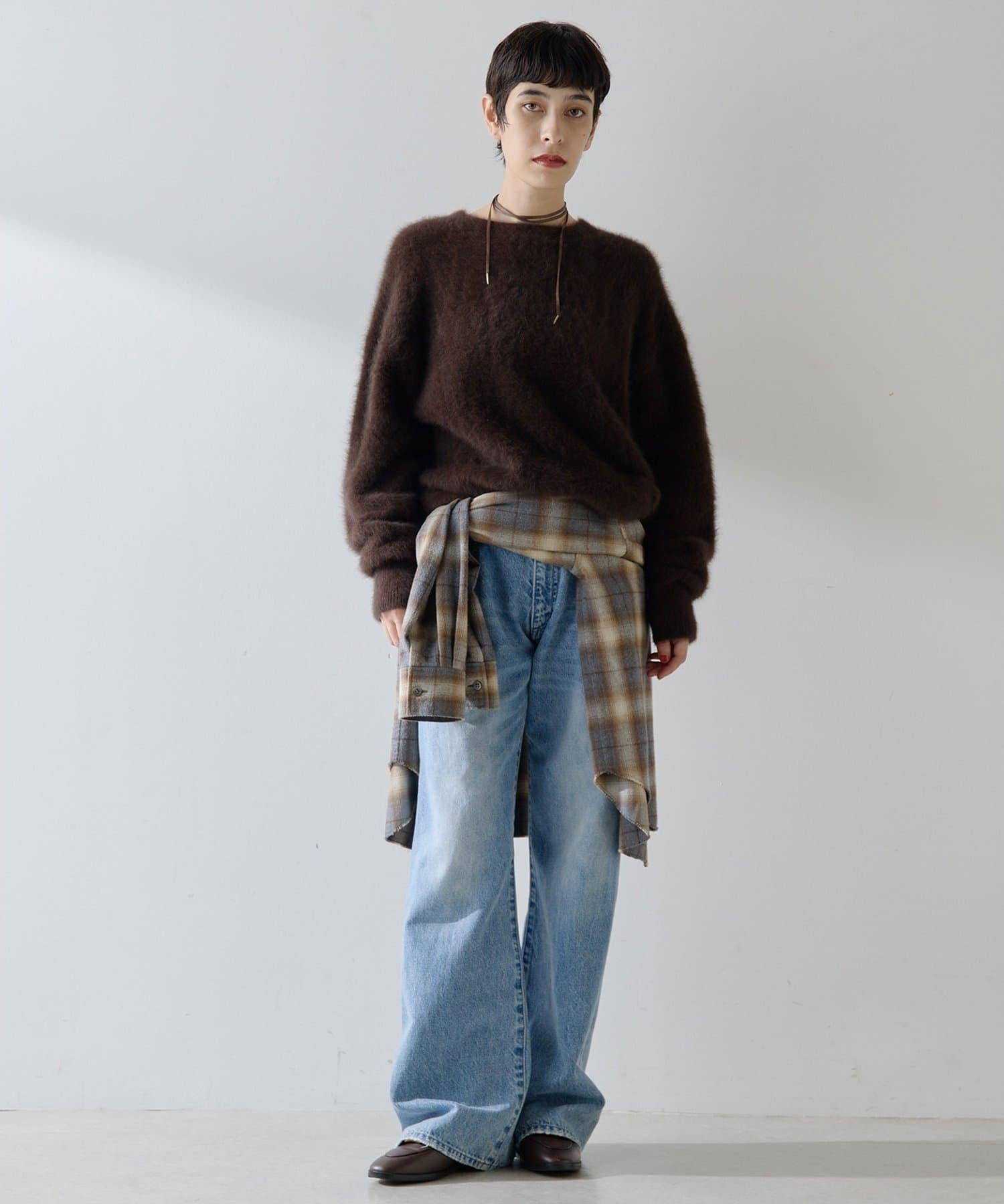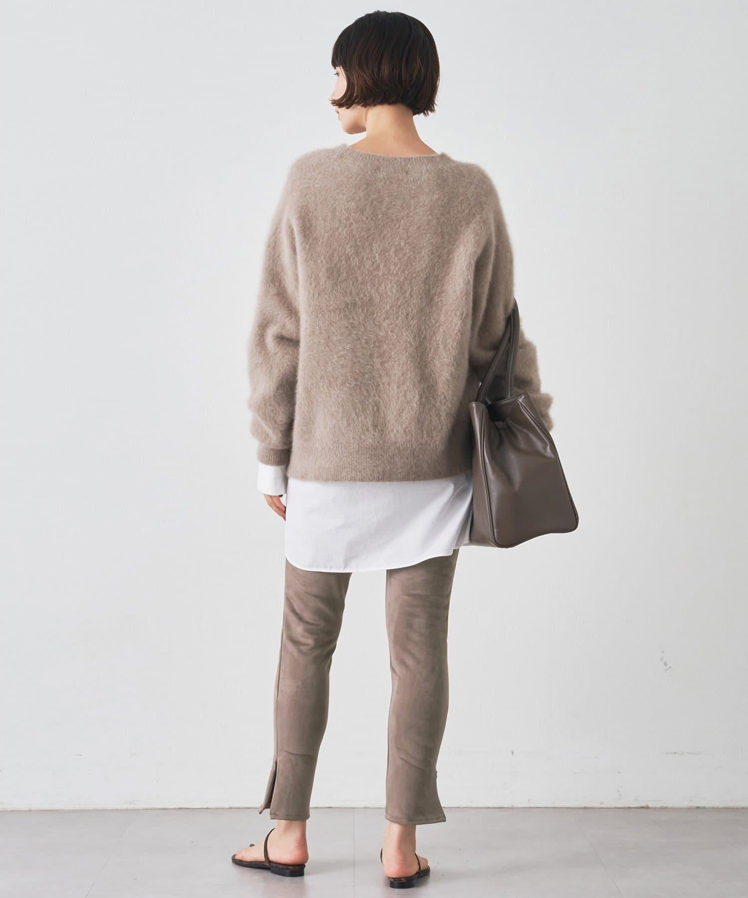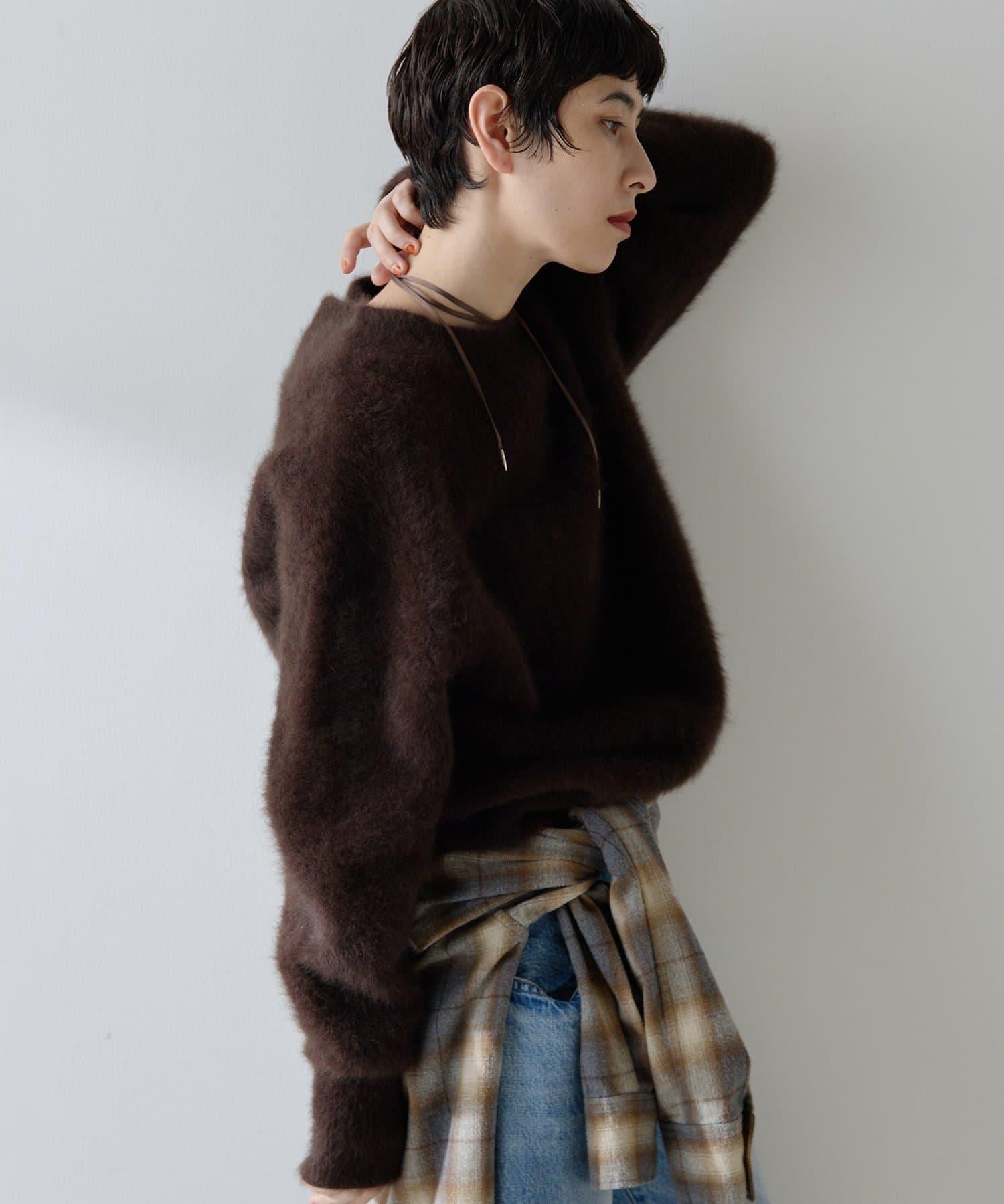 寬鬆的圓領毛皮針織衫,單穿就很完美。