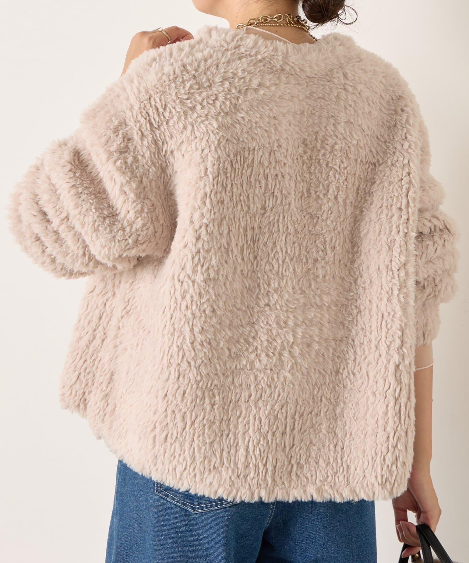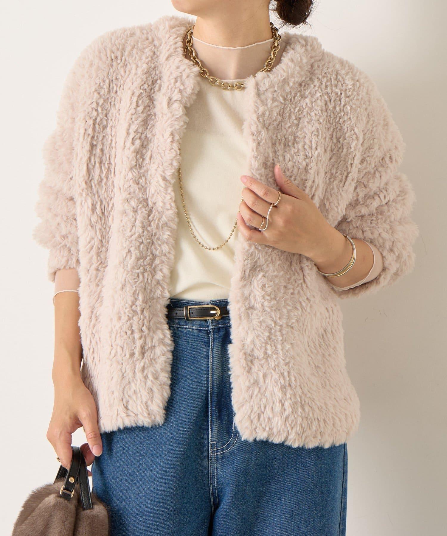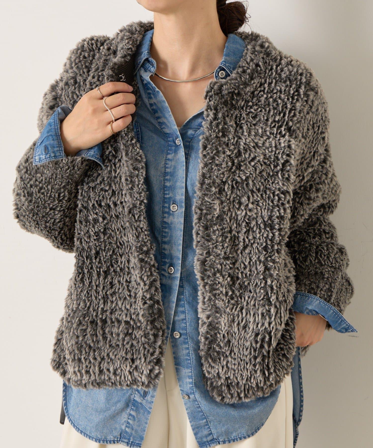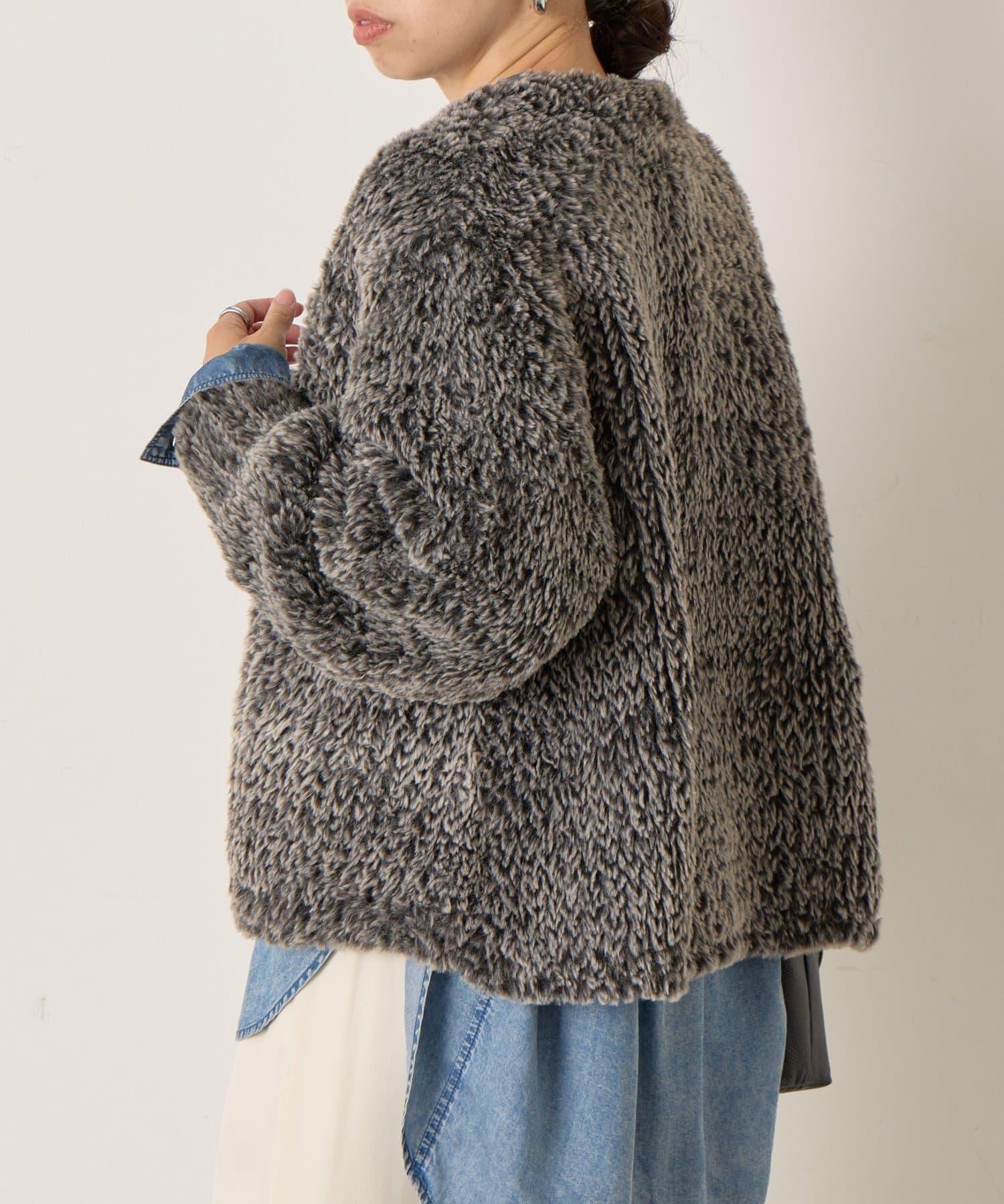 一款皮草針織外套,給人以迷人靚麗的印象。