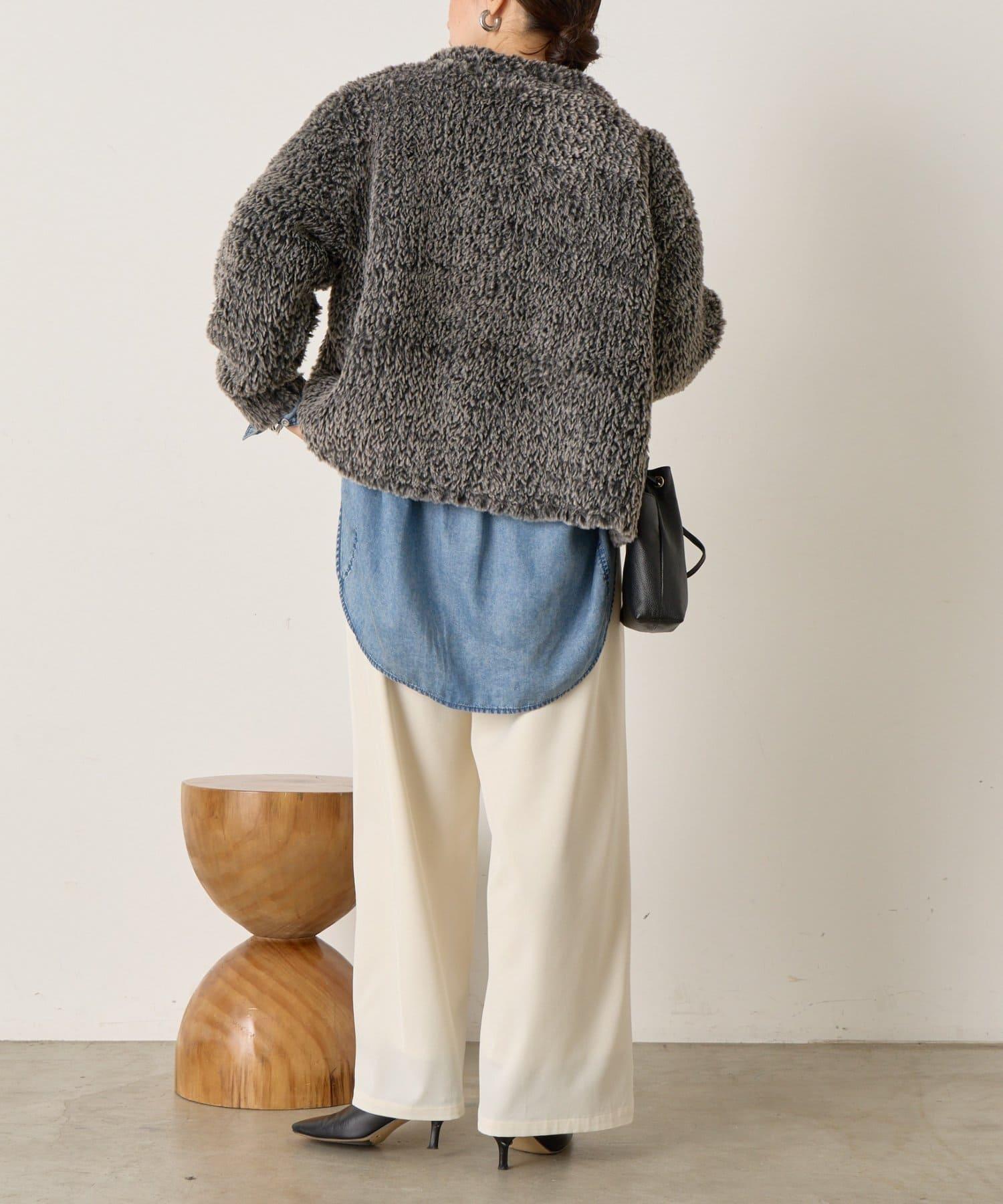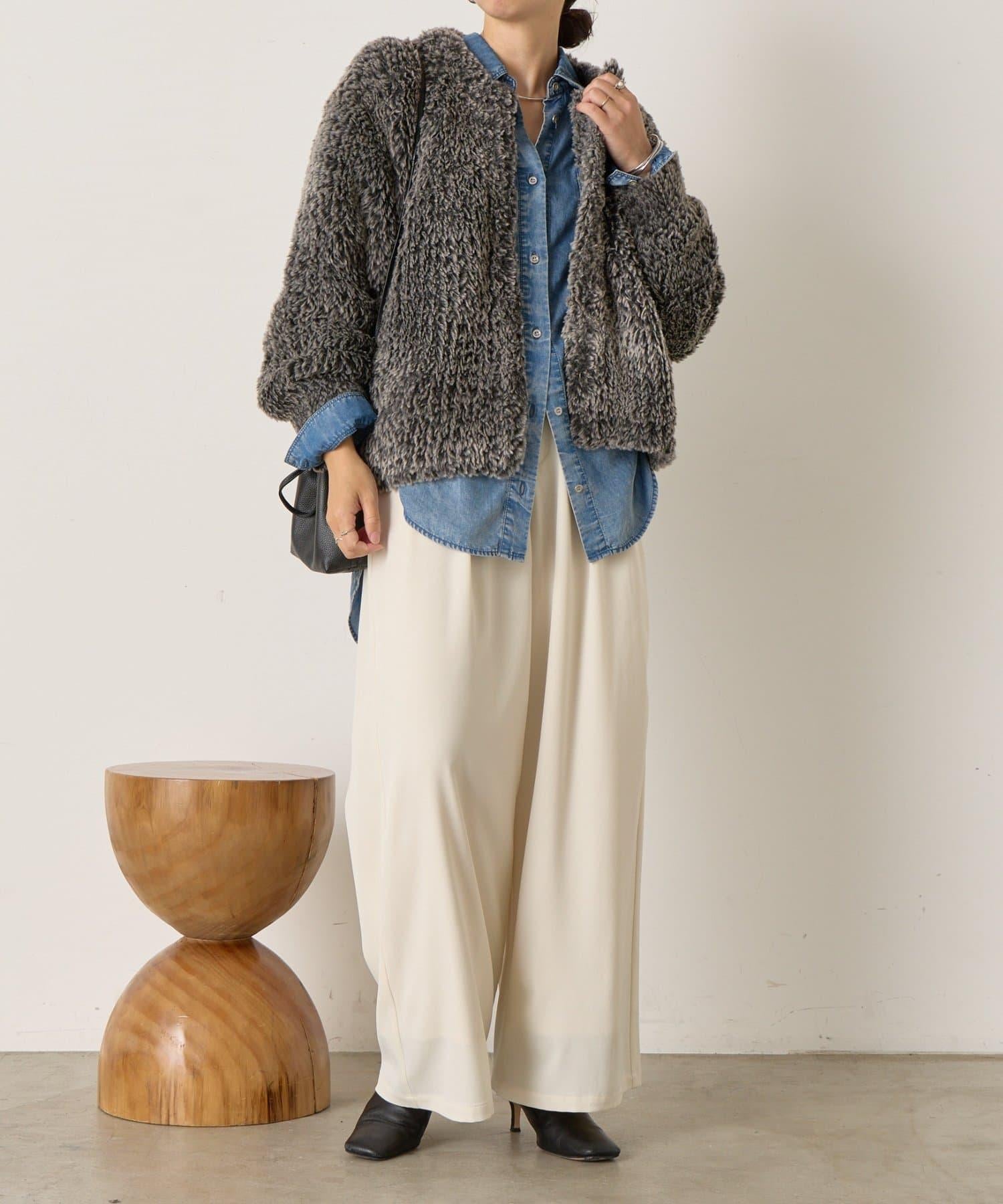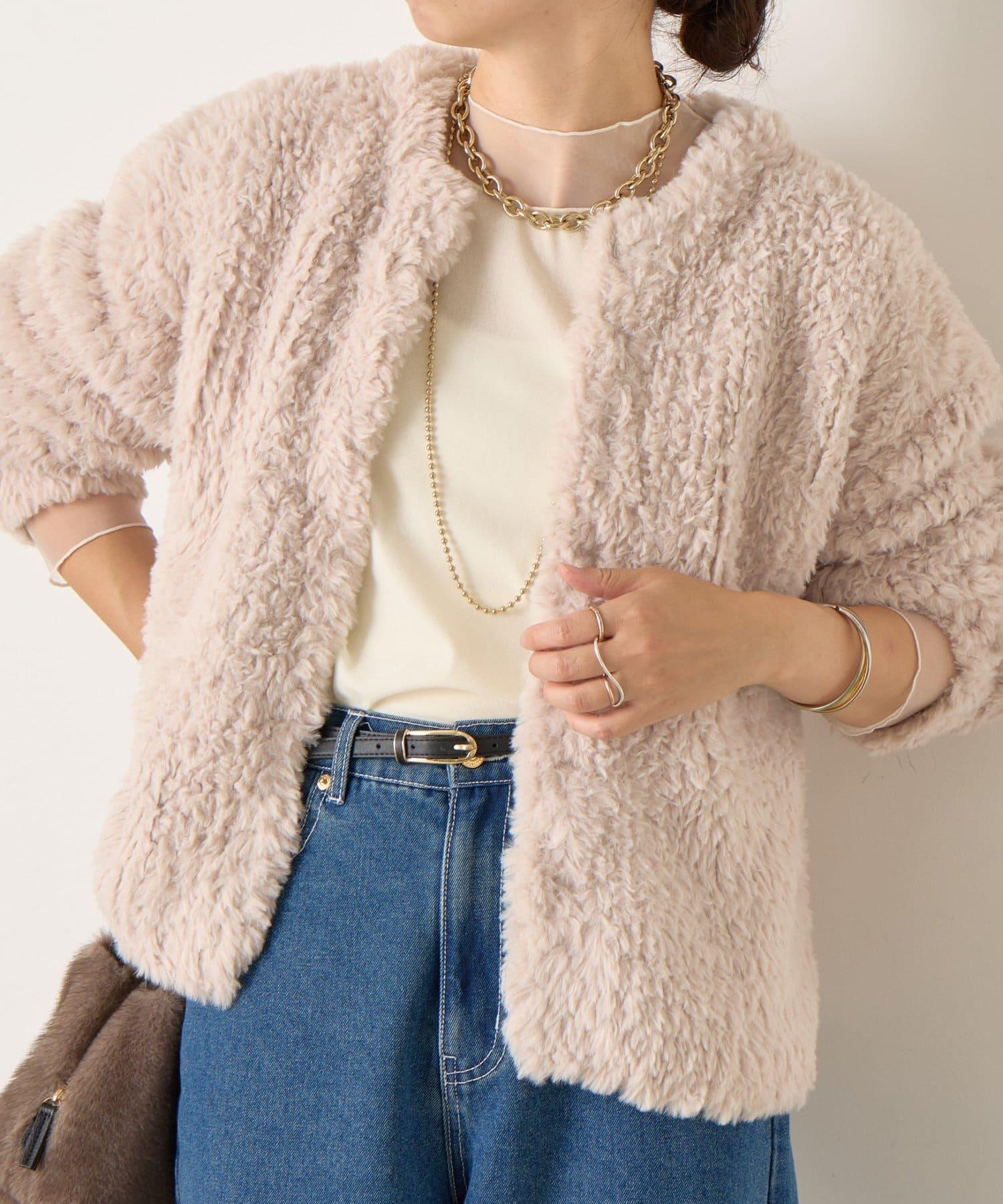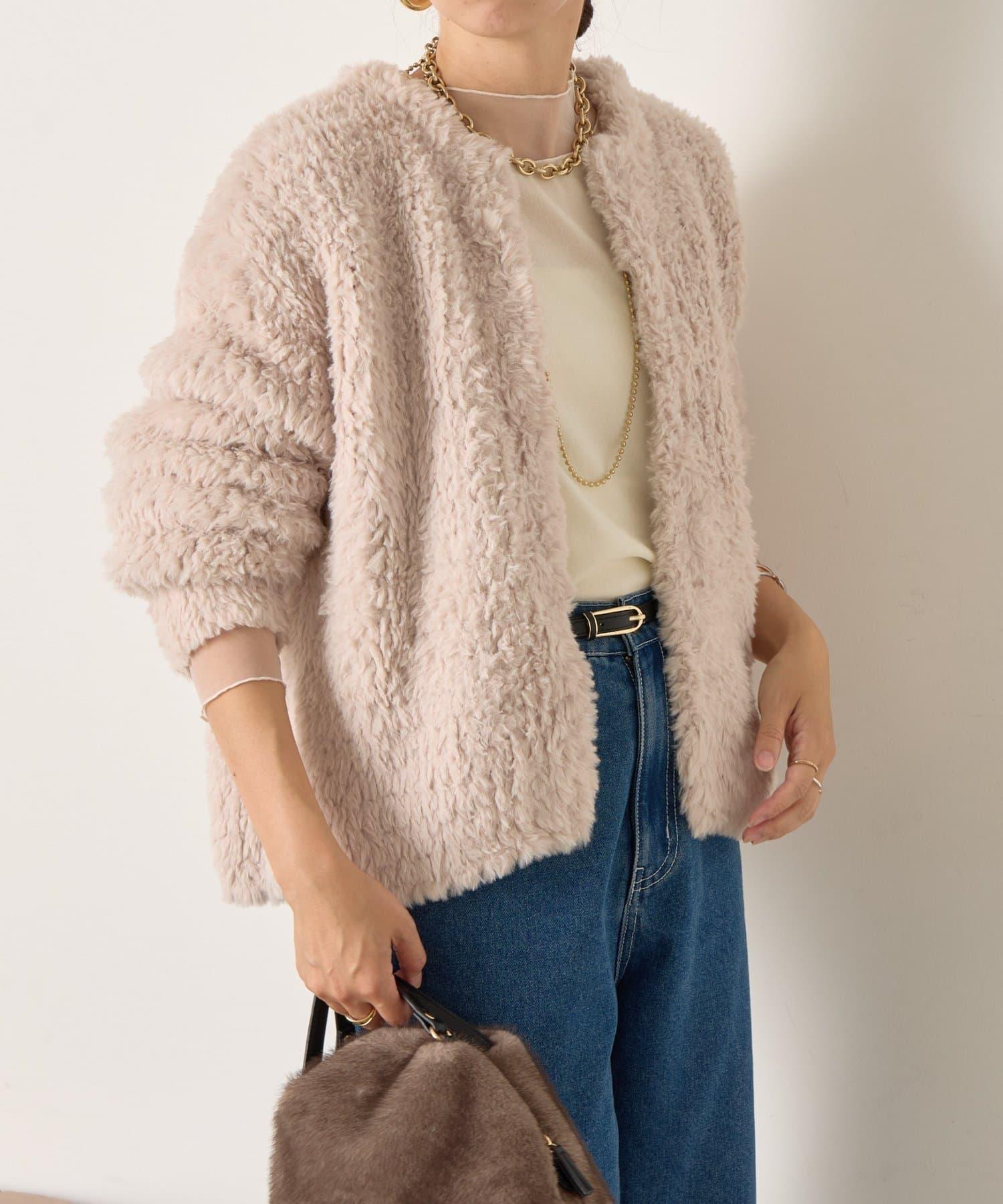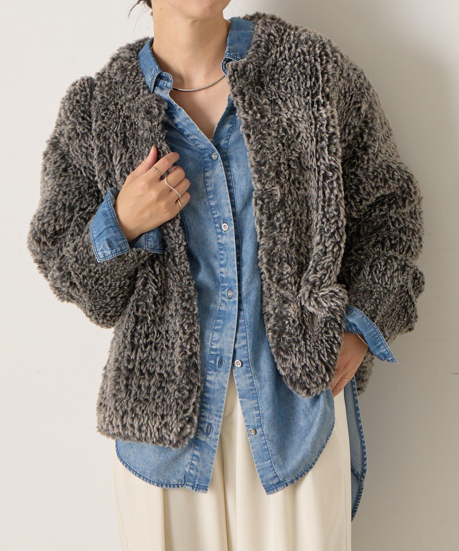 一款皮草針織外套,給人以迷人靚麗的印象。