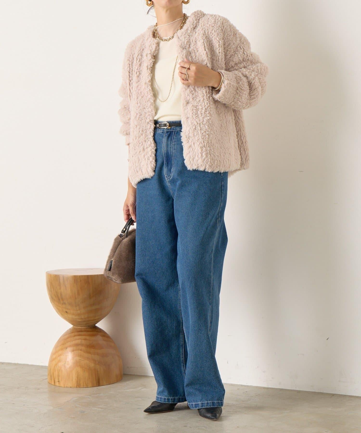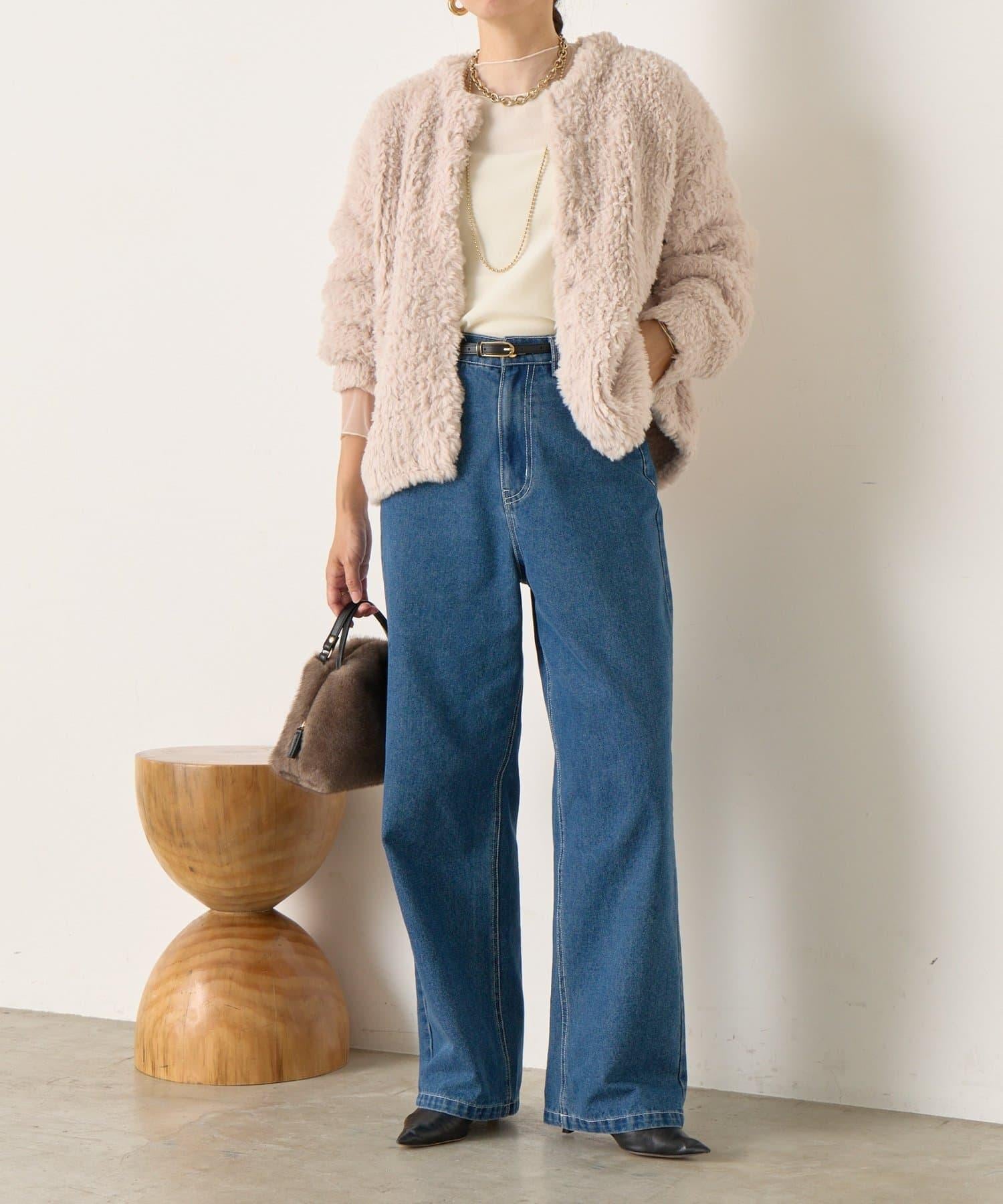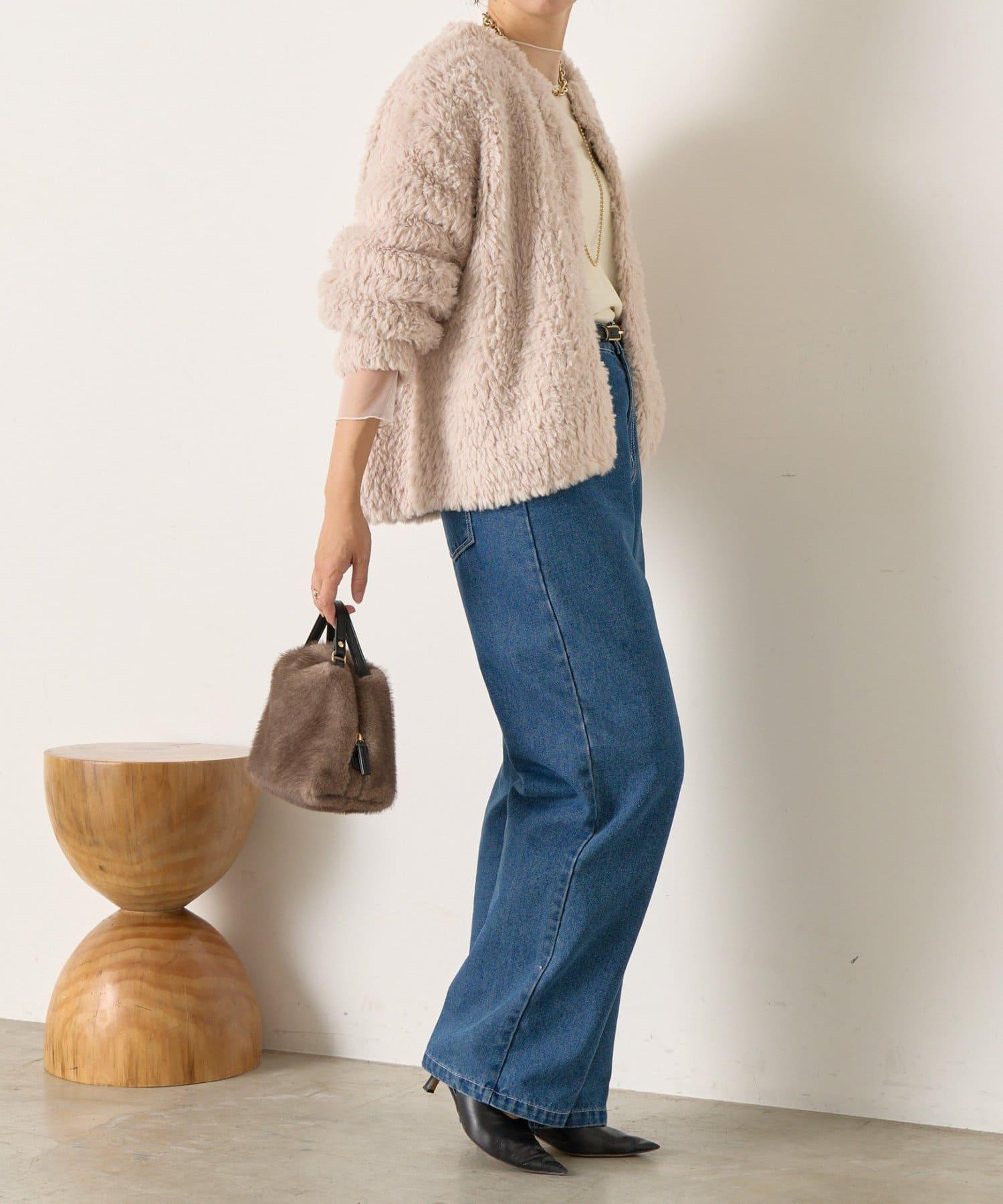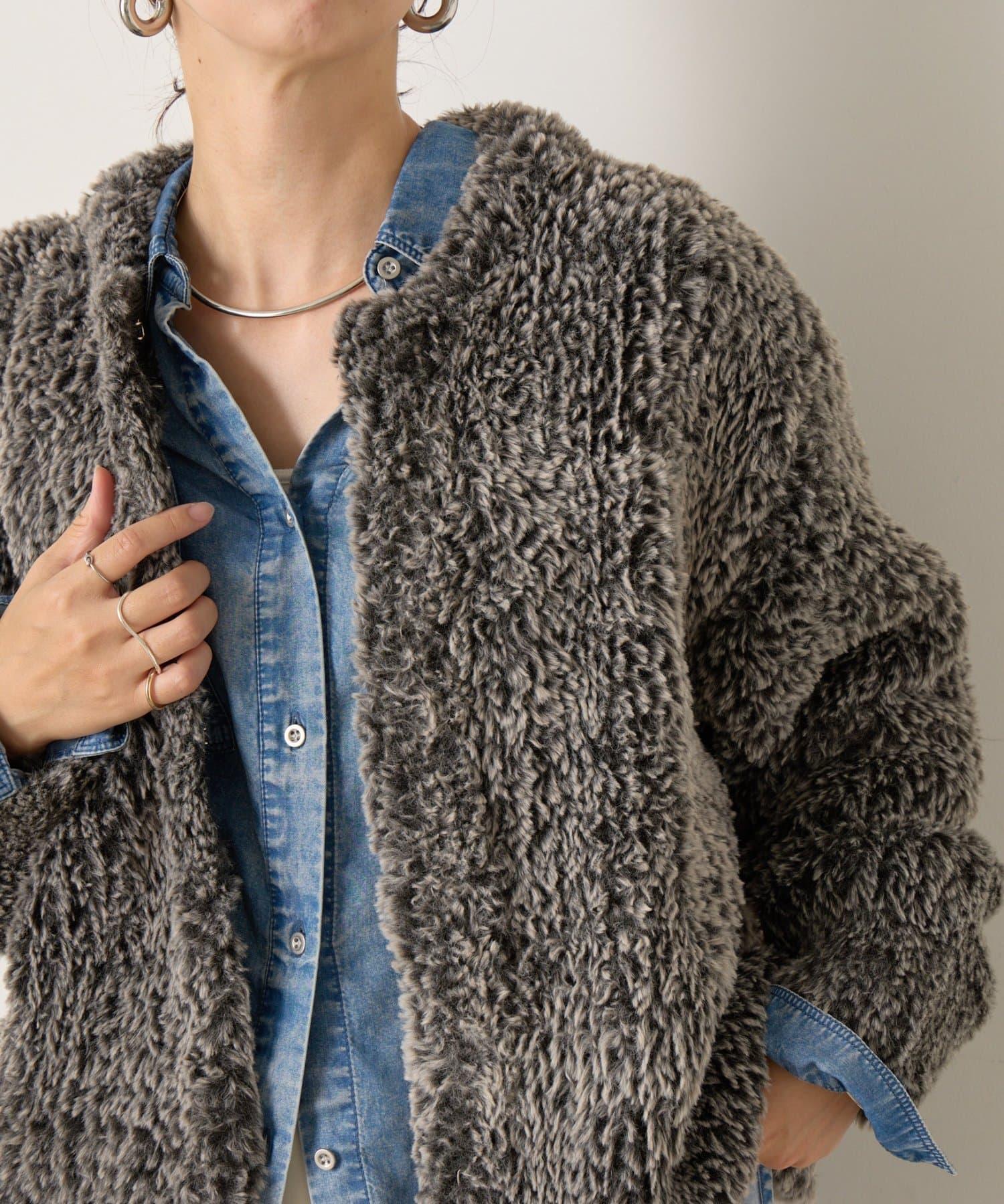 一款皮草針織外套,給人以迷人靚麗的印象。