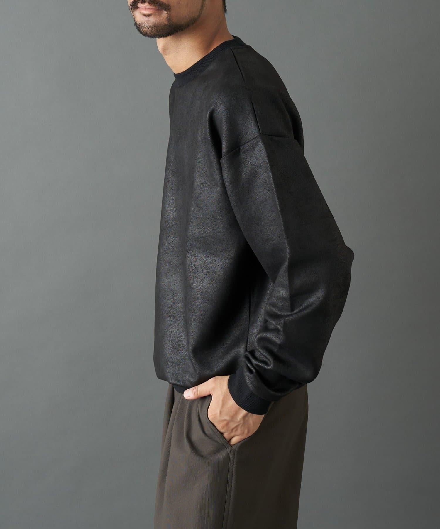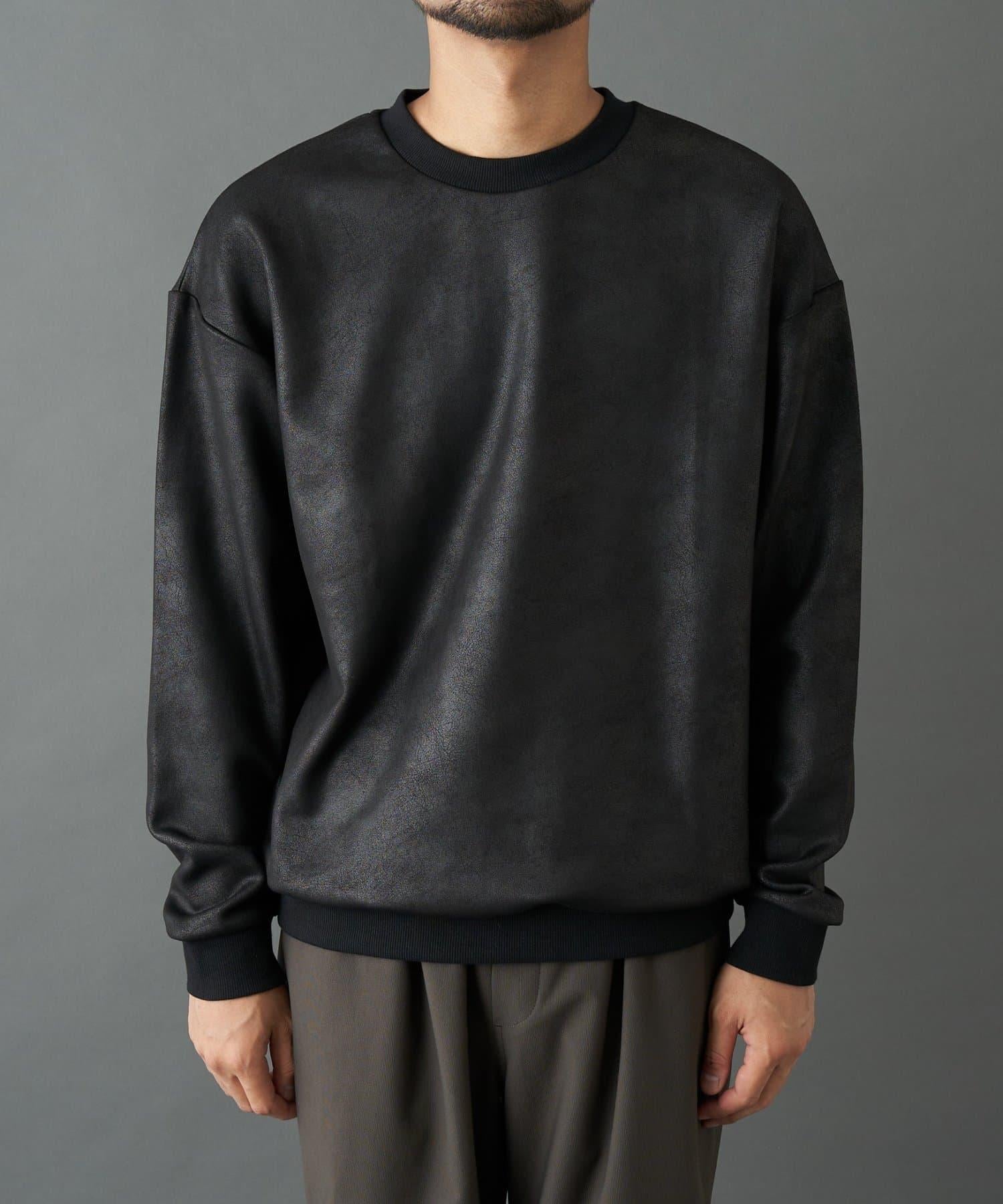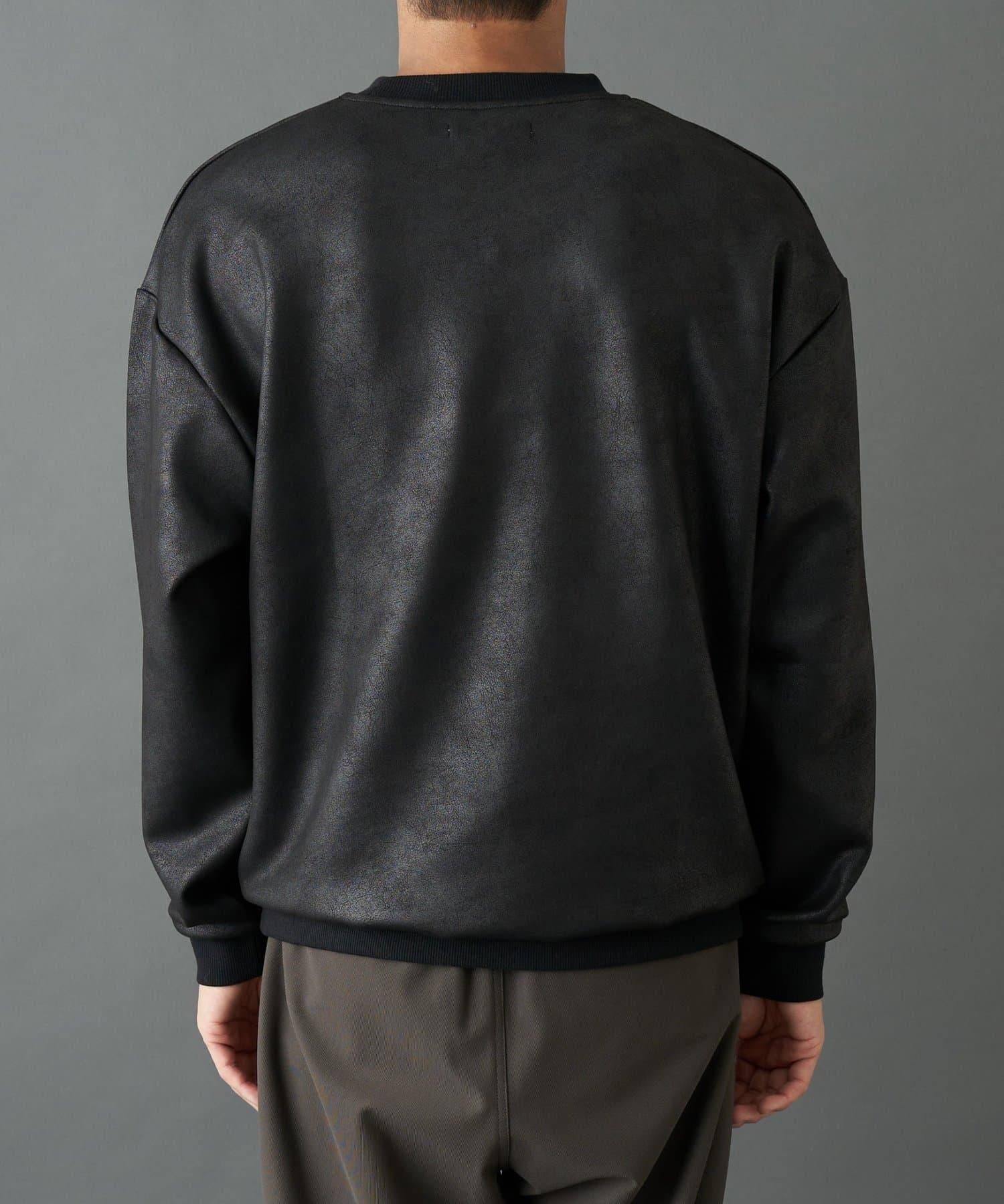 仿皮塗層長袖套頭衫,散發著優雅的光澤和獨特的氣質。