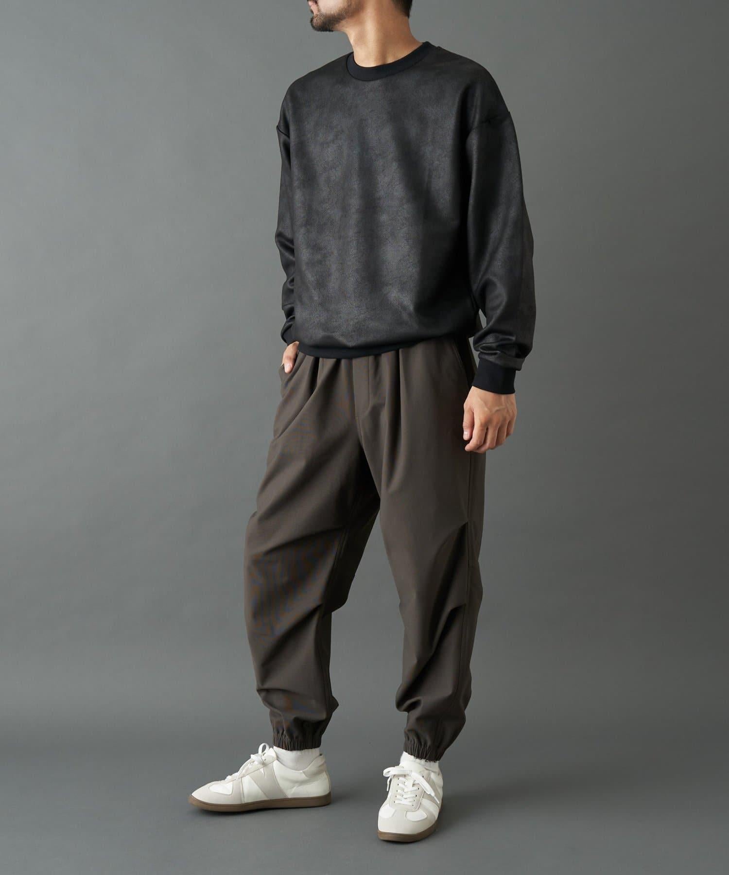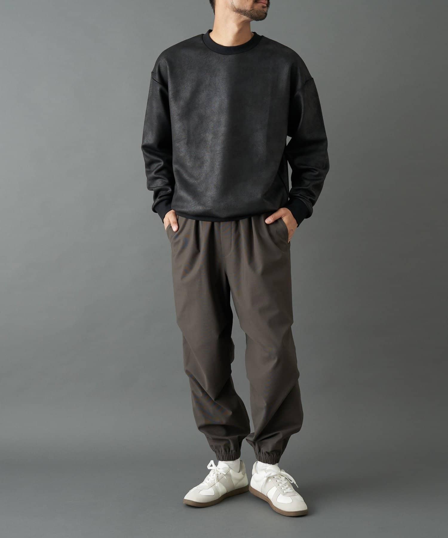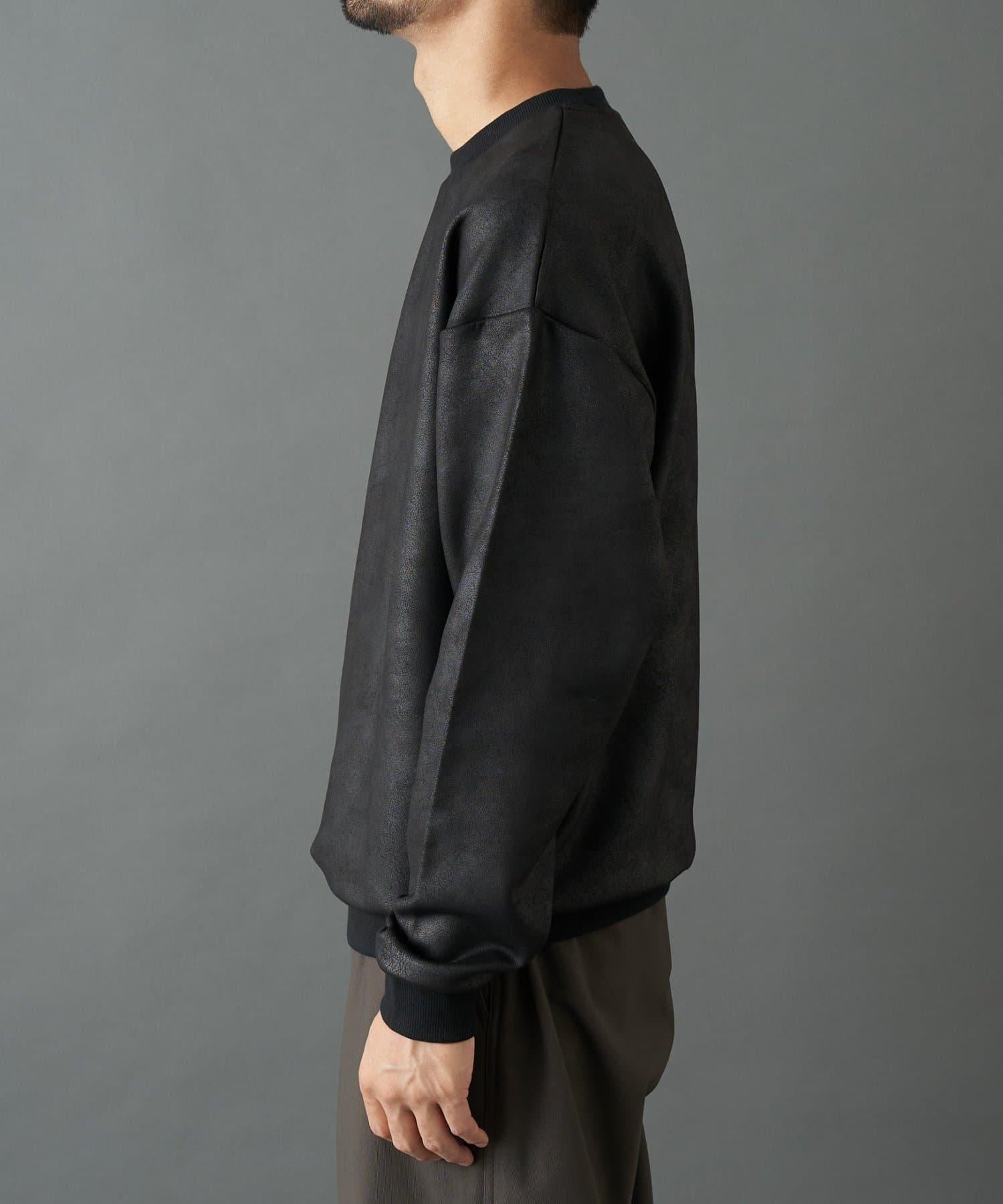 仿皮塗層長袖套頭衫,散發著優雅的光澤和獨特的氣質。
