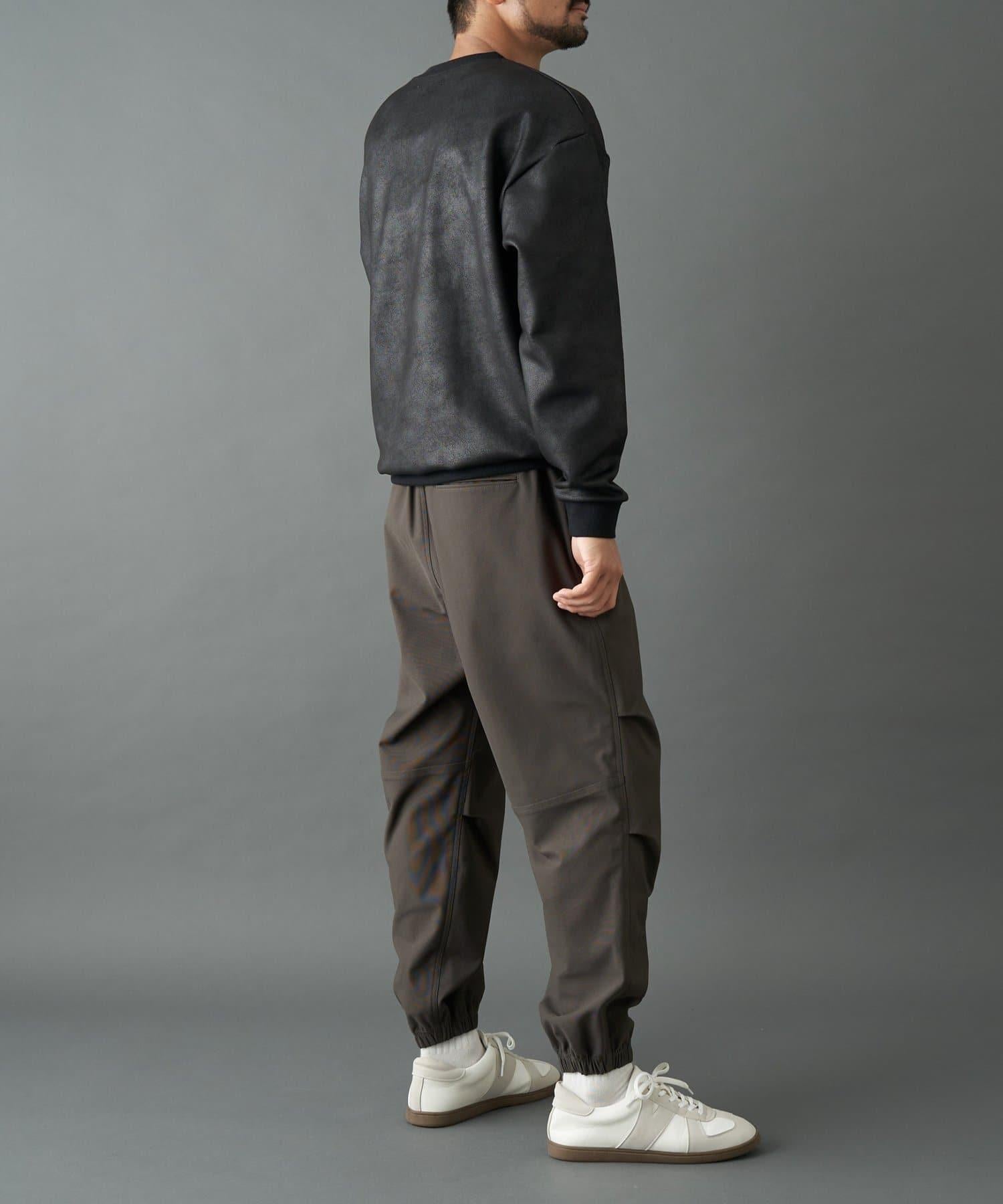 柔軟而富有彈力的面料上塗有仿皮塗層,雖然外觀厚重,但穿著輕便舒適。