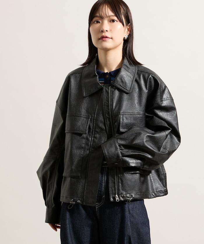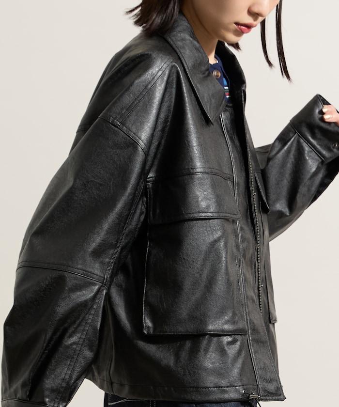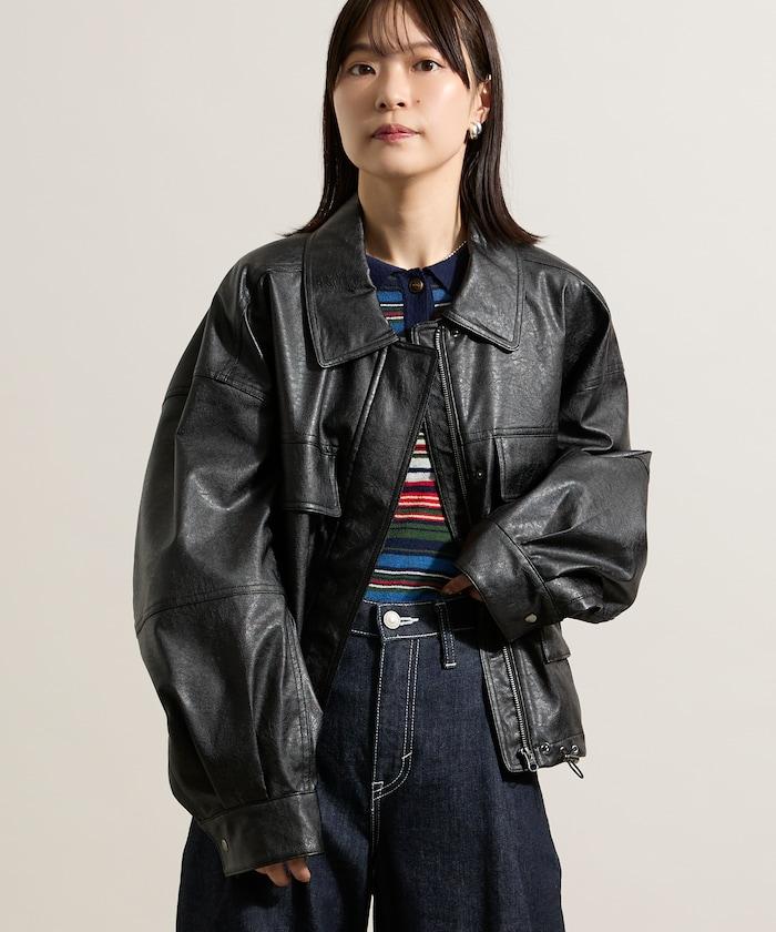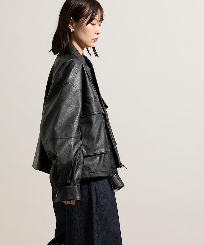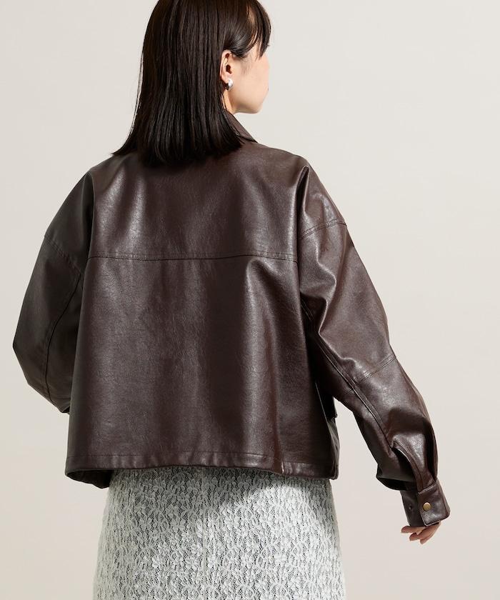 這是一款時髦的短款皮革長罩衫,靈感源自復古服裝中的男士大廓形長罩衫。