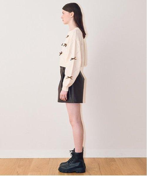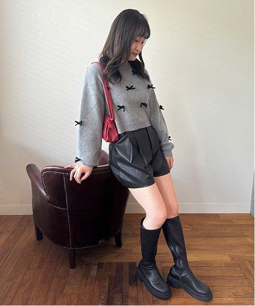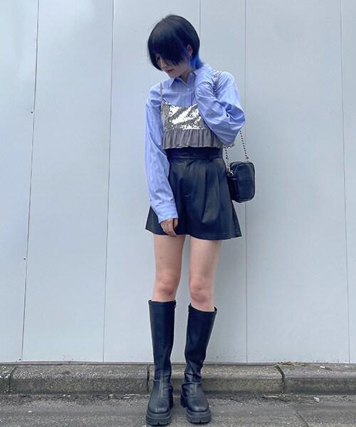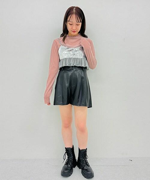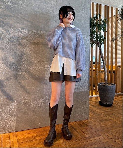搭配皮夾克的套頭款式是當下的流行趨勢。建議從下襬開始展示大輪廓內搭,並利用高腰設計將緊湊的上衣造型化。由於設計簡潔,它可以穿出多種變化。