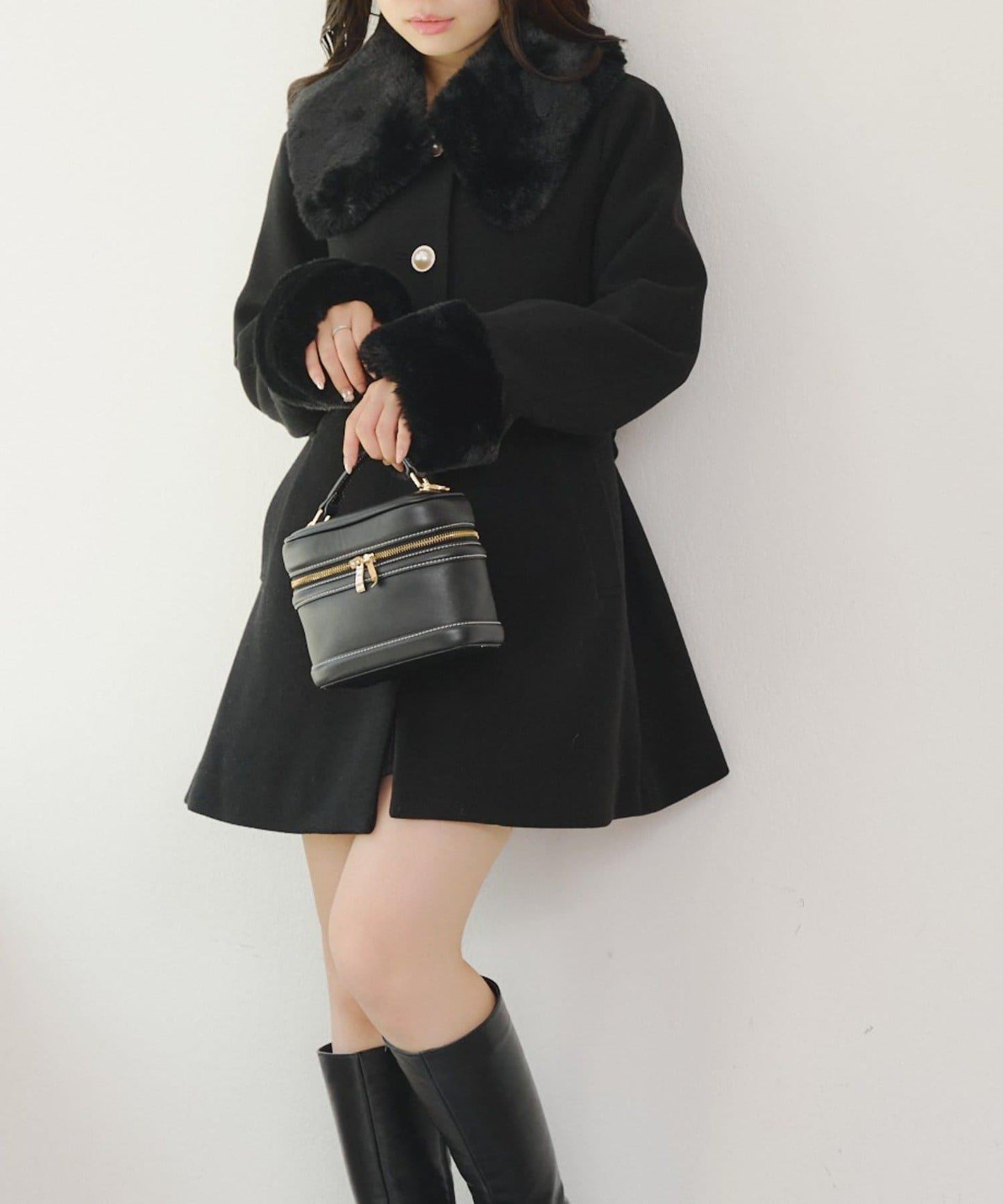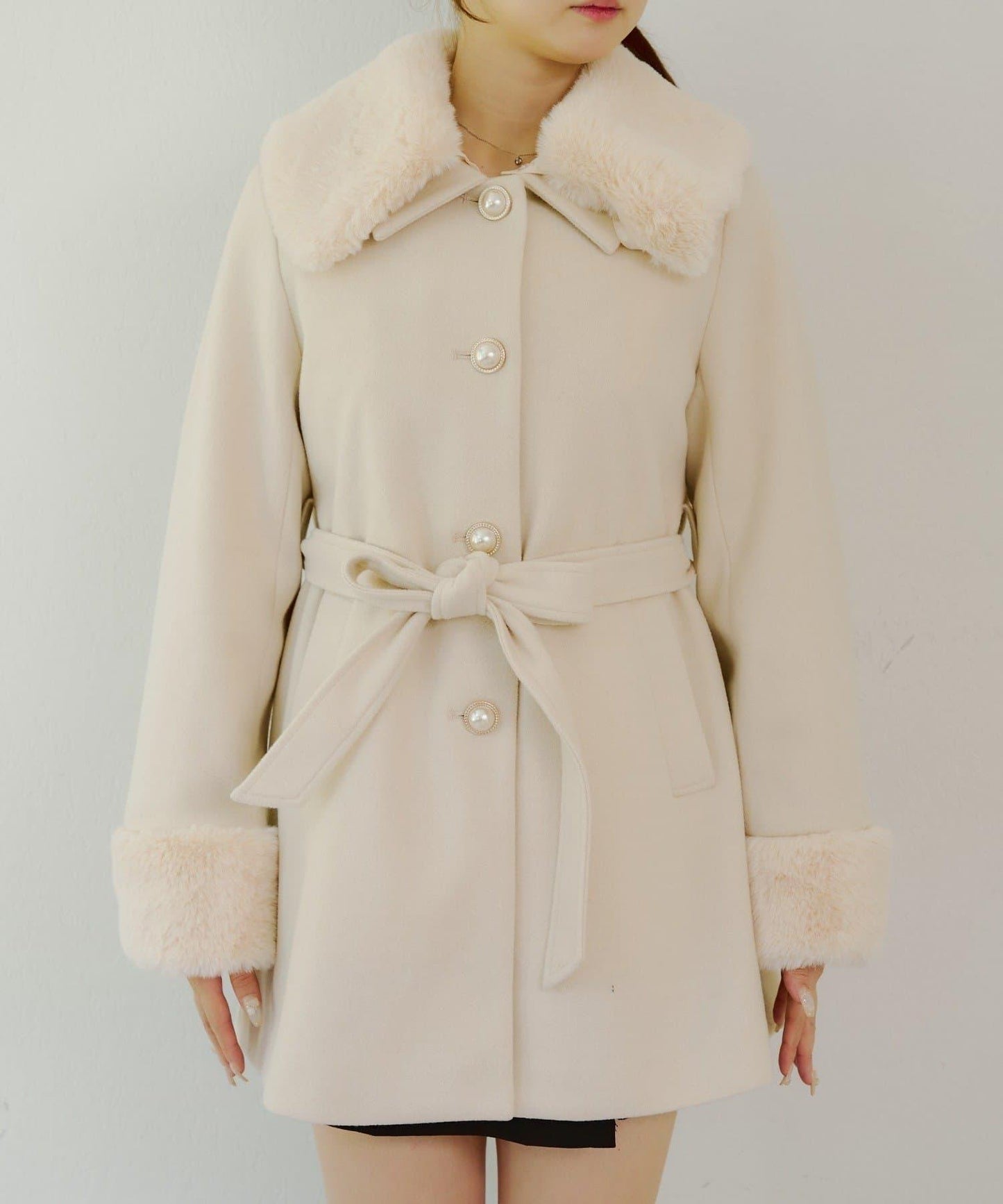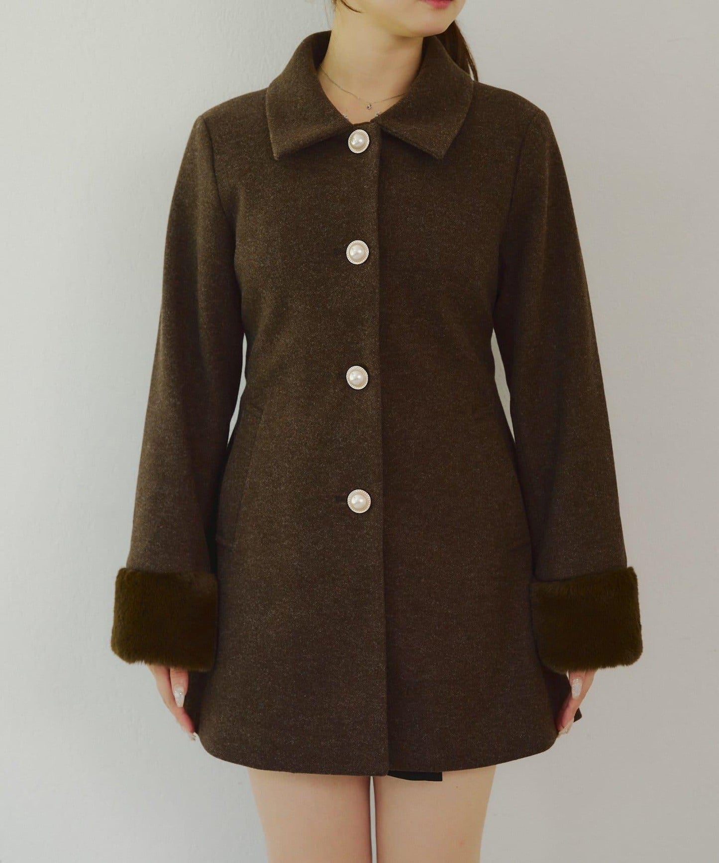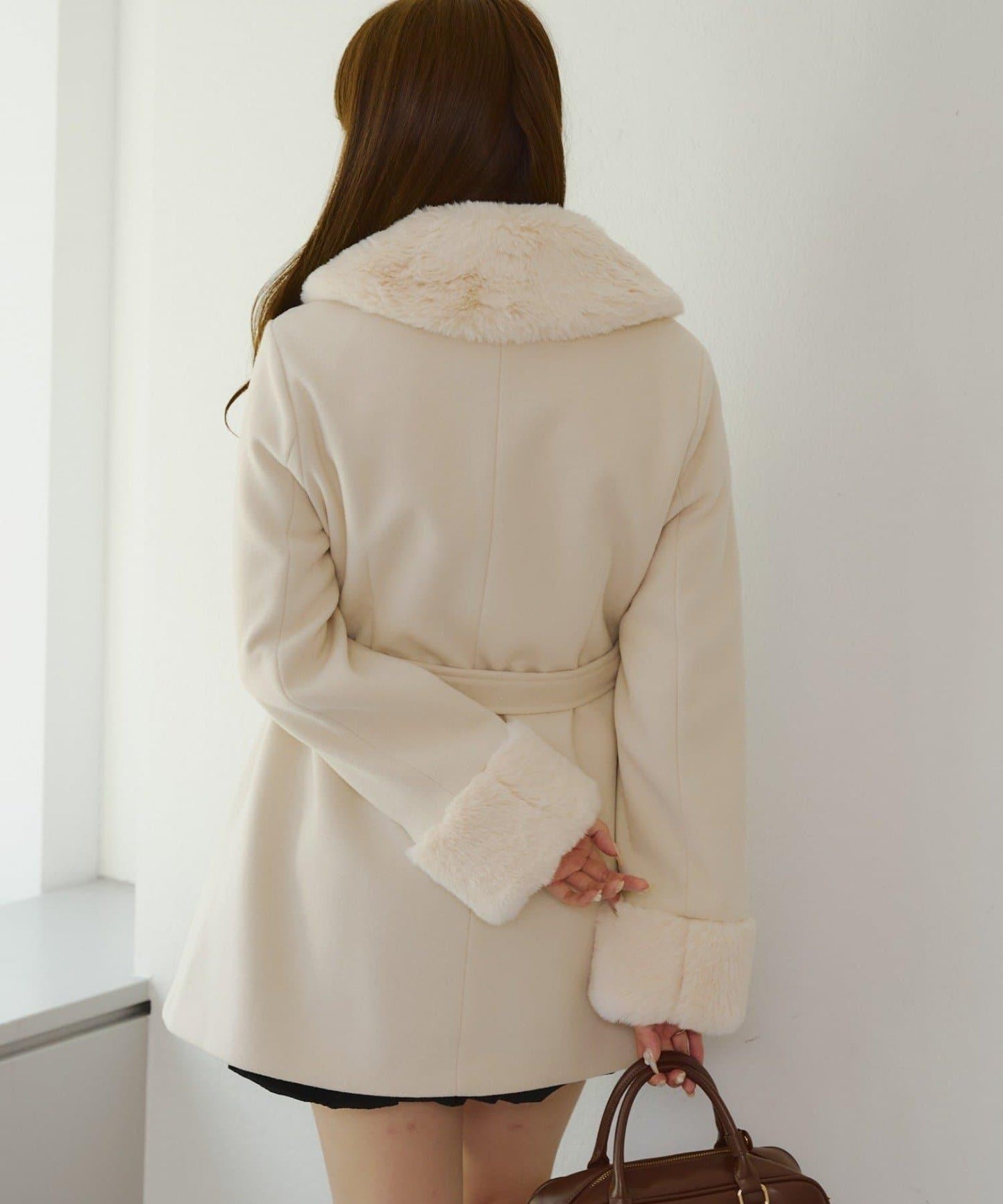 仿皮草中長款大衣
