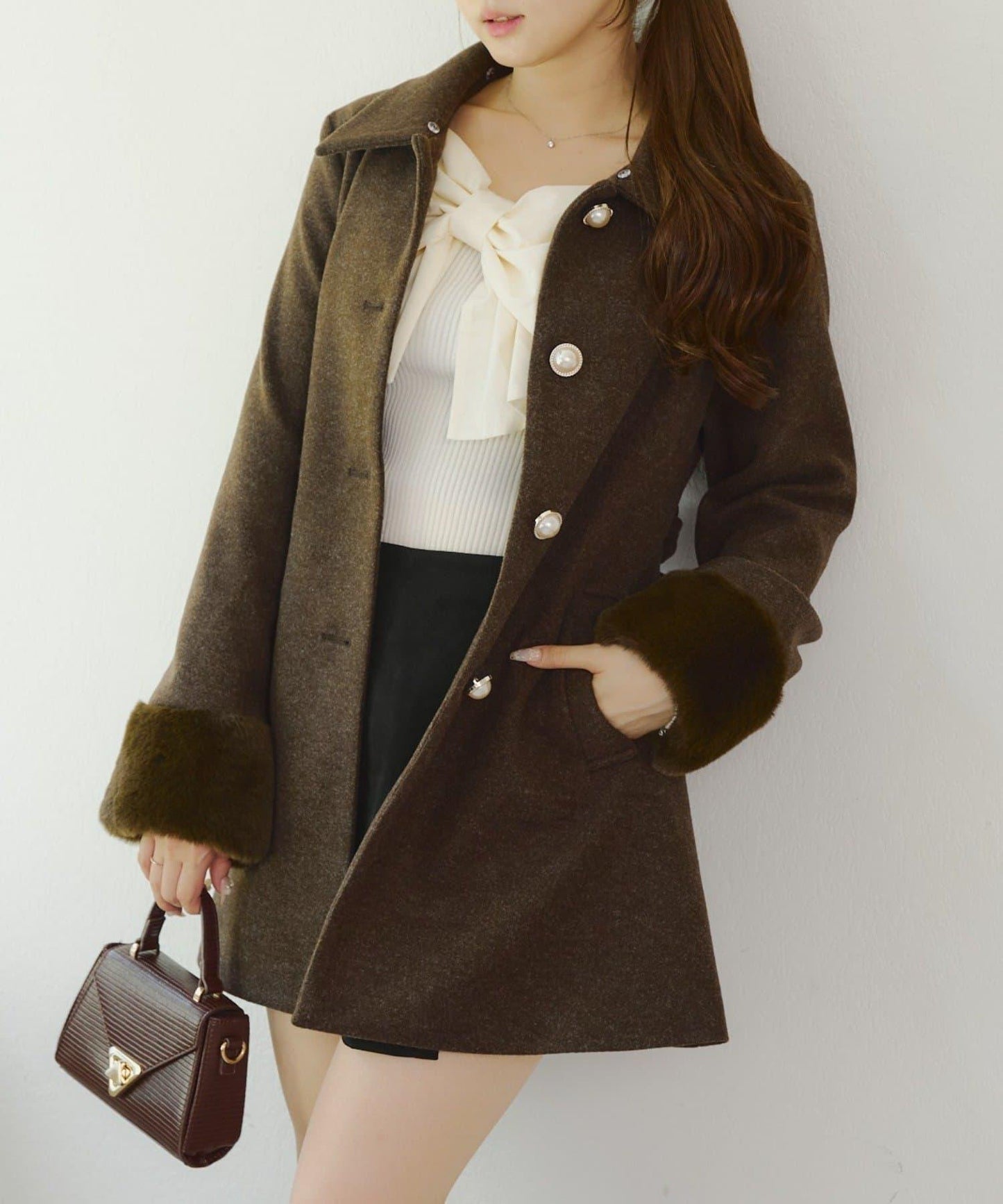 光亮的珍珠大紐扣也是一大亮點。