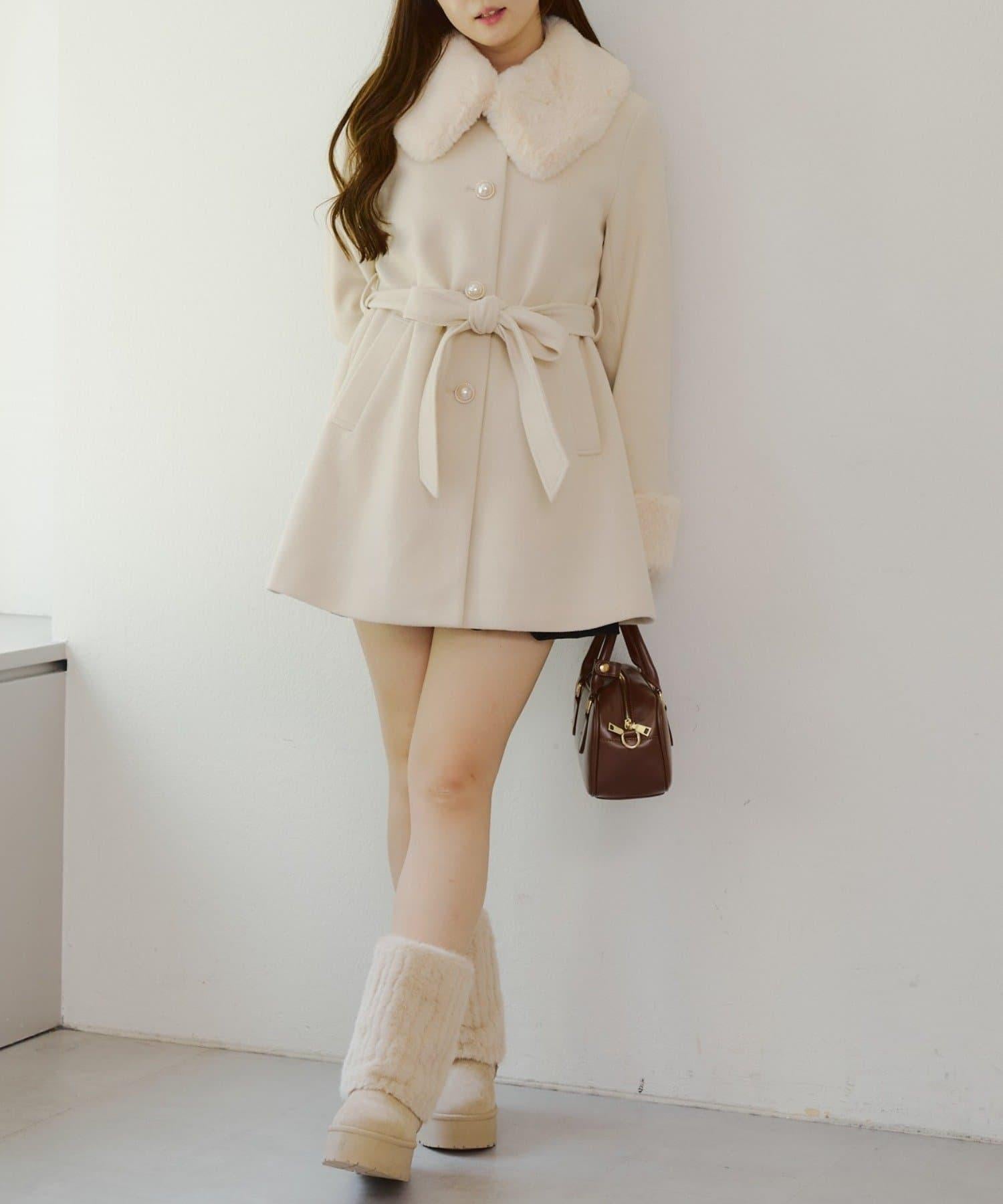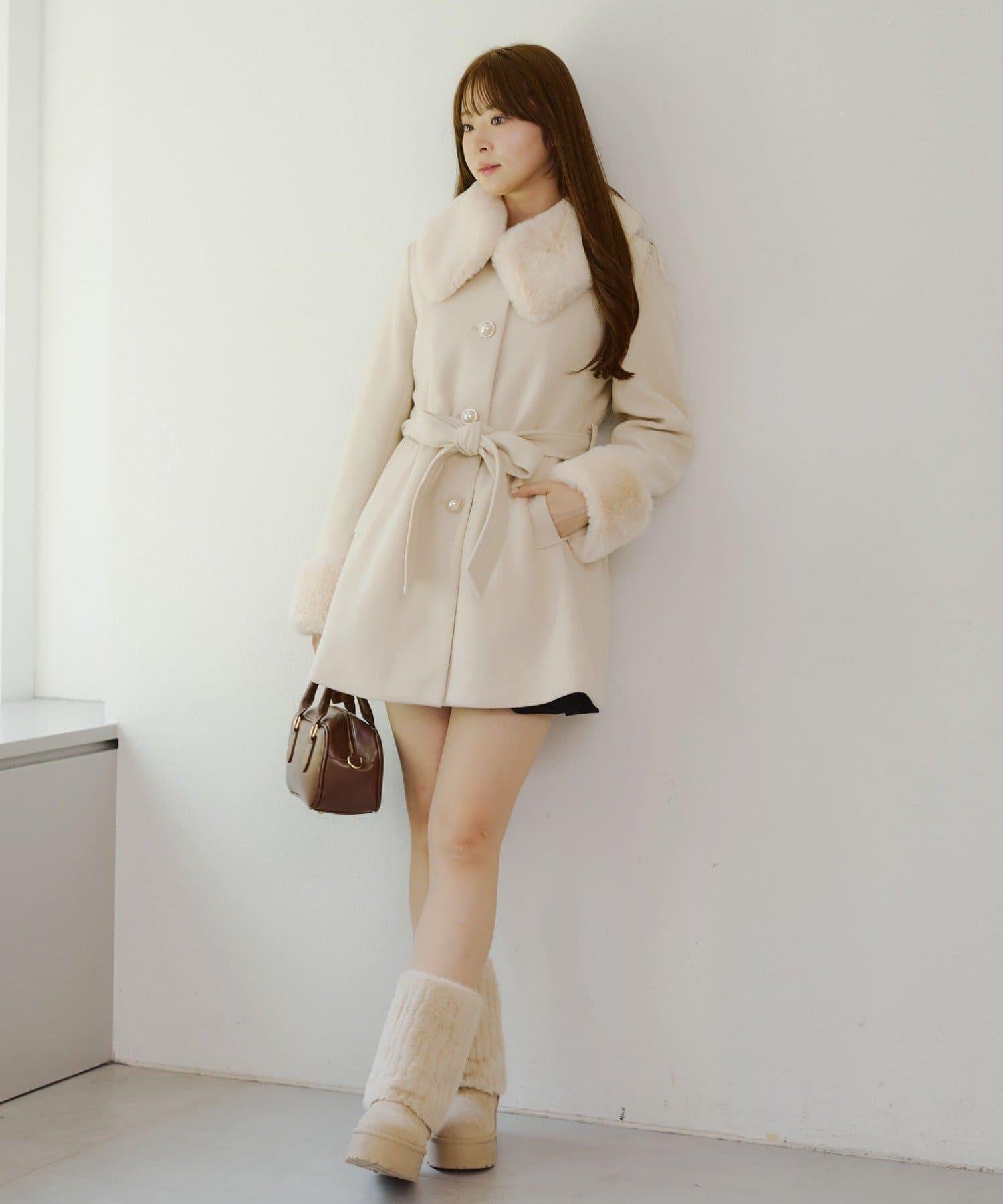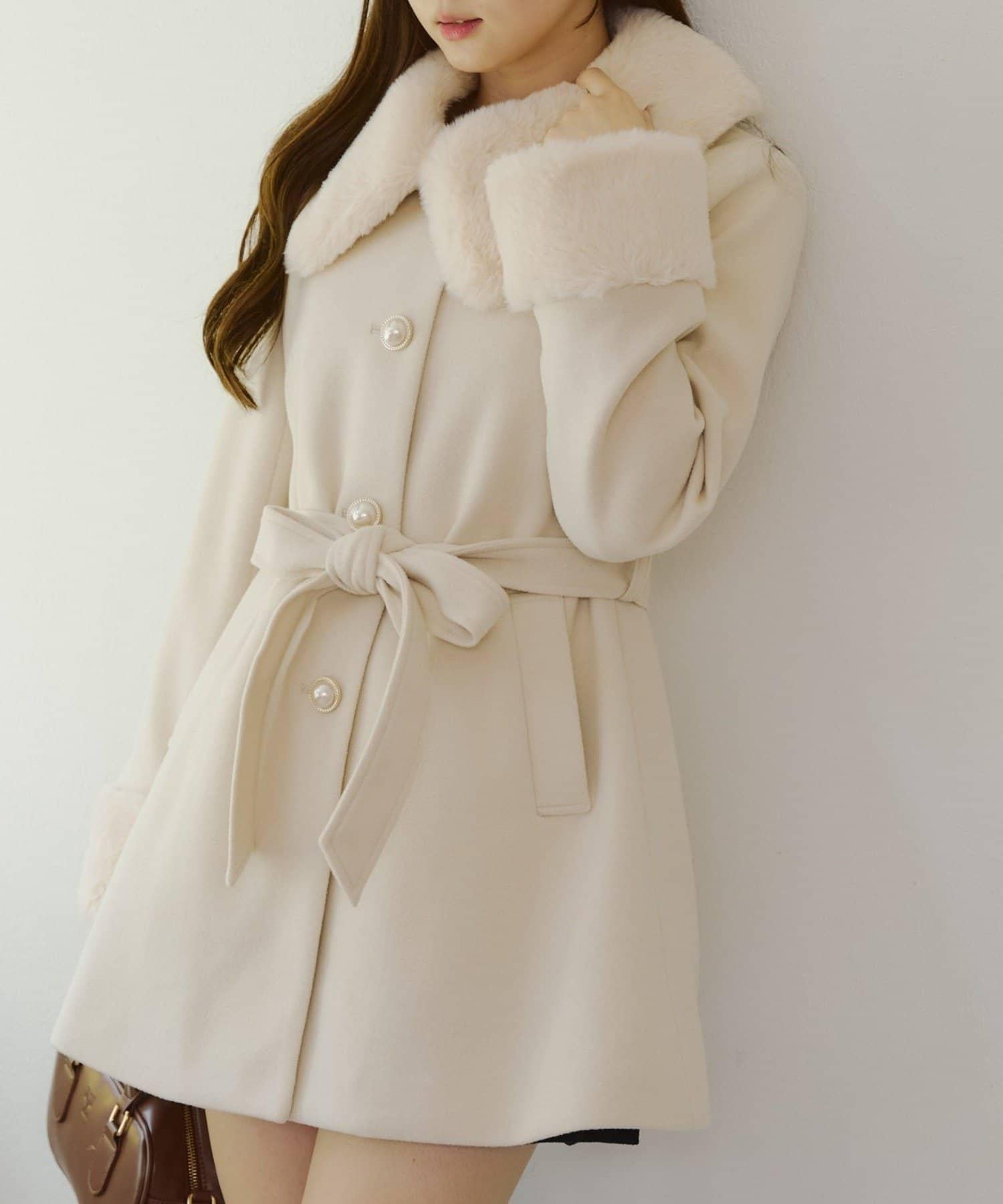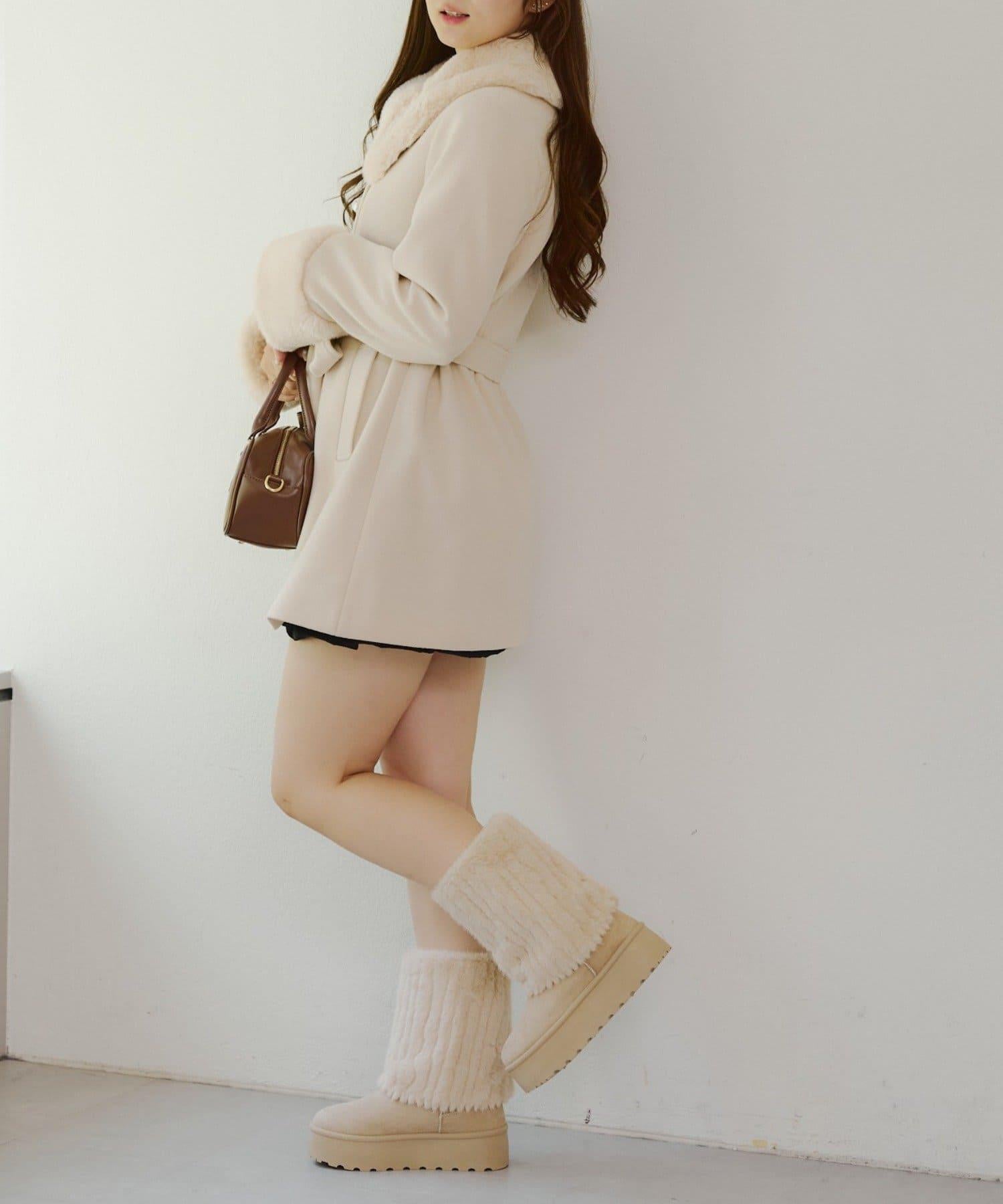 預約商品仿皮草中長款大衣